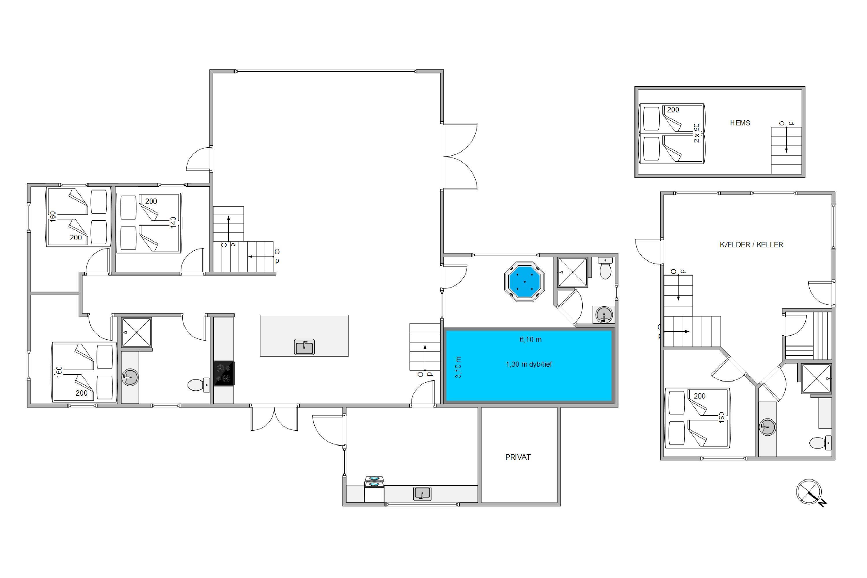 Her på Lodbergsvej 155, er der rig mulighed for at nyde en aktiv og sjov ferie. I husets poolafdeling. hvor der også er spa og energibesparende varmepumpe, er der udsigt til en af husets terrasser og klitterne. Ind til poolrummet er der glasdøre, så man også derfra kan holde øje med børnene og nyde deres leg i poolen. Poolen er også med svømmetræner, som byder op til lidt ekstra sjov. for lidt ekstra velvære og aflsapning er, finder I her et tømmespa.