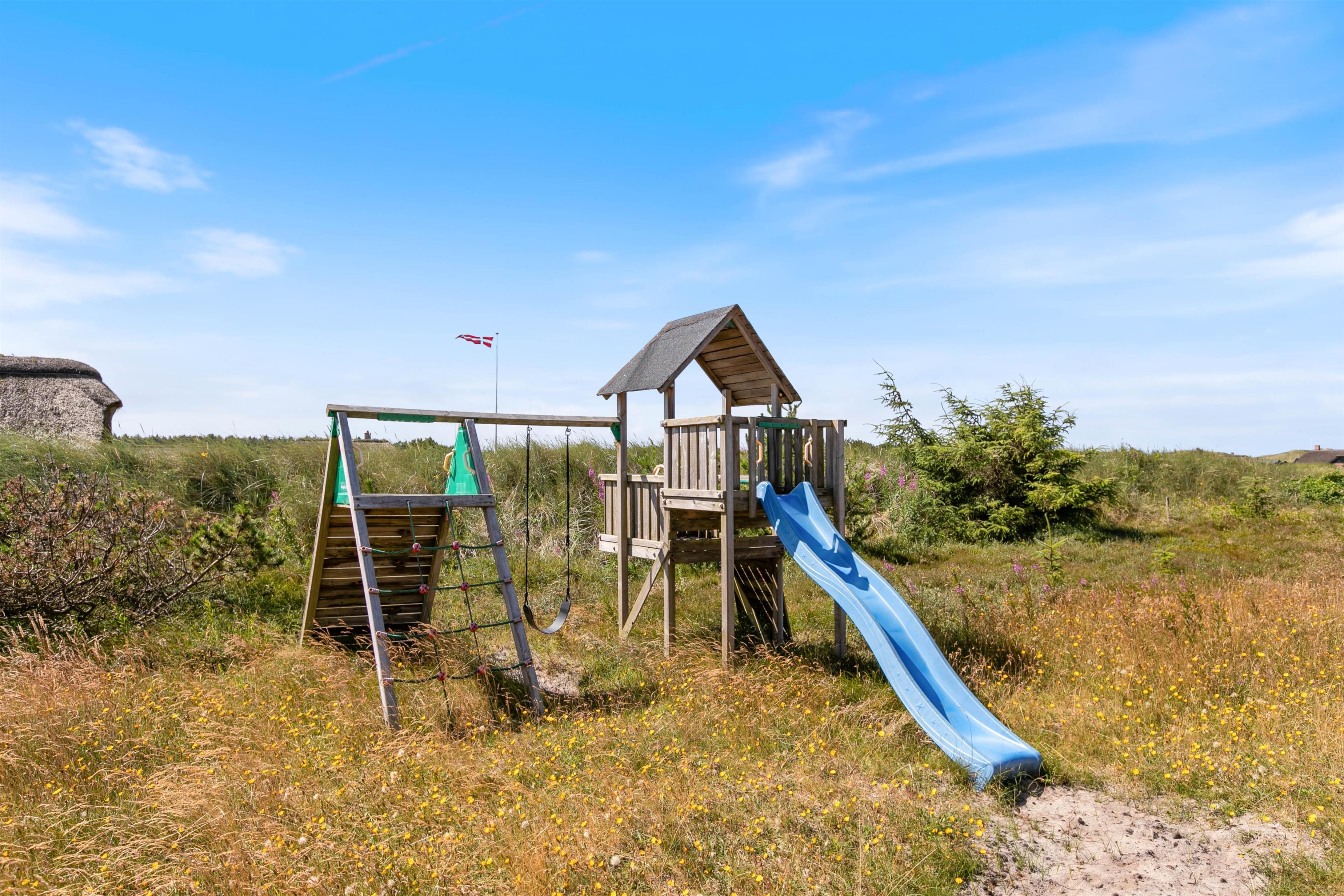Udenfor råder feriehuset både over en åben, afskærmet og lukket terrasse, hvor I med fordel på de varmerme dage, kan nyde solens varme stråler og den friske luft. Intet er mere hyggeligt end en udendørs middag, hvor aftensmaden kan tilberedes på grillen samtidig med noget koldt til ganen. I kan roligt slappe lidt af og nyde jeres ophold i fulde drag imens jeres hunde og børn frit kan lege på den lukkede terrasse.