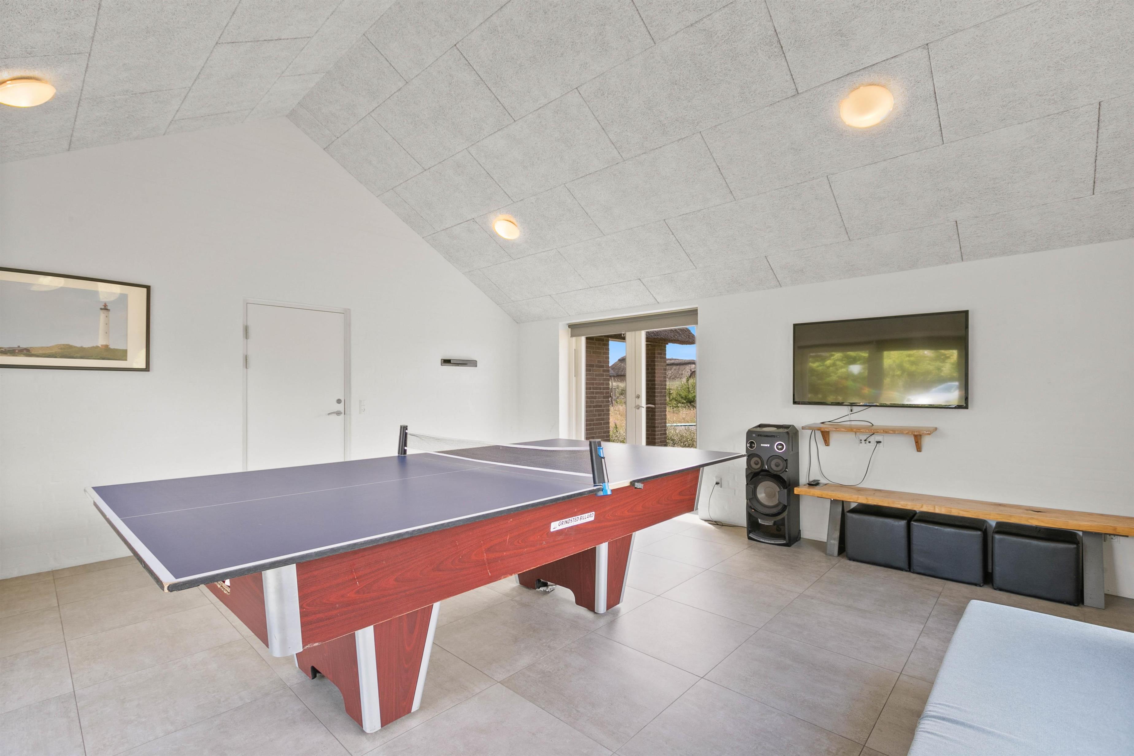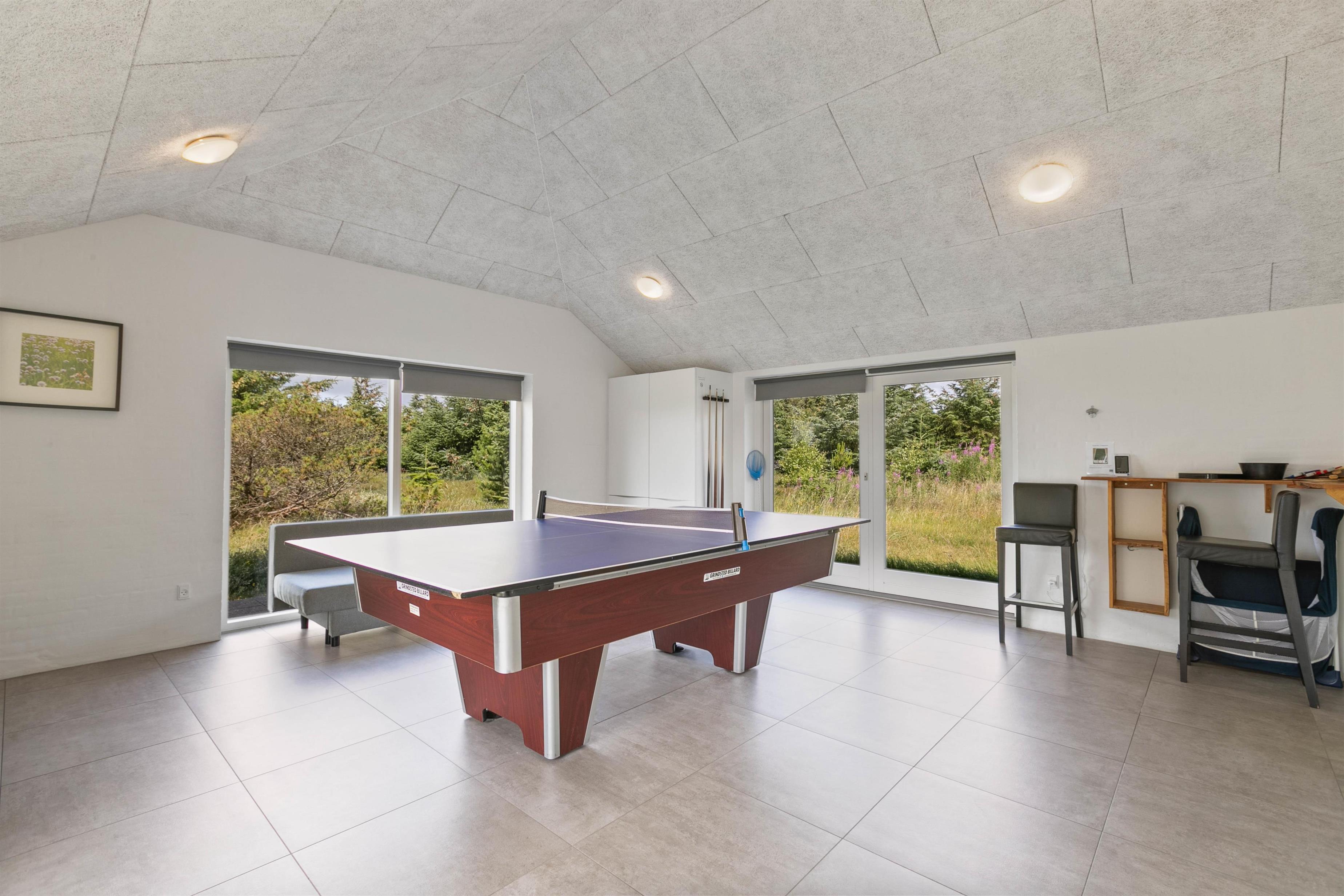 I feriehuset har I naturligvis spiseafdelingen og stuen, hvor I kan samles. Derudover er der også et dejligt aktivitetsrum med billardbord, bar og fladskærm. Her kan I hygge jer med spilaftener; uanset om det er en turnering i billard, bordtennis, brætspil, eller en dyst på den medbragte spillekonsol – det er samværet, der giver de bedste ferieminder.