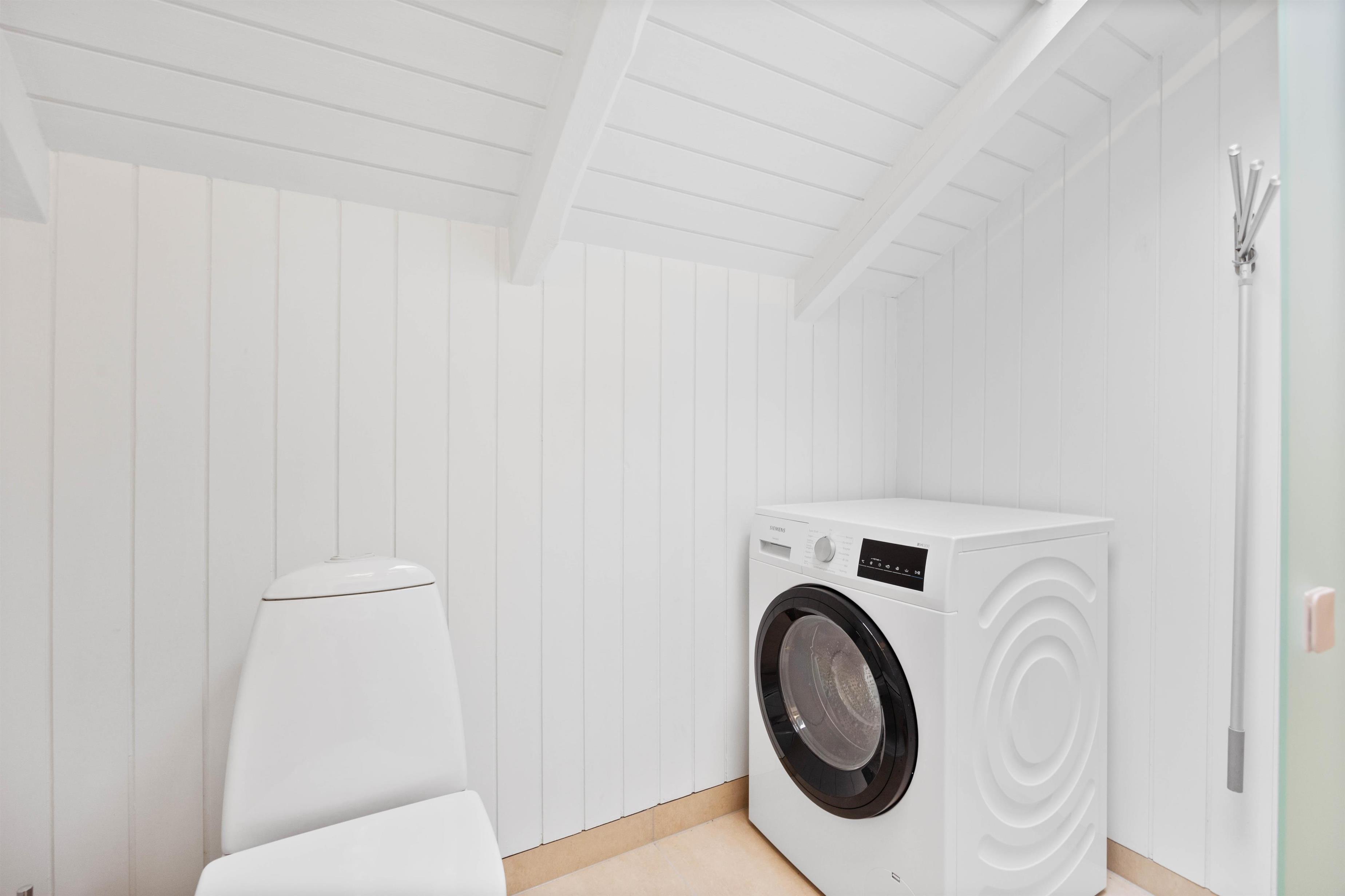 Sommerhuset i Søndervig har tre gode og rummelige soveværelser, som garanterer jer afslappende og rolige nætter. Soveværelserne er indrettet med to enkeltsenge i hver. Så I alle kan finde jeres eget personlige tilflugtssted. Badeværelset har ikke kun en bruser, men også gulvvarme, så I kan holde jer varme på de koldere dage. Der er også en vaskemaskine til jeres rådighed, så I kan friske jeres håndklæder op, under jeres ferie.