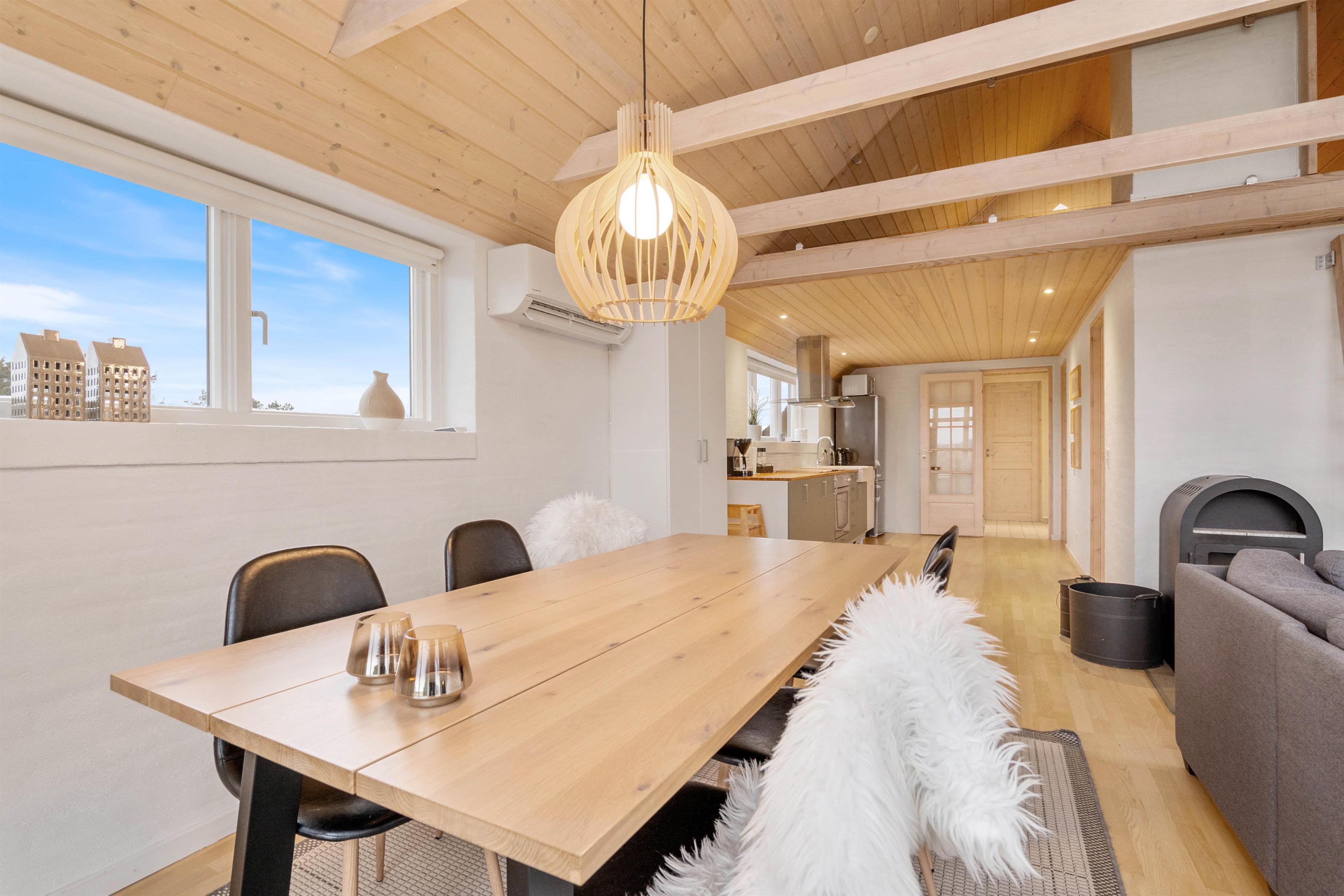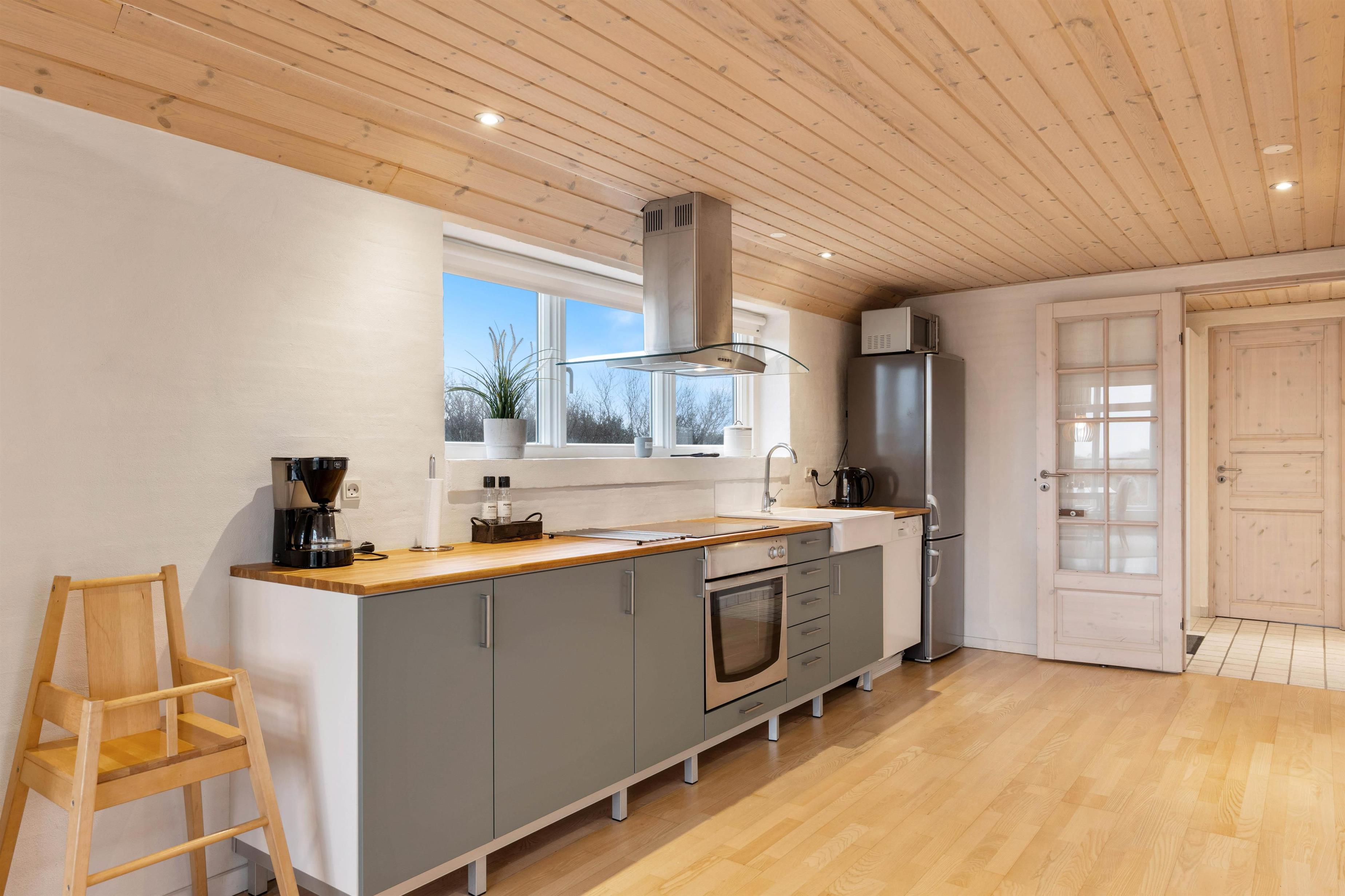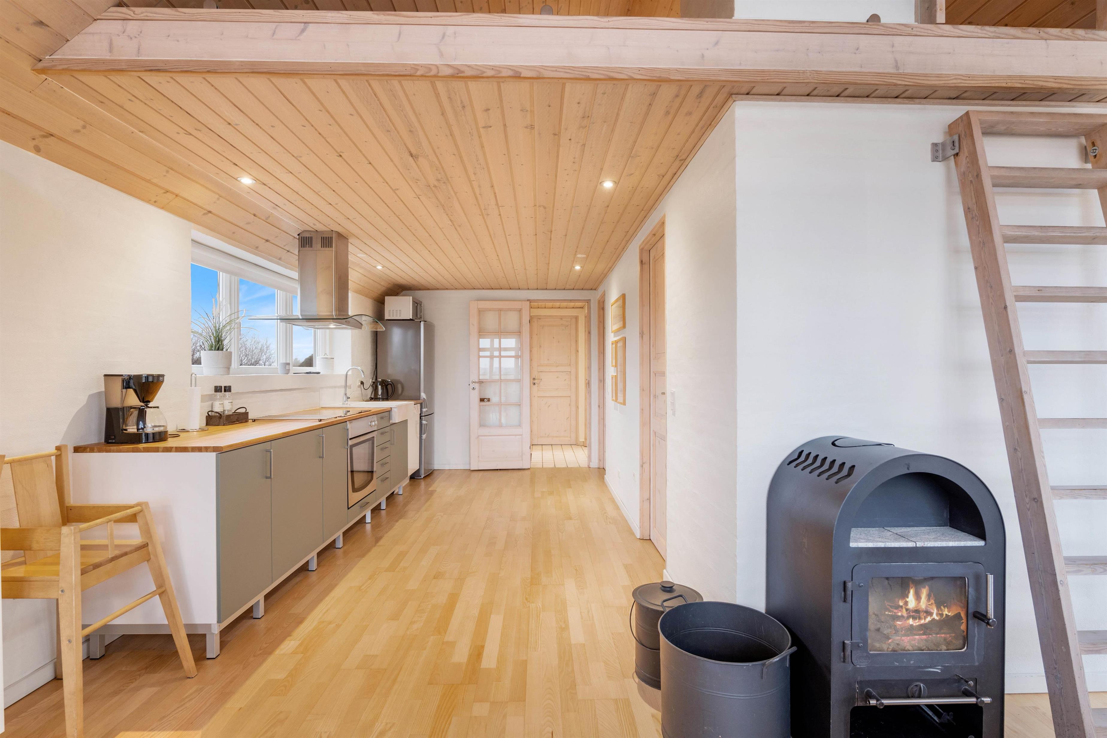 På Frans Julius Vej 21 finder I et skønt køkken med opvaskemaskine og induktionskogeplade. Køkkenet er udstyret med alt hvad I behøver, for at lave lækker mad til hele familie eller vennerne. Spisepladsen er centralt placeret, hyggelig og perfekt til at nyde et måltid sammen. Feriehuset rummer også over en super hyggelig hems, som skaber plads til at børnene kan trække sig op og spille et spil, slappe af med iPad’en eller læse en bog.