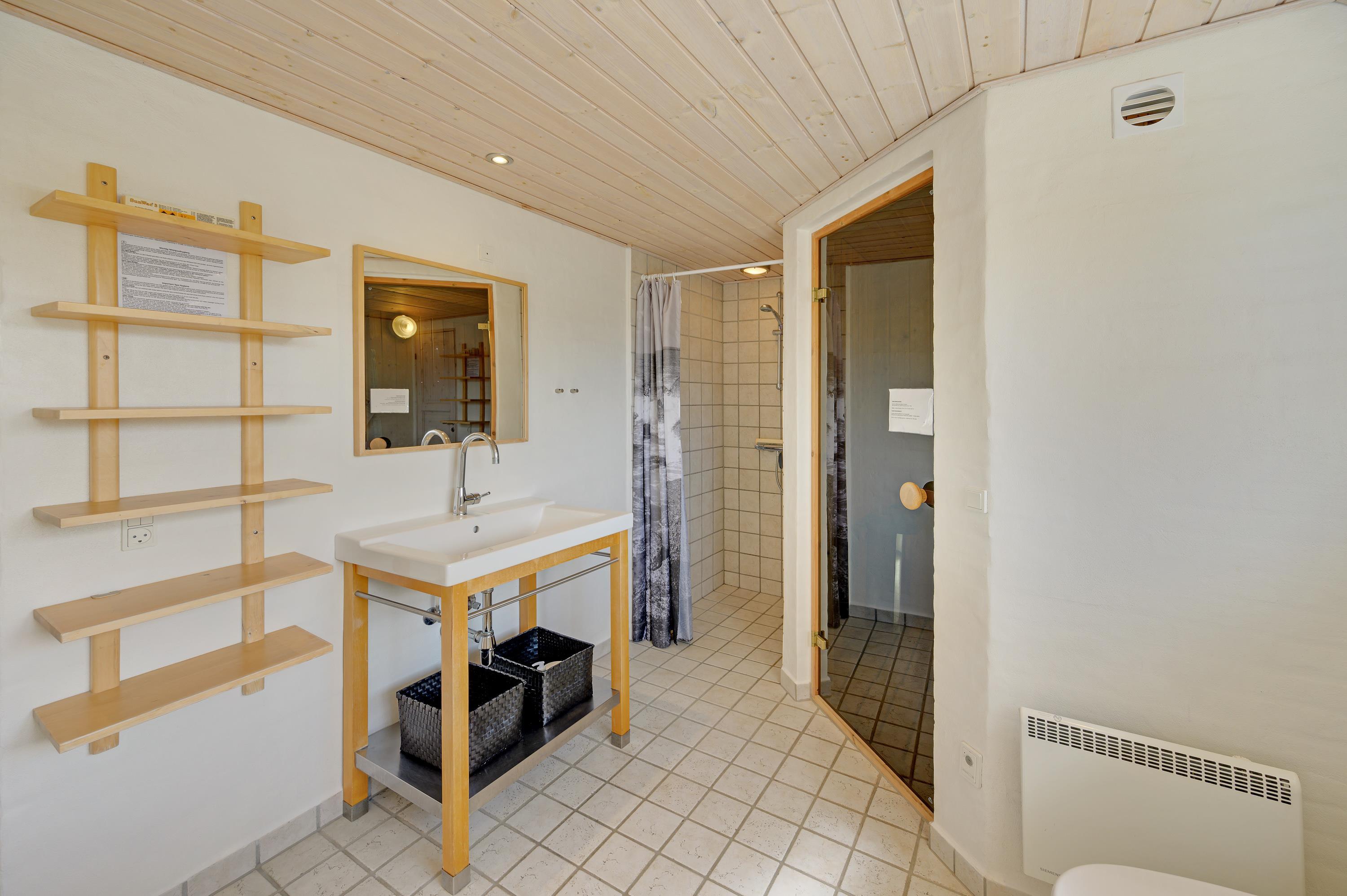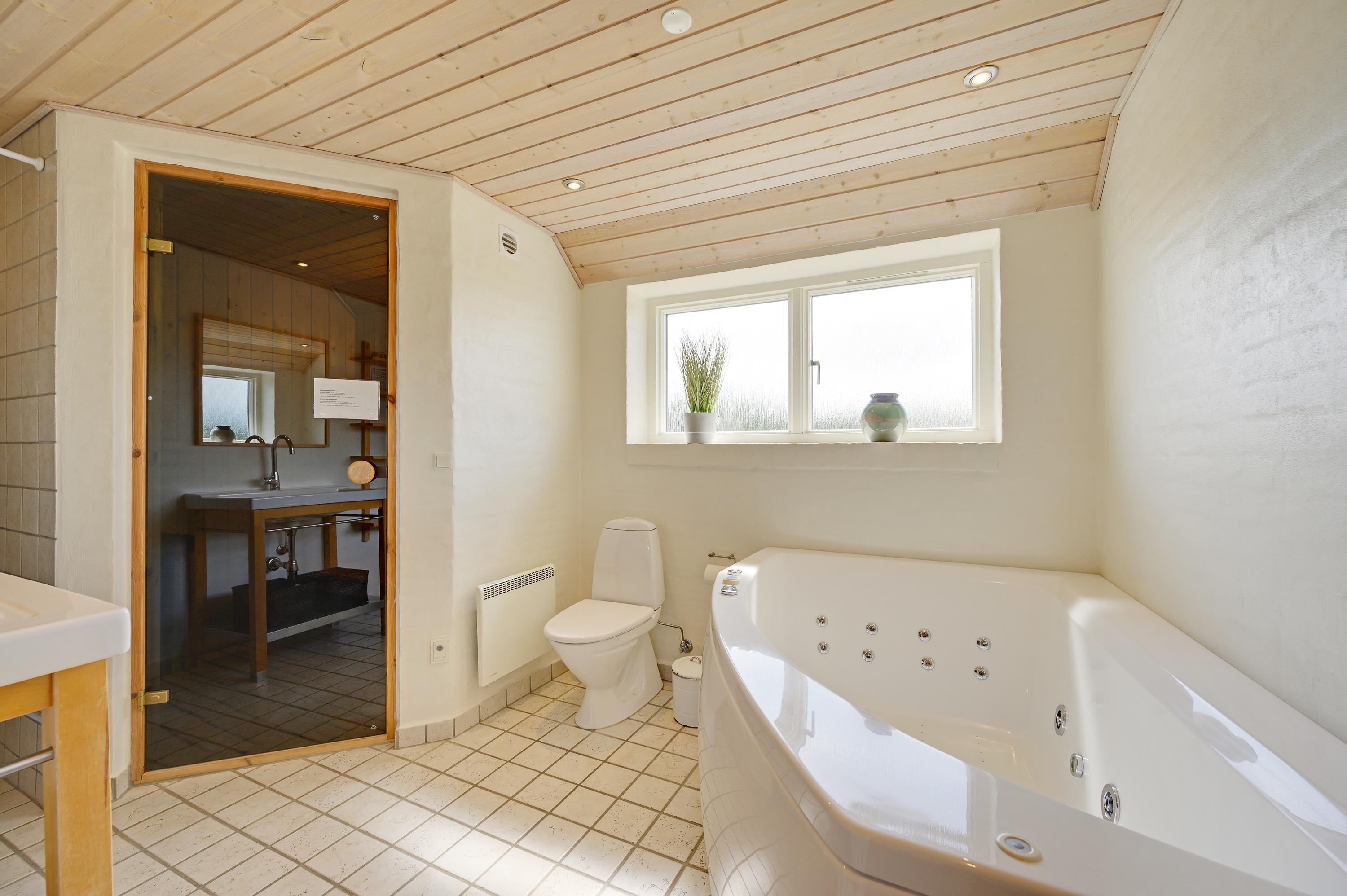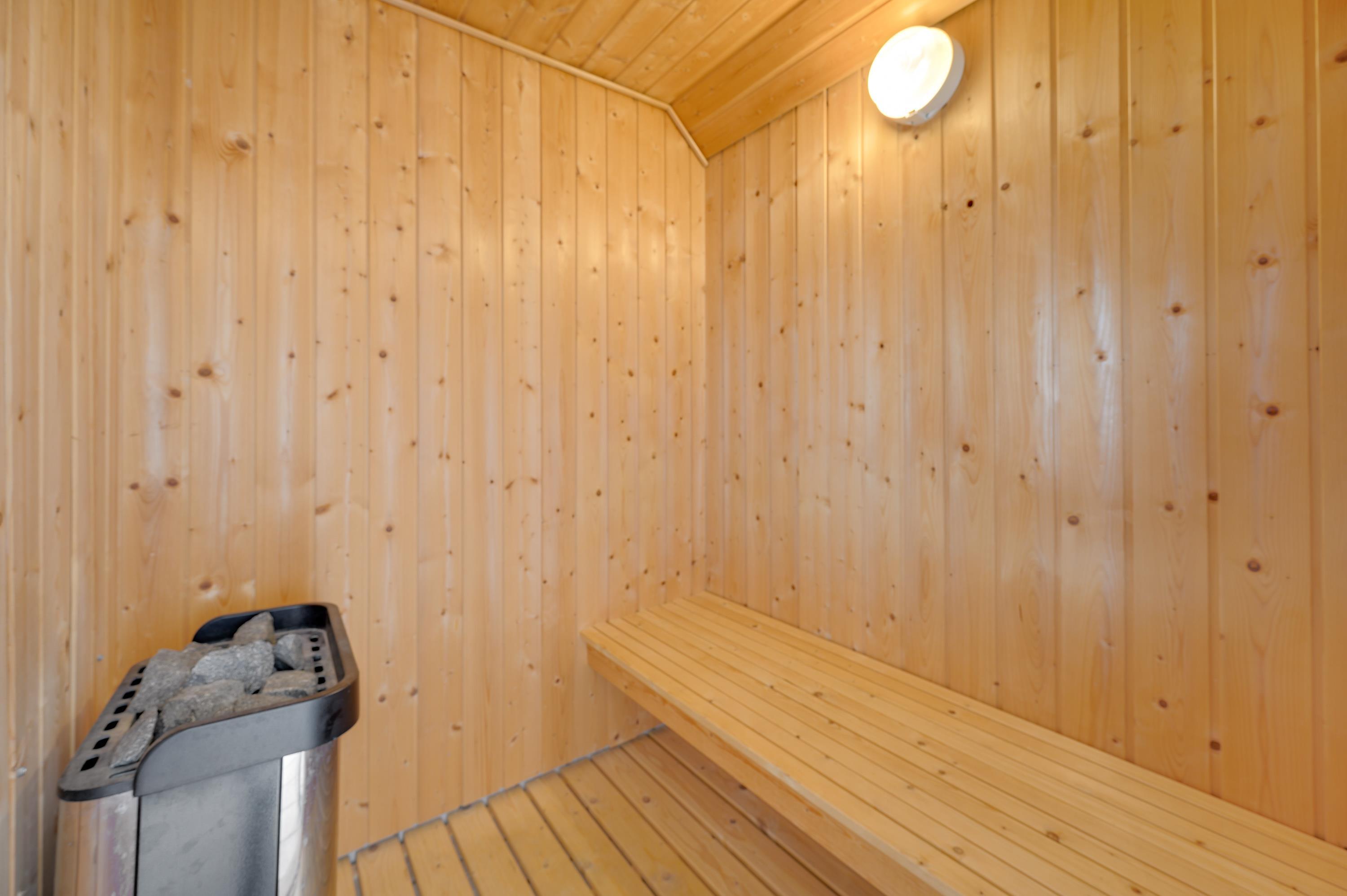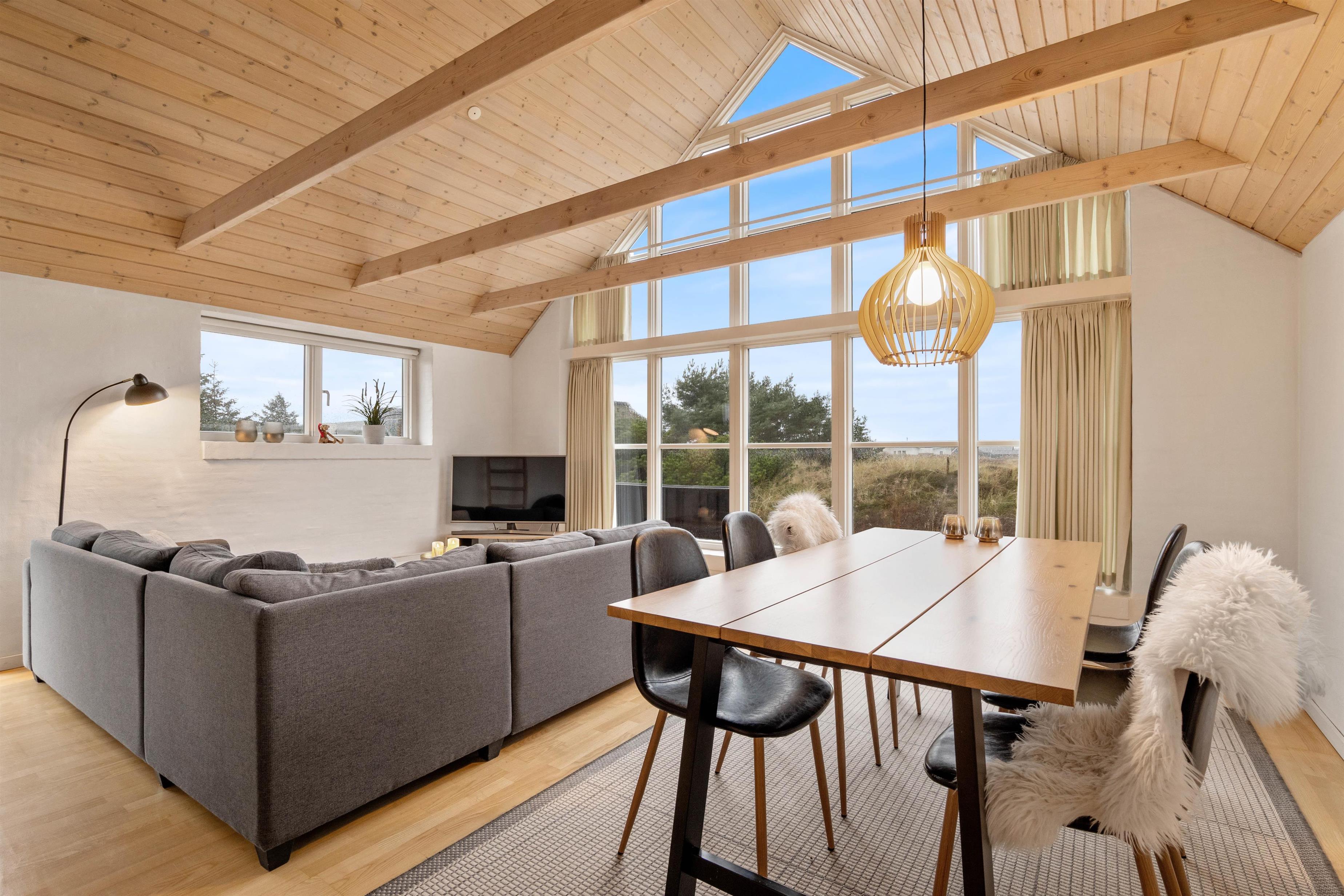 Stuen har et behageligt sofamiljø, med fantastisk lysindfald fra de store vinduer, hvilket skaber en lys og luftig atmosfære. En af de bedste ting ved dette sommerhus er brændeovnen, som er placeret i stuen. Dette er det perfekte sted, at samles til aftenen, når temperaturen falder, varme sig og hygge sig med en god bog eller en film. Men det bedste ved dette sommerhus er det lækre "wellness"- badeværelse. Det er udstyret med et spabad og sauna, så du kan slappe helt af og nyde den ultimative spa-oplevelse og komme helt ned i tempo og slippe hverdagen stress og jag.