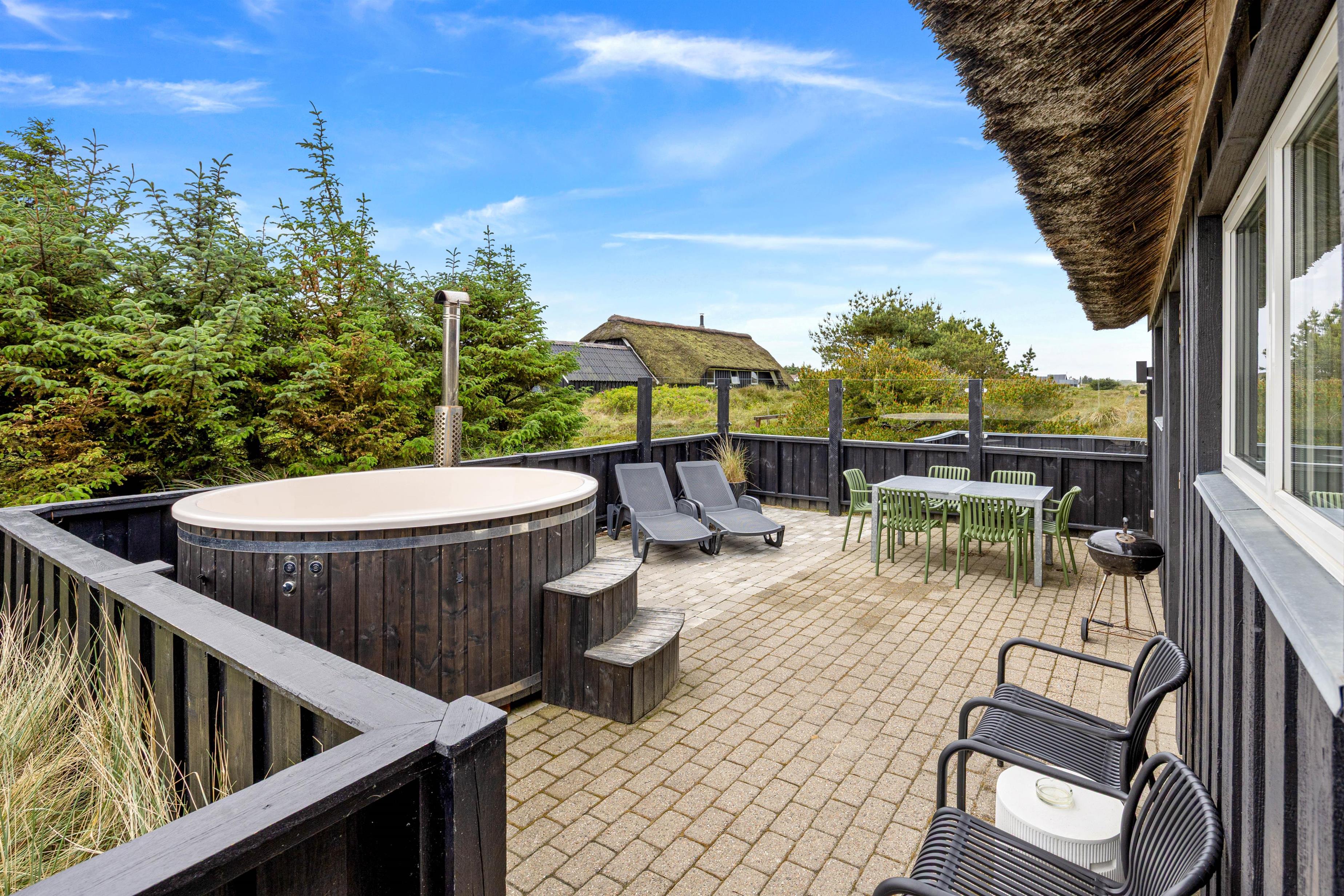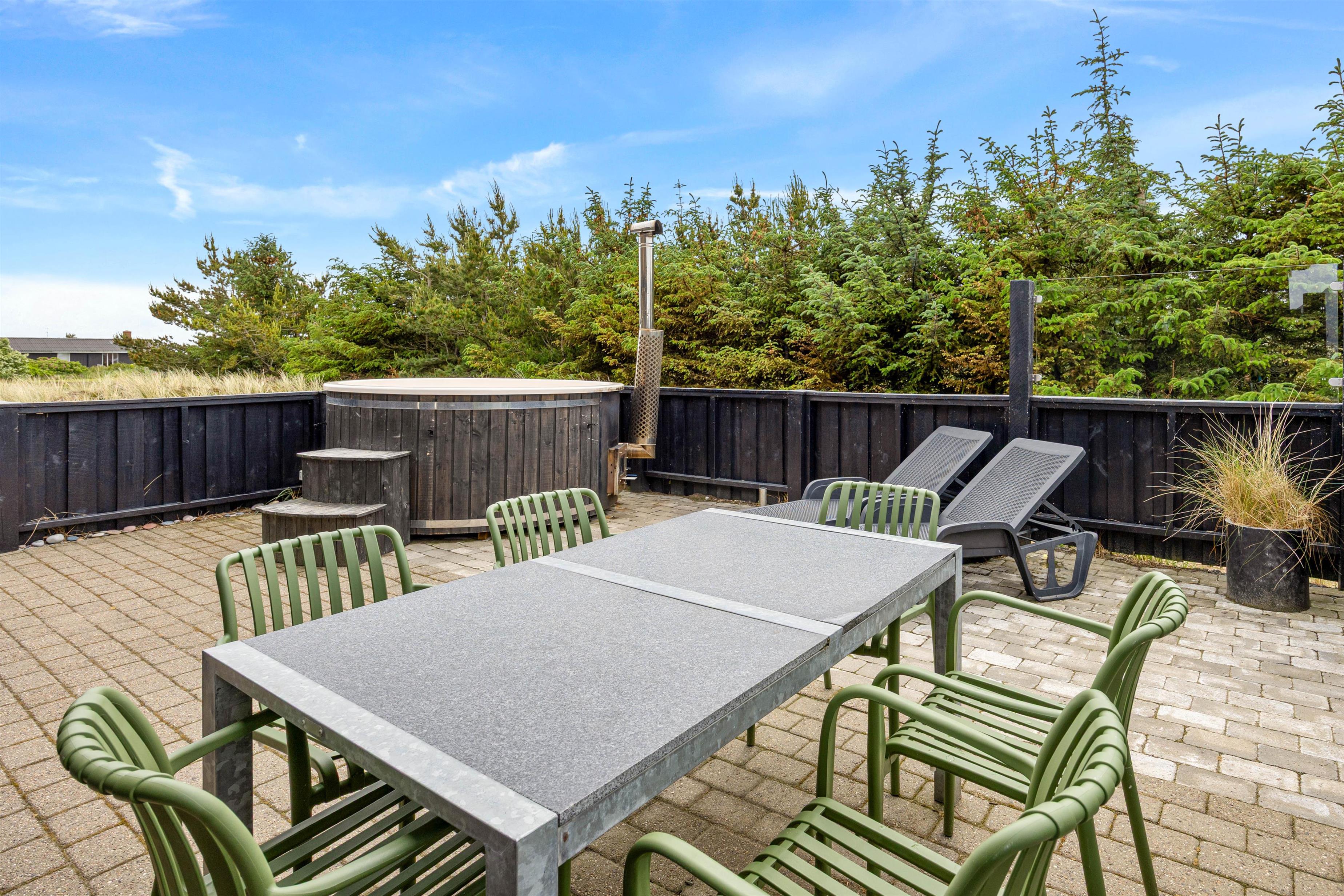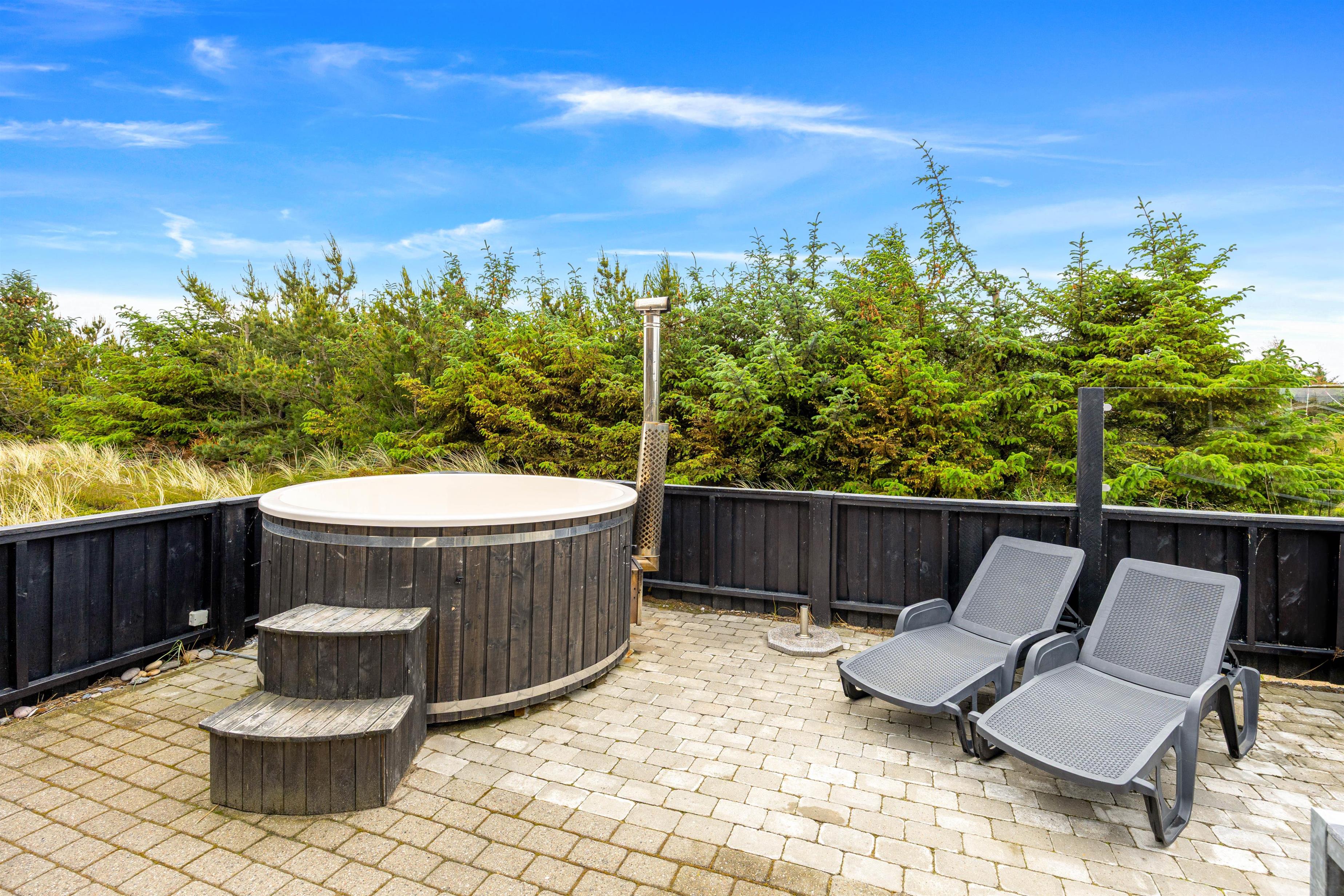 Højdepunktet i udeområdet er dog det lækkert vildmarksbad, som har plads til hele 6 personer. Der er intet som at sidde ude under åben himmel i varmt vand og nyde en dejlig sommeraften med venner og familie. Det er den perfekte måde at slappe af efter en dag fuld af aktiviteter. Når man ikke sidder i vildmarksbadet, er der masser af andre muligheder for at nyde udeområdet. Man kan grille lækker mad på grillen og nyde en dejlig middag under åben himmel. Eller man kan lægge sig på solvognen og nyde solen samt varmen.