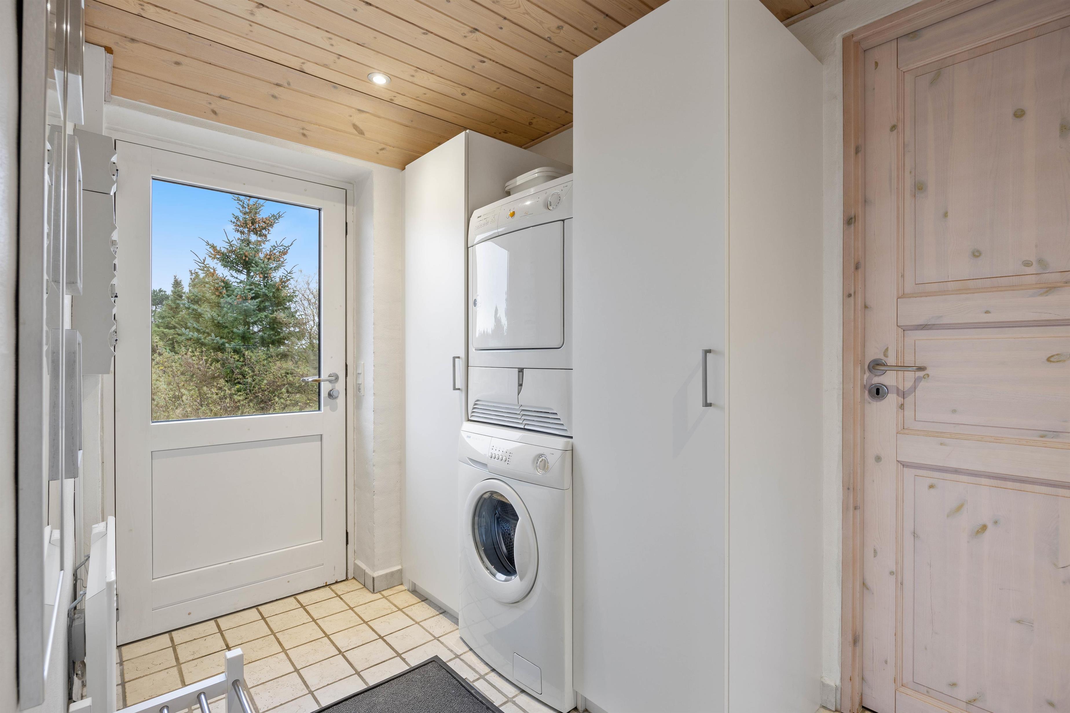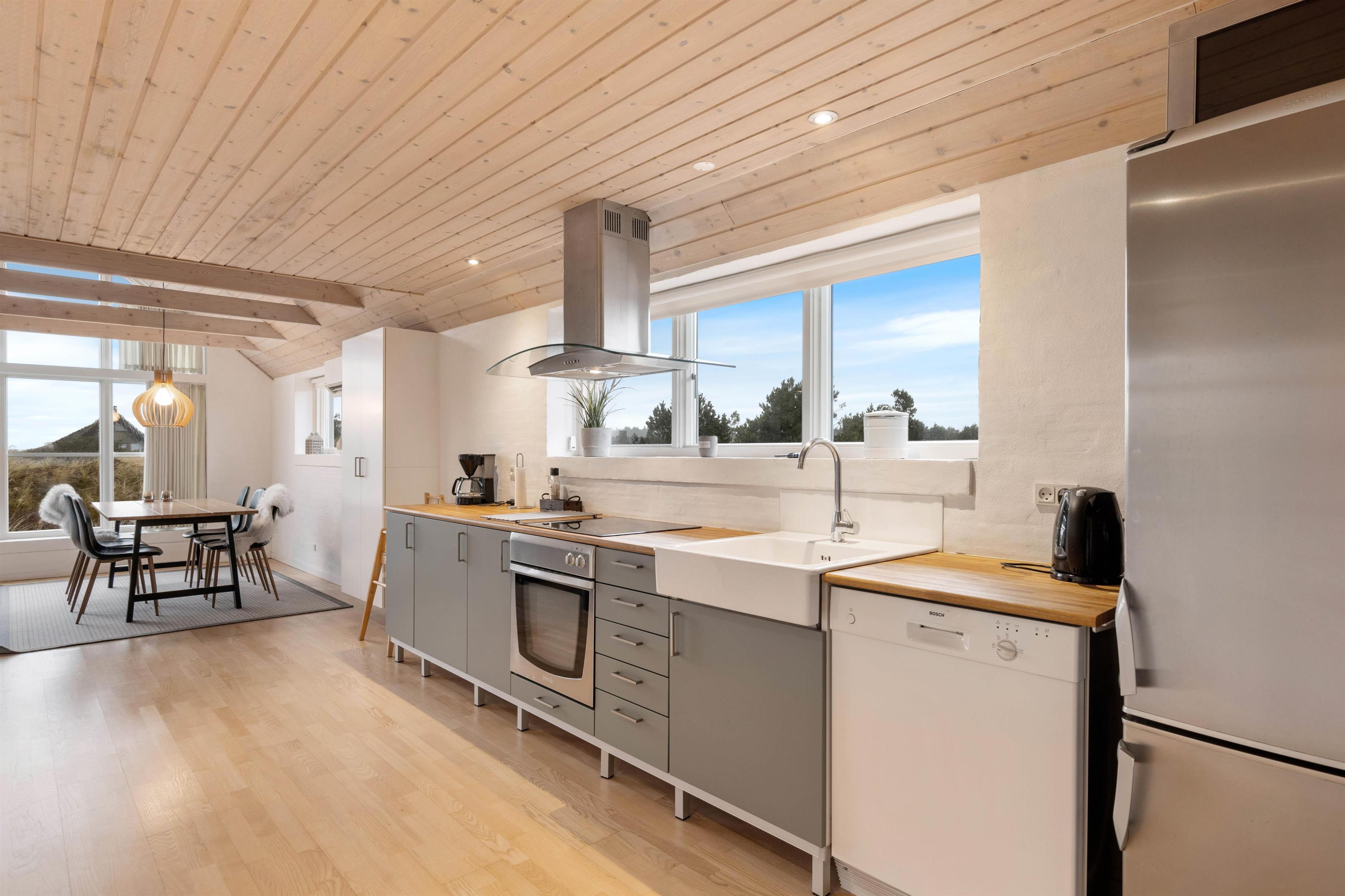 Der er der også både sandkasse og gynger til de mindste, så alle aldre har noget at fornøje sig med. Sommerhusets terrasse er også lukket og her er der dejlig læfyldt på de blæsende dage. Alt i alt er dette sommerhus et fantastisk sted at tilbringe din ferie. Det er en perfekt kombination af moderne bekvemmeligheder og hyggelig atmosfære, der vil give jer en mindeværdig og afslappende ferieoplevelse.