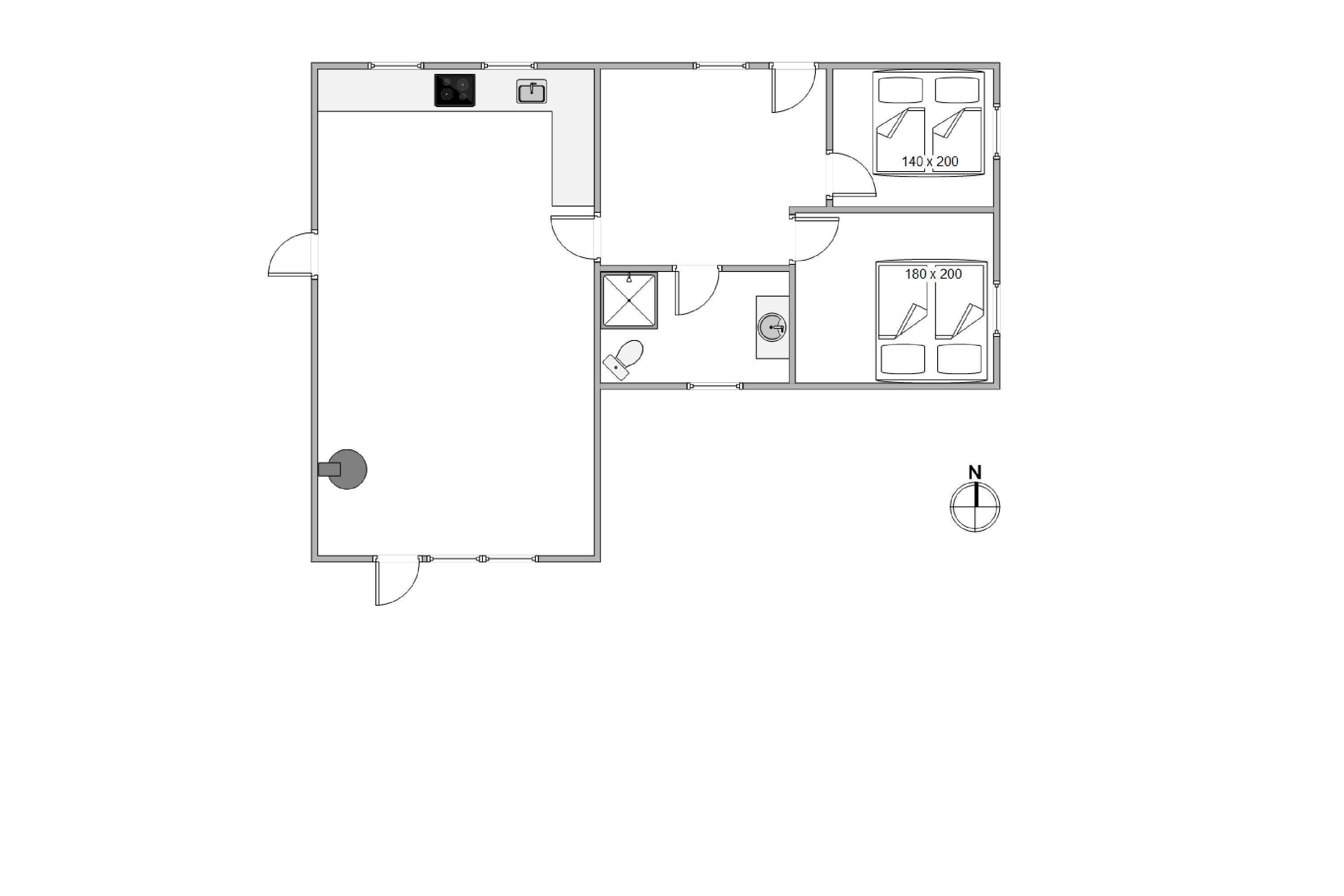 Sommerhuset har også en luft-til-luft varmepumpe, der sikrer en behagelig temperatur hele året rundt. Køkkenet er udstyret med opvaskemaskine, hvilket gør det nemt at rydde op efter måltider, så I kan bruge mere tid på at nyde ferien.