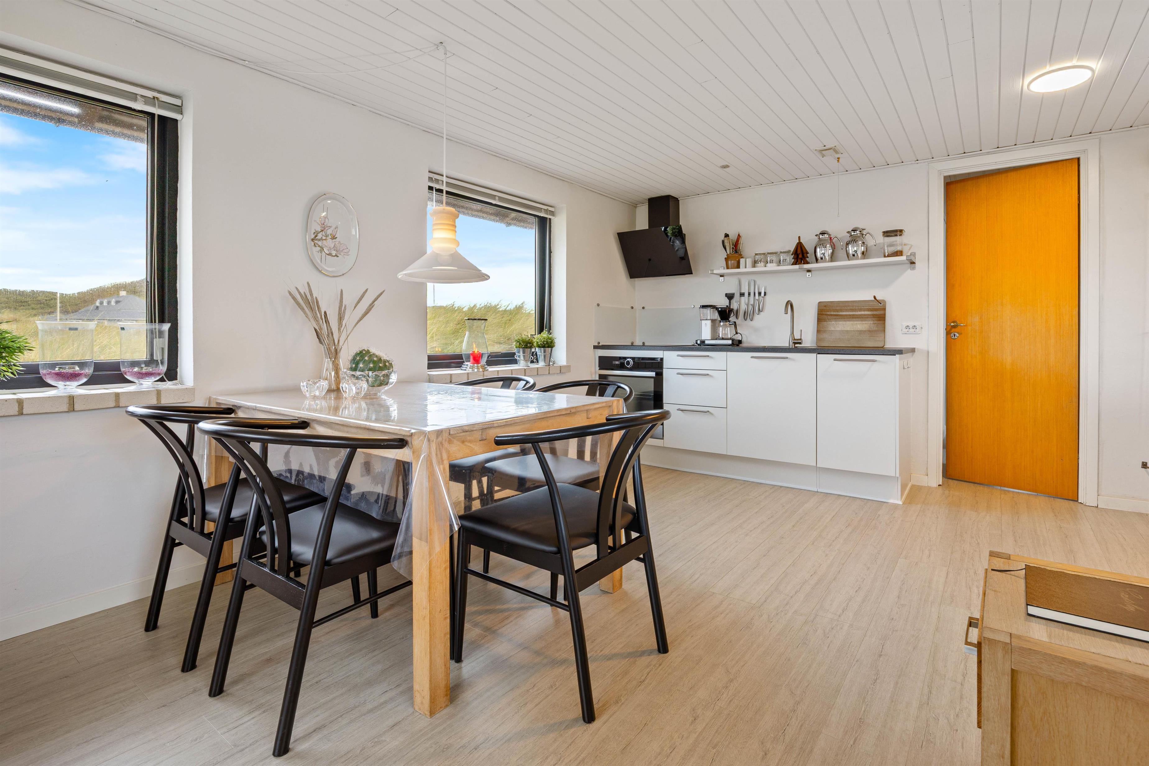 I får en herlig beliggenhed kun 150 meter fra stranden. På de gode dage kan I fra terrassen høre bølgerne bruse mod stranden. På få minutter kan I komme helt ned til vandkanten og dyppe fødderne – de friske vil sikkert hurtigt skulle ned og tage en dukkert i det kølige Vesterhav. Hunden vil helt sikkert også elske at komme med på en spadseretur langs den kilometerlange sandstrand.