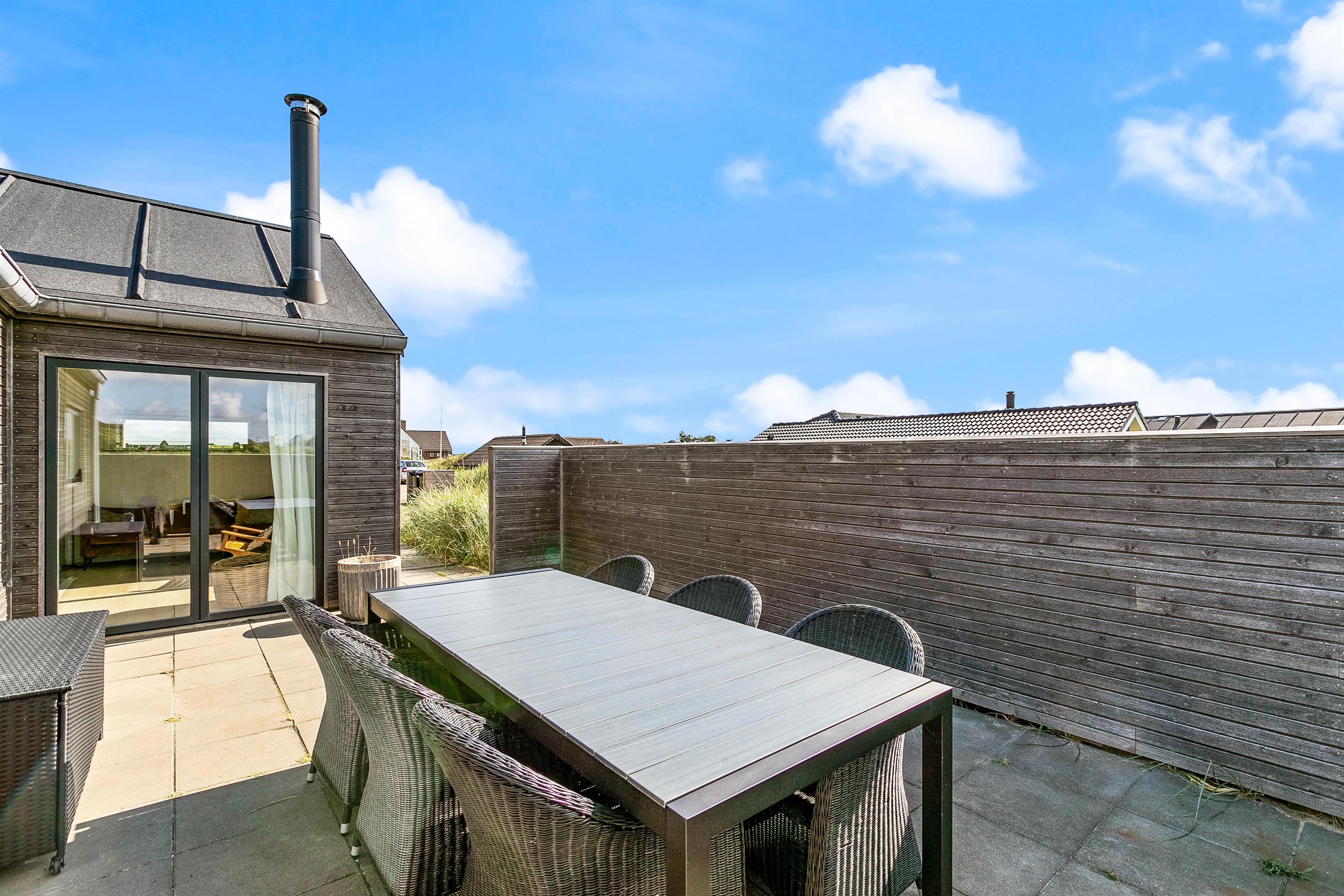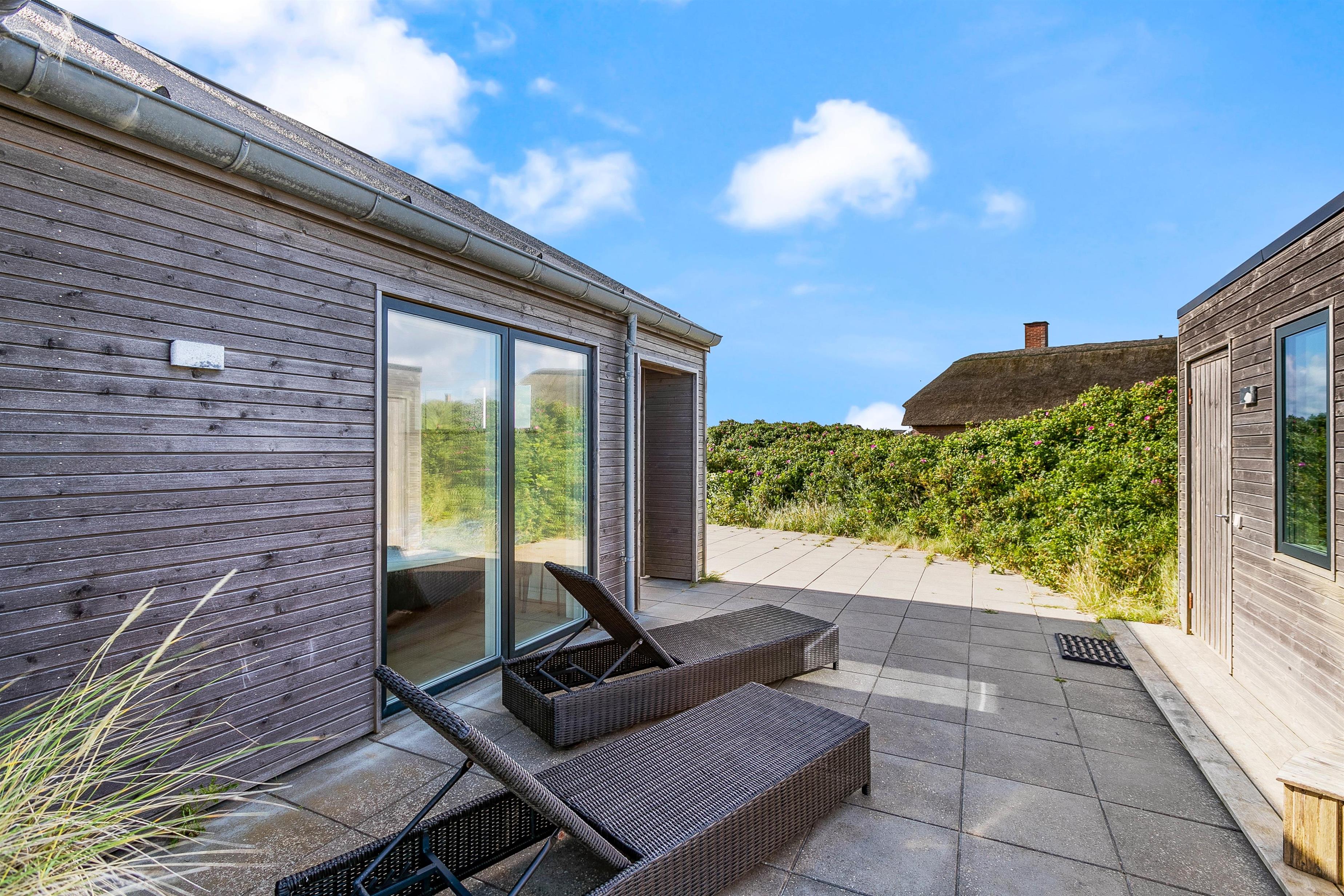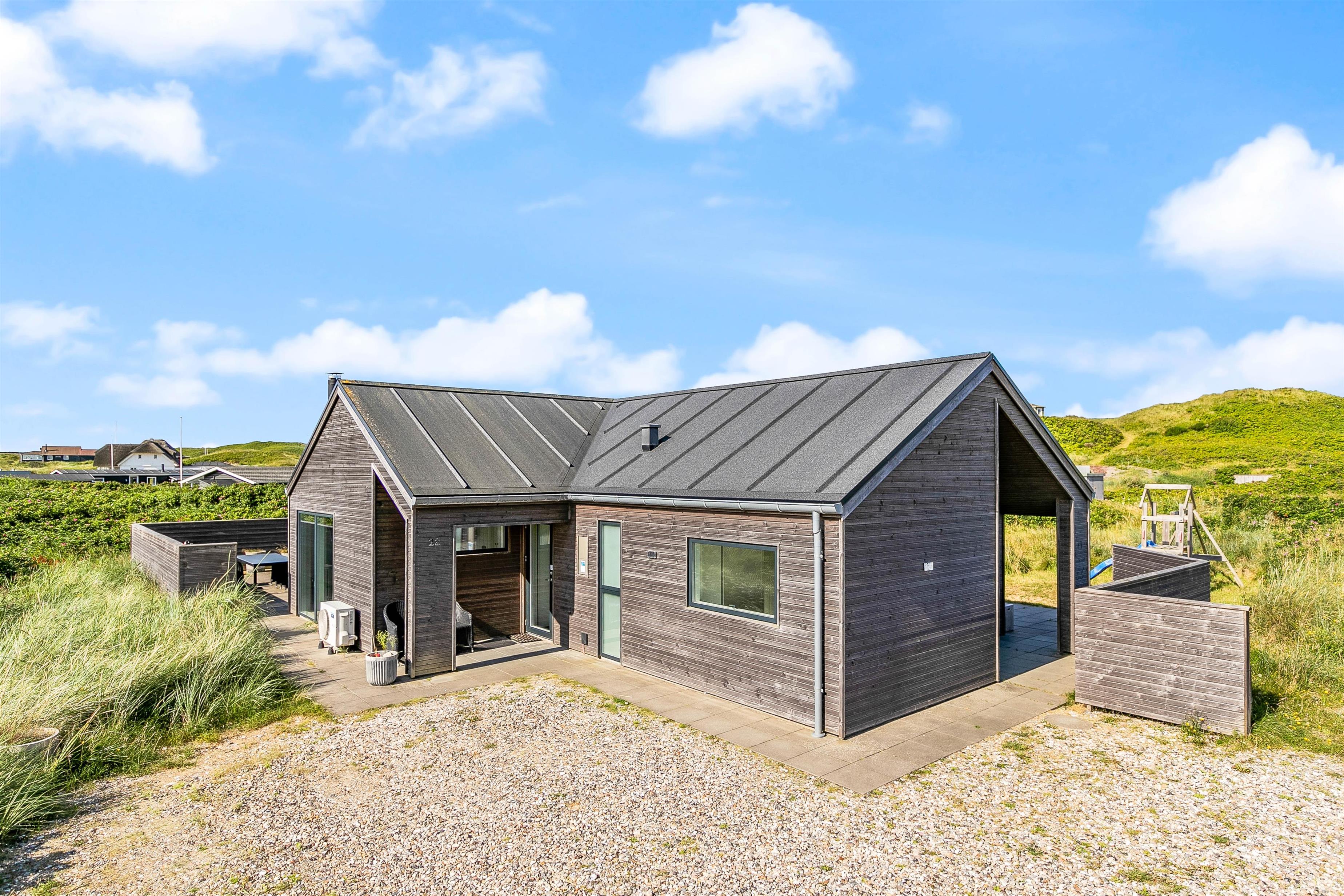 Der er lagt stor vægt på, at I skal få en god ferie med masser af mulighed for at koble af; både på den komfortable og stilfulde sofa foran den knitrende brændeovn, i den varme sauna eller i det boblende vildmarksbad på terrassen med udsyn til det smukke klitlandskab. Derudover finder I fire gode soveværelser, der alle er udstyret med en dobbeltseng, sådan alle gæster kan få en komfortabel og god nats søvn.