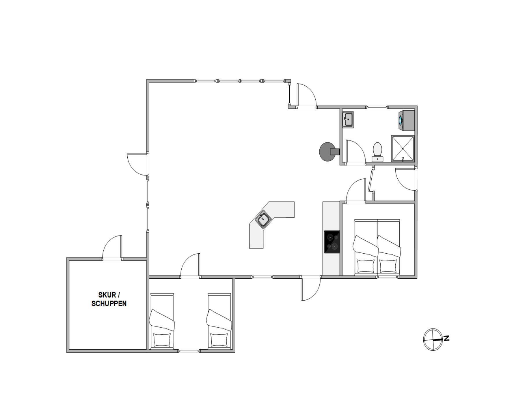 Sommerhuset på Wolle Friks Vej 37 indeholder et stort fællesrum, der forener stue, spiseafdeling og køkken med hinanden. Her kan I alle samles om madlavningen, hyggelige spilaftener og mange andre gode ferieøjeblikke, mens brændeovnen knitrer i baggrunden. Sommerhuset er på i alt 75 kvadratmeter, og er hele tiden løbende blevet renoveret. Derfor fremstår huset som utrolig velholdt og flot. Sommerhuset størrelse er helt ideelt til en lille familie eller en gruppe venner. Moderne bekvemmeligheder som en luft-til-luft varmepumpe sikrer en behagelig temperatur hele året rundt.
