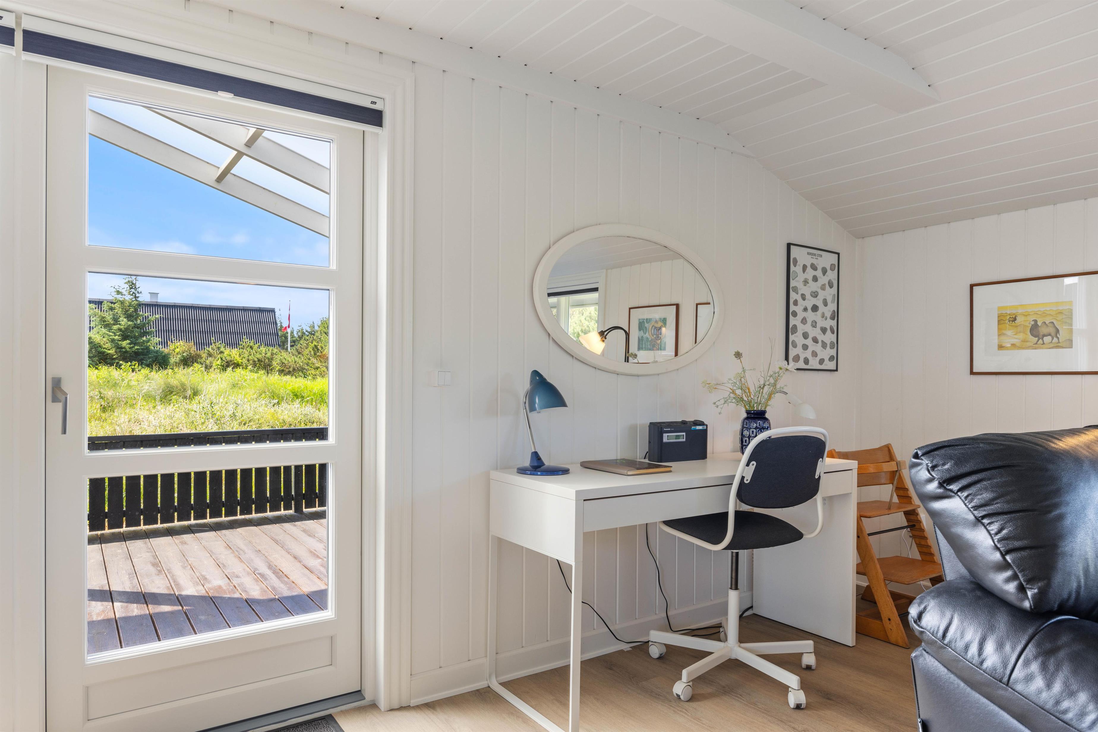 De to soveværelser er indrettet med henholdsvis en dobbeltseng og 2 enkeltsenge, perfekt til den lille familie. Badeværelset er udstyret med gulvvarme, så I ikke får kolde fødder, når der skal børstes tænder om morgenen. Derudover er der en vaskemaskine og tørretumbler, så I kan holde jeres tøj friskt under hele opholdet. Med gratis internet har I mulighed for at holde kontakten med omverdenen, eller måske streame en film foran brændeovnen efter en lang dag ved stranden. Her kommer I ikke kommer til at mangle nogen praktiske faciliteter på ferien.