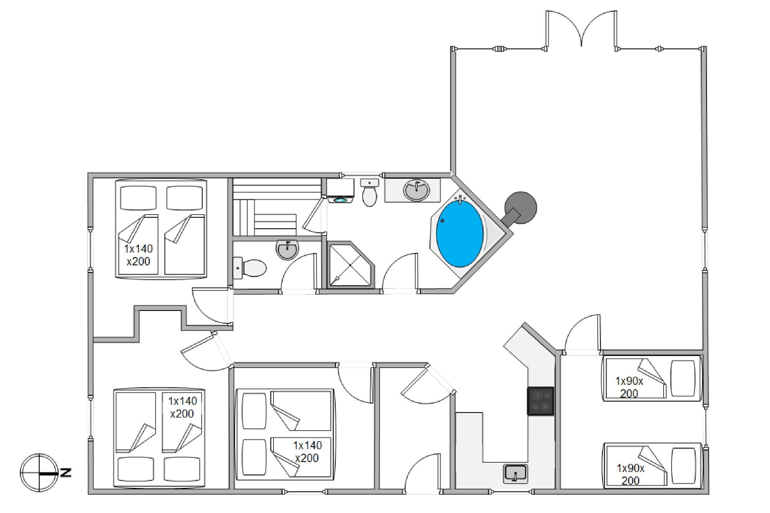 Saunaen og spaen indbyder til selvforkælelse og afslapning. Det store badeværelse er også med gulvvarme, så kolder fødder burde ikke være noget problem. Der er intet skønnere end at blive varmet godt igennem efter en gåtur på stranden i vinterhalvåret. I stuen har du både en varmepumpe og brændeovn, der sørger for en dejlig temperatur uden af elforbruget løber løbsk.