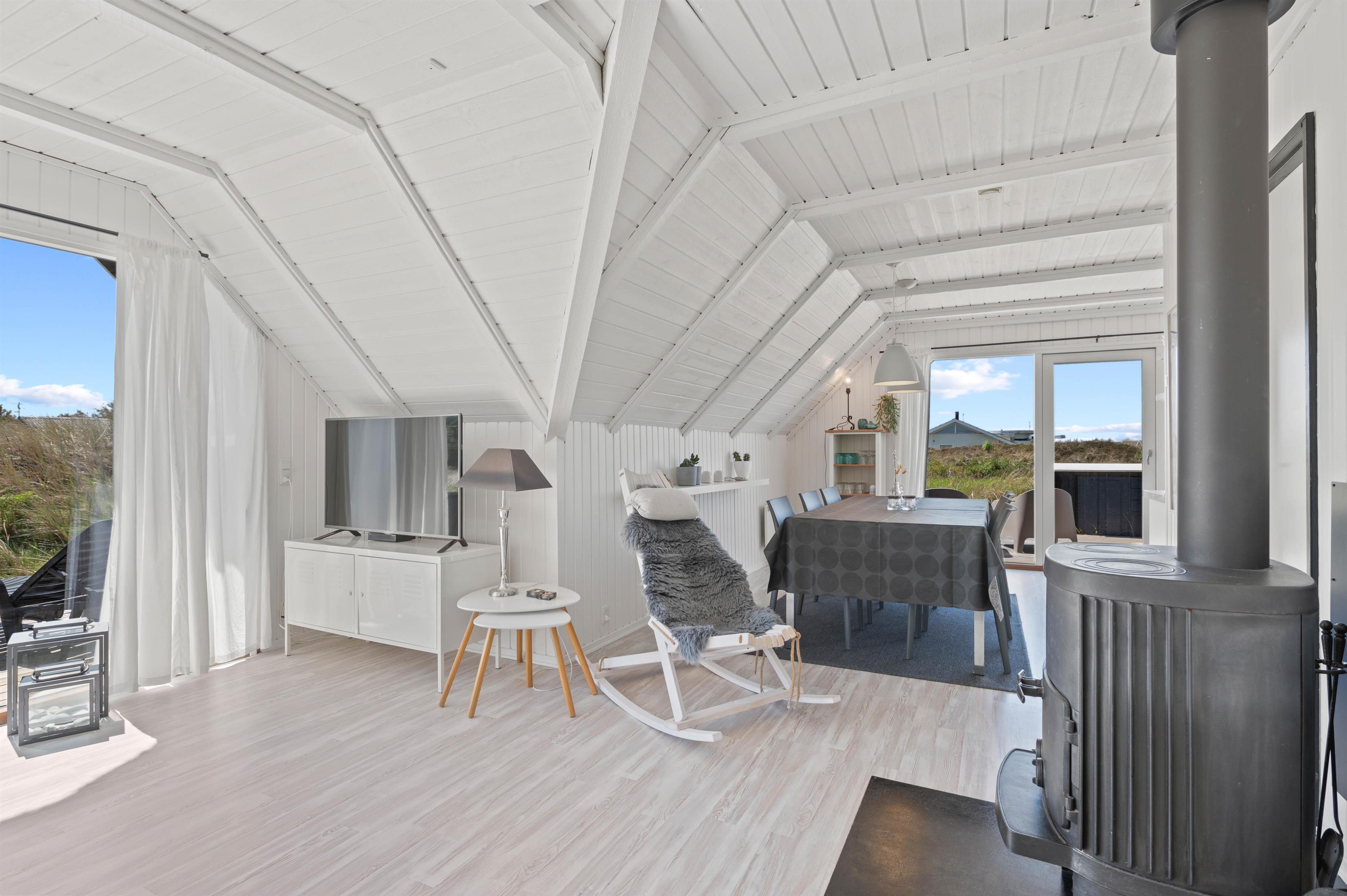 Sommerhuset på Jakob Bondes Vej 14 rummer en lys og venlig indretning, som I helt sikkert vil finde jer godt tilpas i på ferien. Hjertet i feriehuset er alrummet, hvor I kan tilbringe hyggelige feriestunder med god mad, sjove spil og spændende film. Brændeovnens varme og knitren i baggrunden fuldender den gode feriestemning.