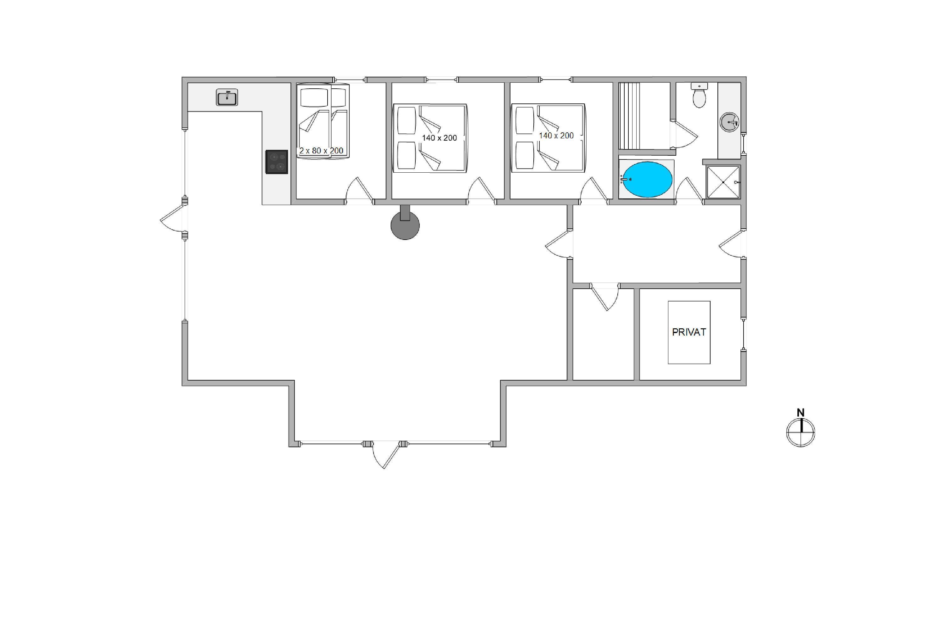 Sommerhuset har 1 badeværelse, hvor I også finder feriehusets højdepunkter; spaen og saunaen. Her er der lagt op til rolige, afslappende stunder, hvor I kan komme helt ned i gear og få ladt jeres batterier op igen.