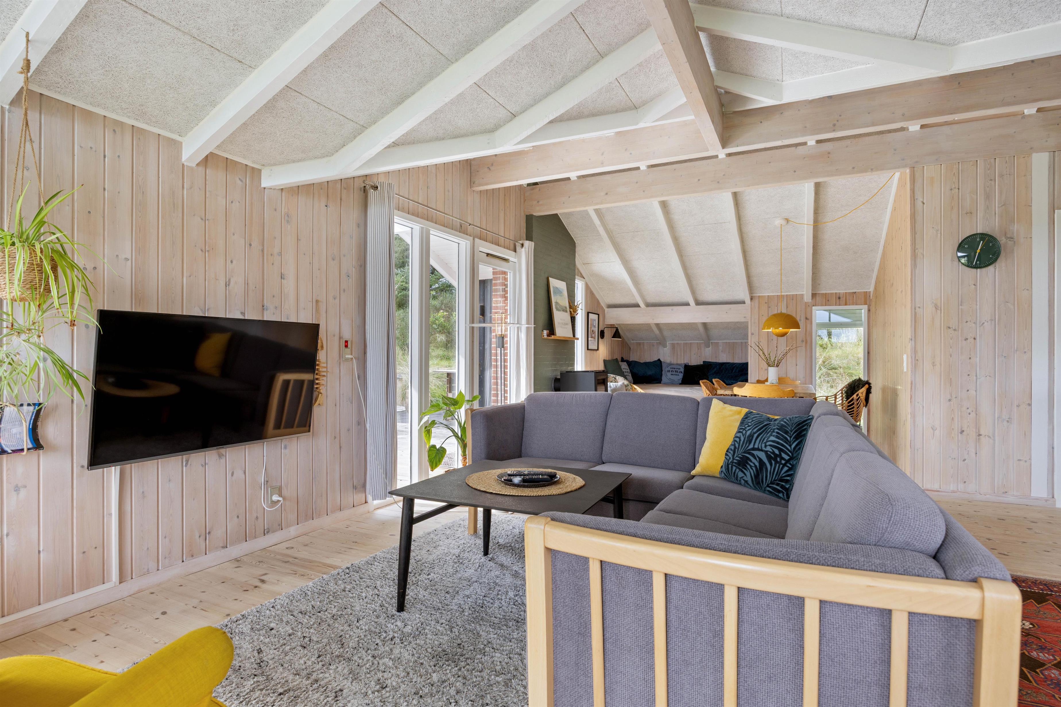 Dette sommerhus er udstyret med en række moderne bekvemmeligheder, som vil gøre jeres ophold ekstra komfortabelt. En brændeovn sørger for hygge på kølige aftener, mens gulvvarme i badeværelset sikrer varme fødder om morgenen. En luft til luft varmepumpe bidrager til et behageligt indeklima året rundt. Sommerhuset har også gratis internet og Chromecast, så I kan streame jeres yndlingsprogrammer uden problemer.