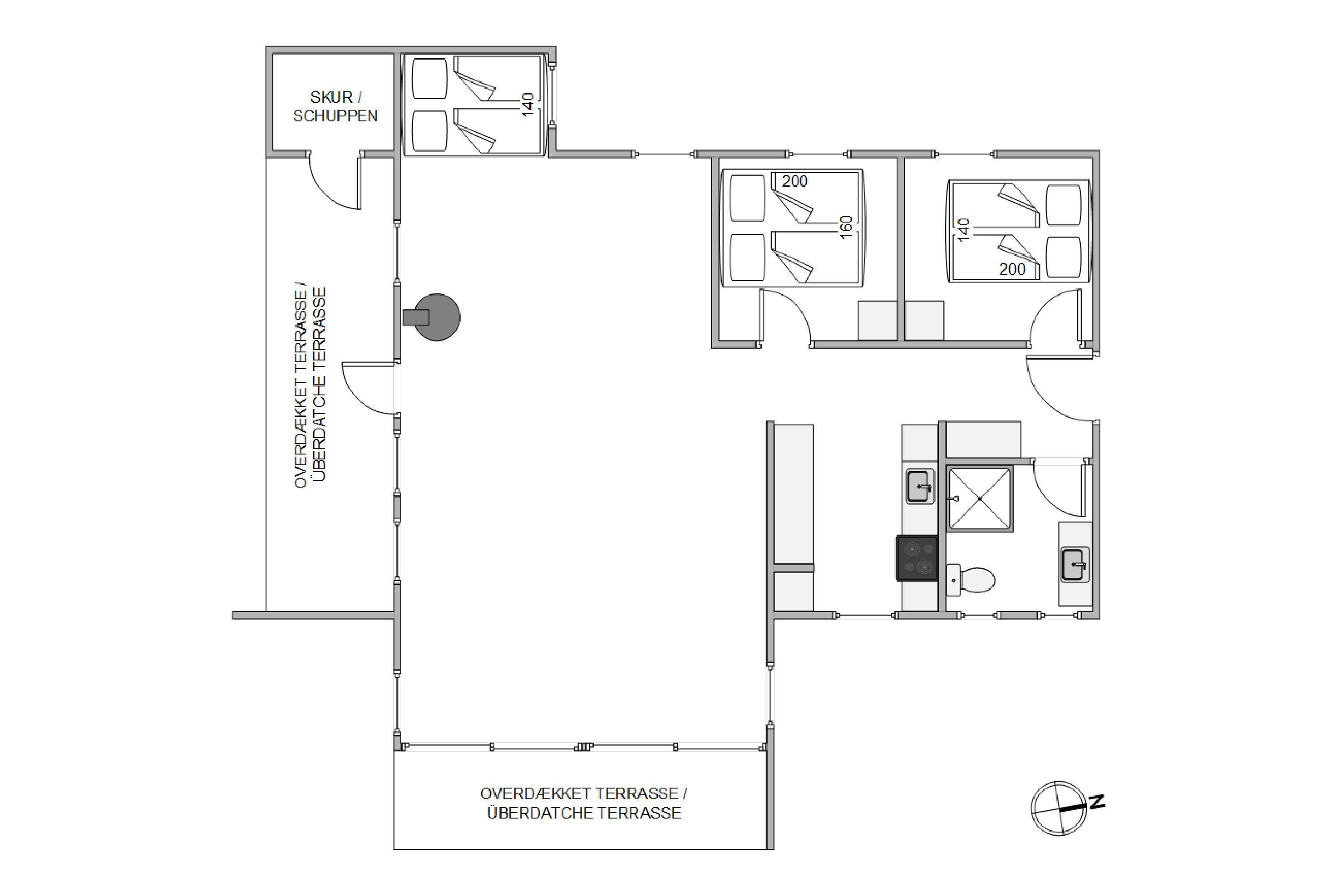 Med sine 92m2 rummer sommerhuset over to hyggelige soverum med plads til maksimalt plads til 4 personer. Her er der højt til loftet og synlige loftsbjælker. Du får dermed en fornemmelsen af at være i et rigtigt sommerhus. Indretningen er hyggelig og personlig, og det skaber varme. Udover en dejlig sofagruppe har stuen en brændeovn, der hjælper med opvarmningen, og en lille hyggelig alkove, som er perfekt til afslapning på langs med en god bog – eller måske en lille hyggekrog til børnene.