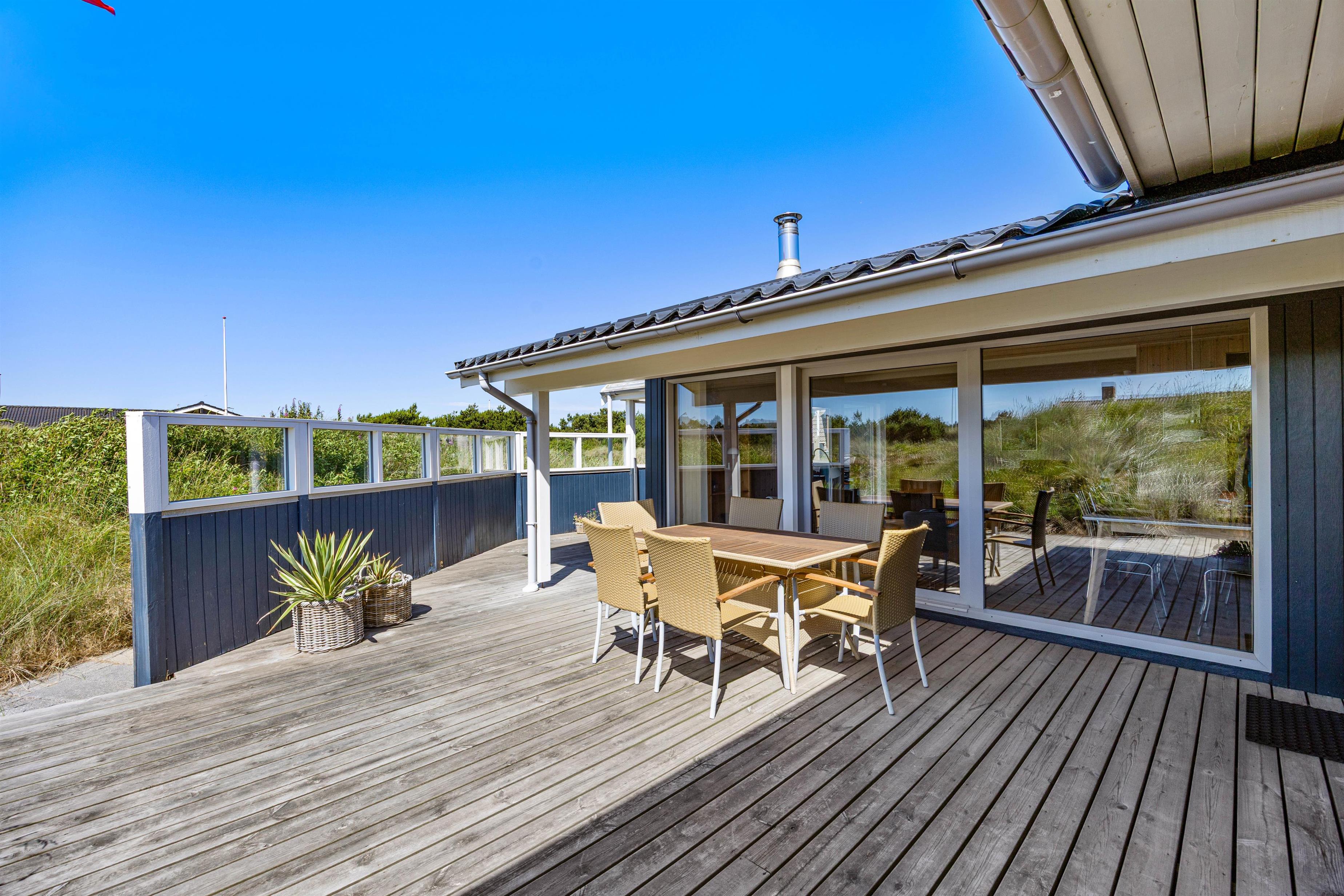 Den overdækkede terrasse betyder, at I altid har mulighed for at være udenfor, uanset vejret. Her har I mulighed for at bruge de behagelige havemøbler, som indbyder til afslapning og hygge. Her er I omgivet af det fantastiske klitlandskab, som er med til at skabe privatliv. Nyd de lange sommerdage, eller den altid fascinerende stjernehimmel om efteråret.