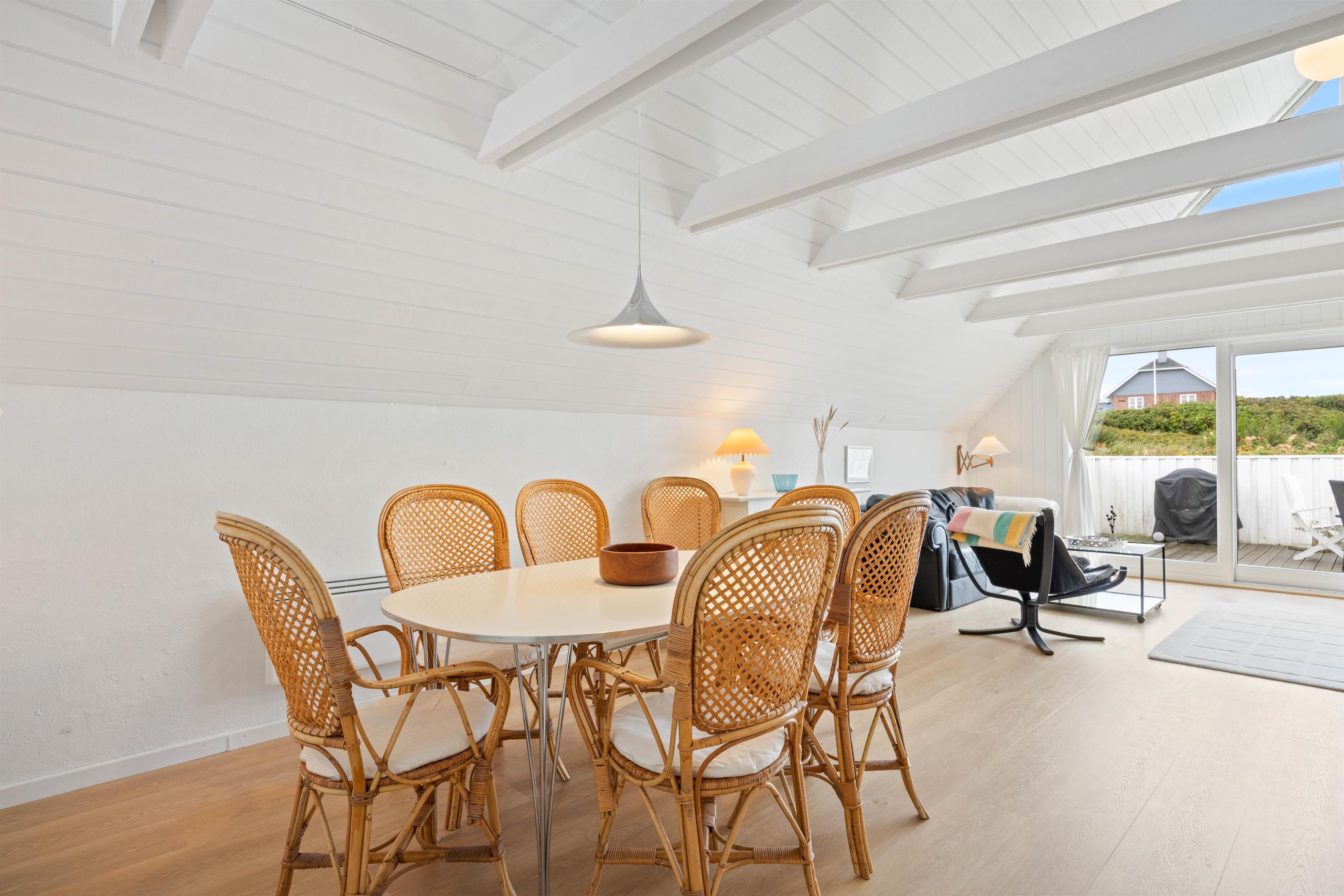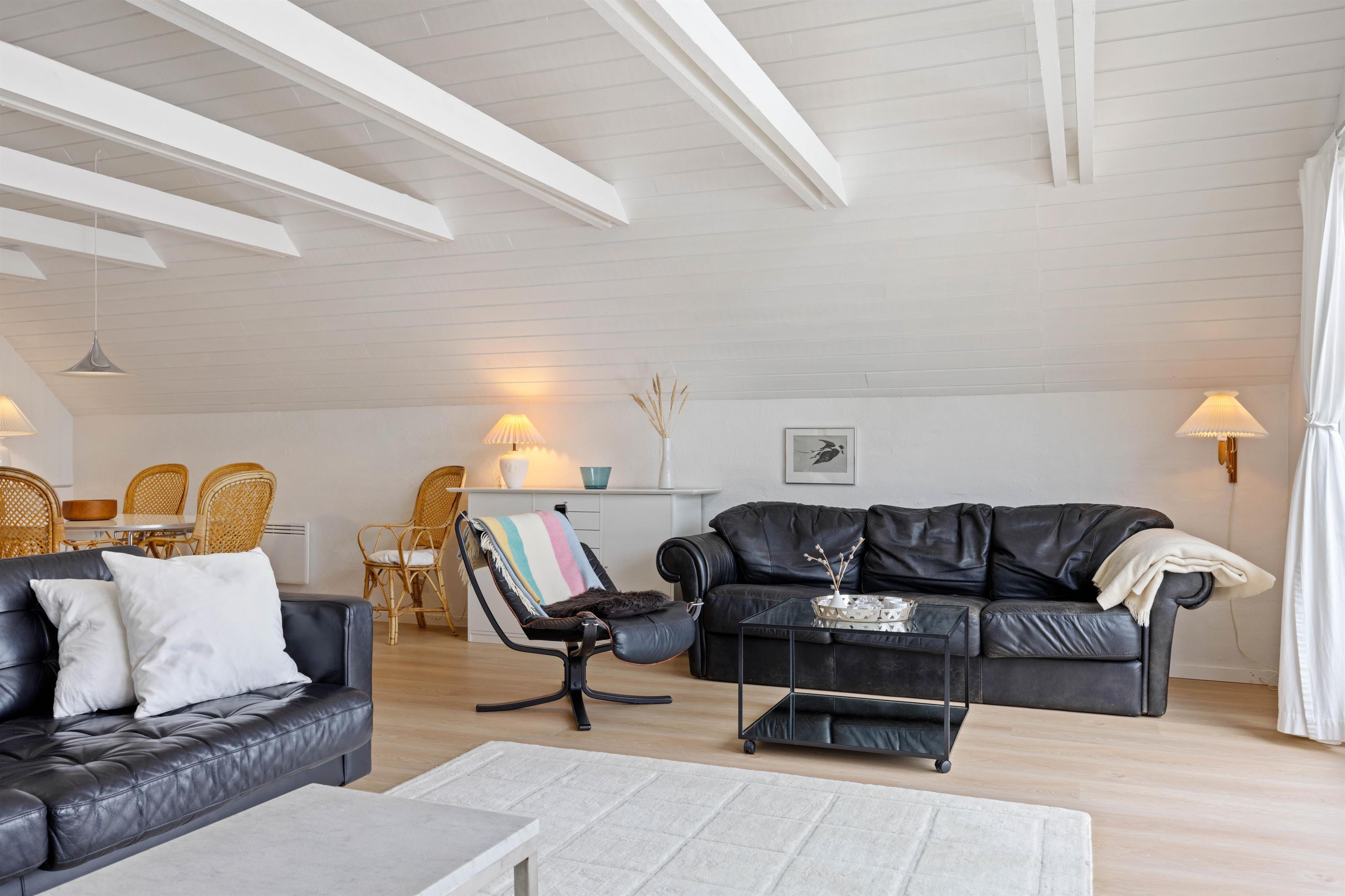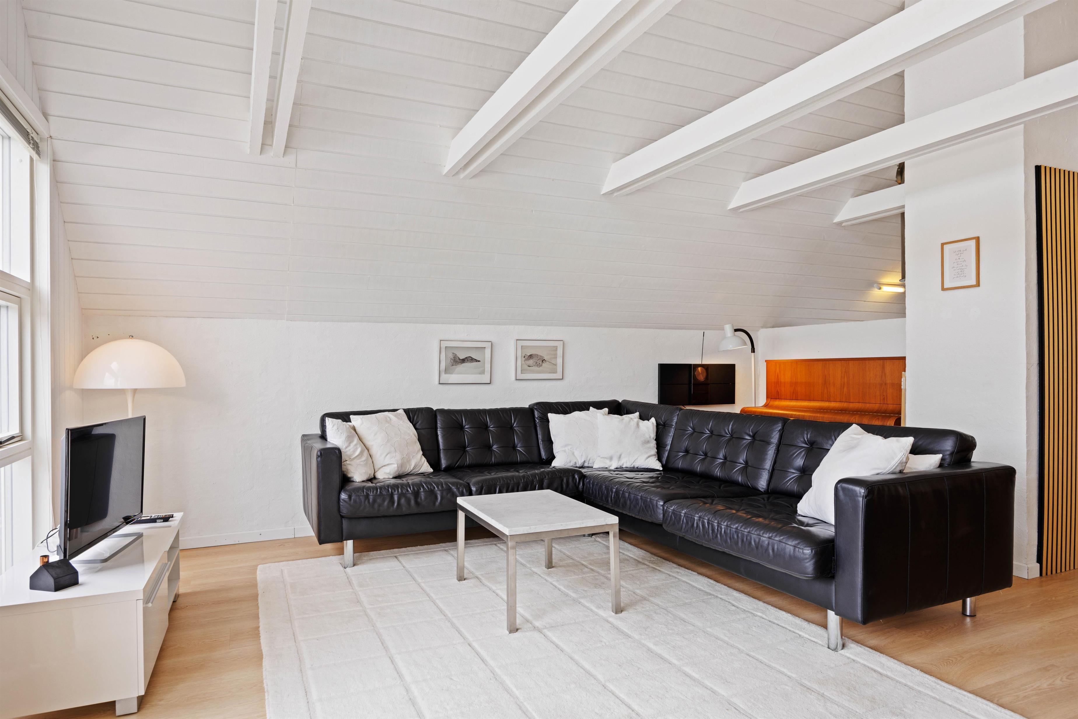 Indretningen gennem hele sommerhuset er lyst og indbydende med et yderst stilfuldt præg. I stuen er der store vinduespartier, der giver et fantastisk lysindfald. Sommerhusets hjerte er det store alrum, hvor loft til kip og den gode indretning tilsammen skaber en hyggelig atmosfære. Det er her hele familien samles og kan nyde kvalitetstid over et spil brætspil.