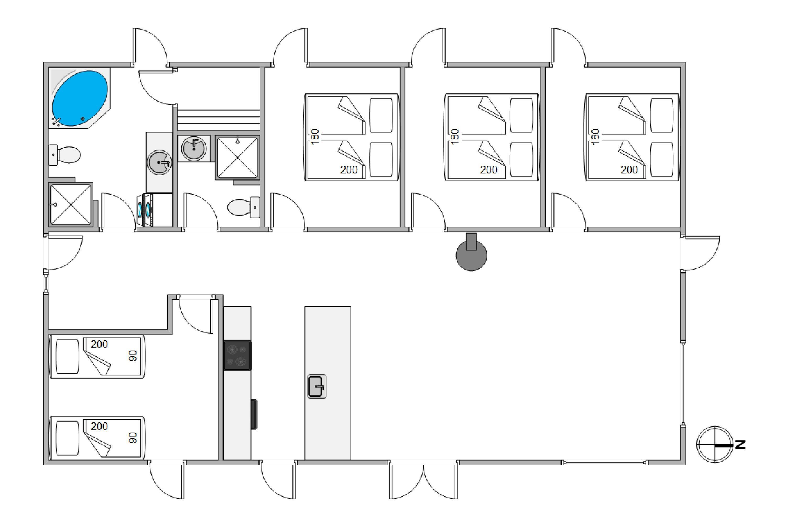 Et fantastisk dejligt feriehus opført i de bedste materialer. For jeres velbehag og komfort er smagfuldt og moderne indrettet. Dette går igen i alle rum, og i huset finder I fire rigtig dejlige og lyse soveværelser, alle med dobbeltsenge og gode skabsforhold. To dejlige badeværelser med gulvvarme og bruser, sikrer at der ikke er kø til toilettet og bruseren om morgenen. I det største af badeværelse kan I endda forkæle jer selv med noget hjemmewellness i form af en sauna og et spabad.
