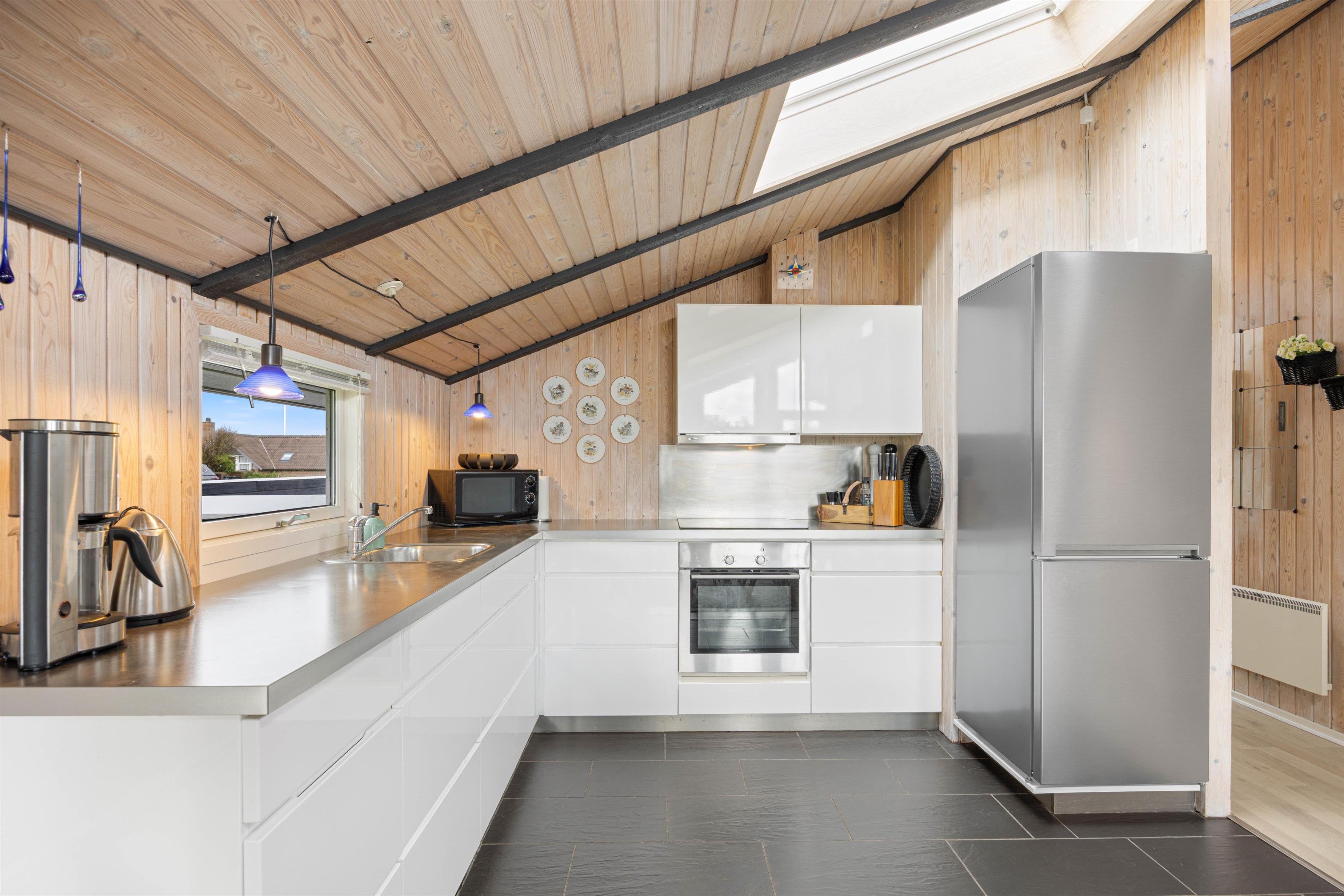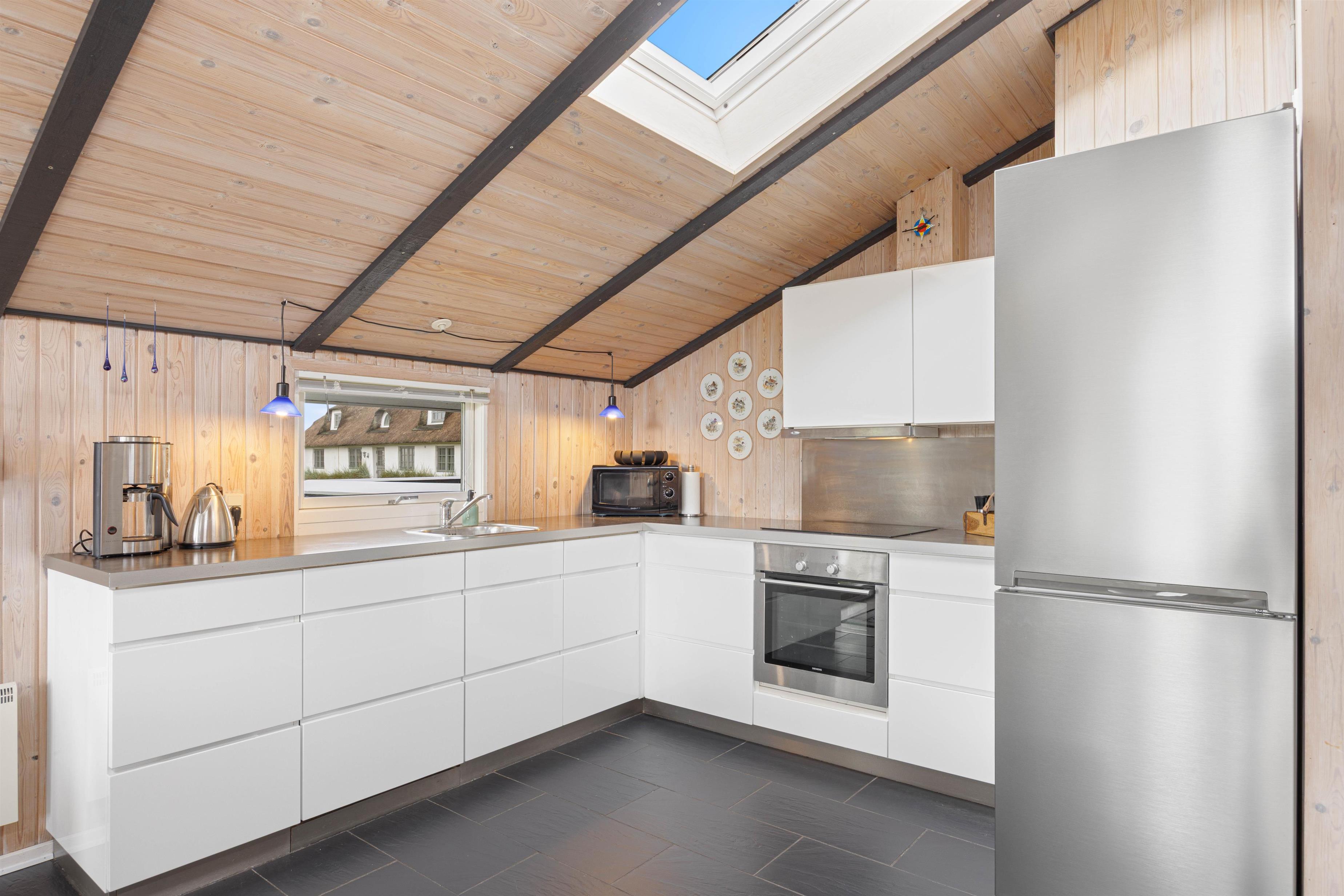 Køkkenet er også nyt og er rigtig flot indrettet med god skabsplads, fryser på 70 l, mikroovn og opvaskemaskine. Derfor kan fritiskokken for alvor gå i gang med en lækker middag, og I kan nemt holde fritidskokken ved selskab. Stuen ligger nemlig i umiddelbar forlængelse af køkkenet og her er loft til kip med små ovenlysvinduer, hvilket giver et godt lysindfald. I stuen er der brændeovn hvilket er med til at skrue endnu et nøk op for hyggen. Huset er fibernet, så I er sikret en hurtig og stabil internetsforbindelse og med fladskærms tv og DVD-afspiller er I også sikret noget underholdning.