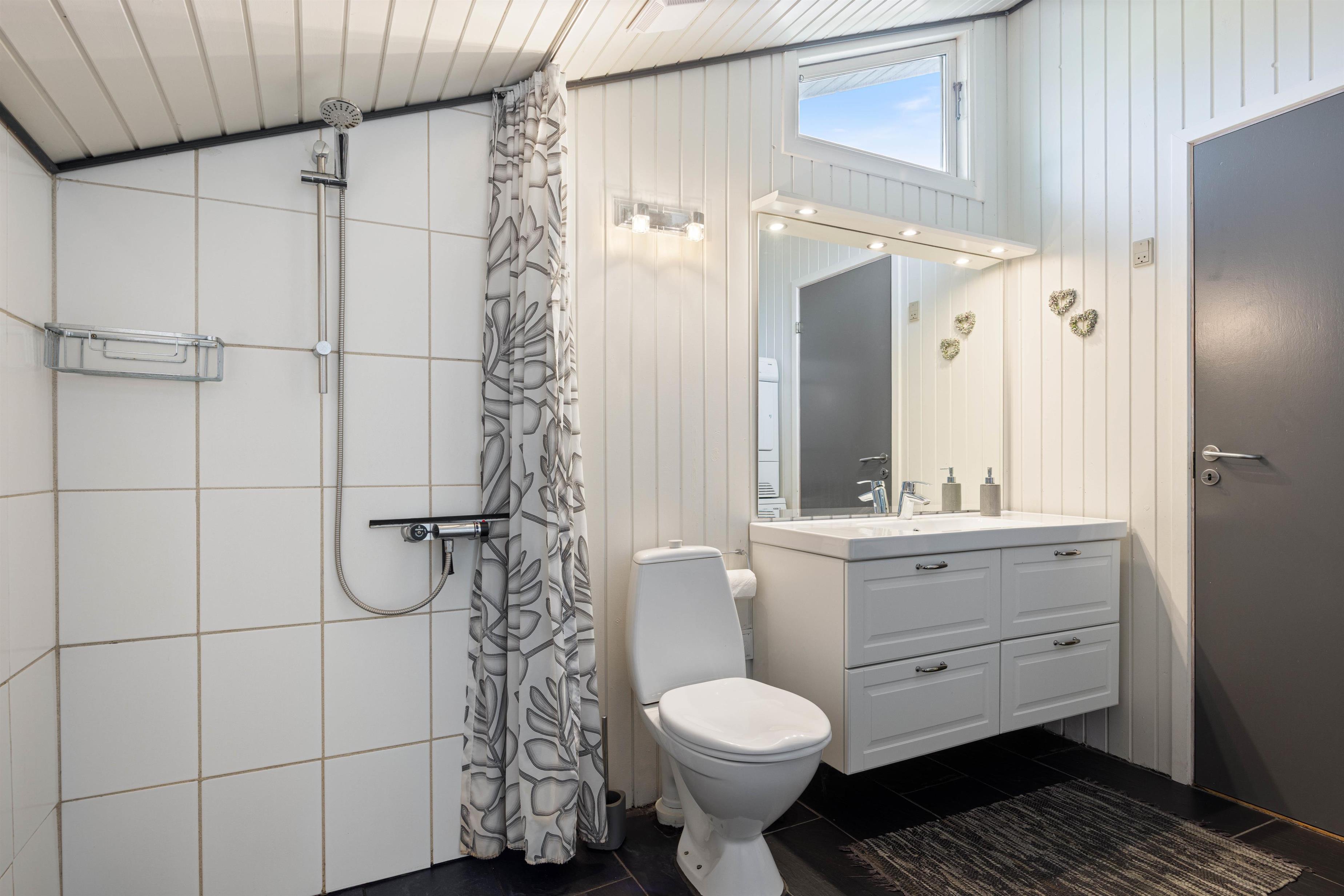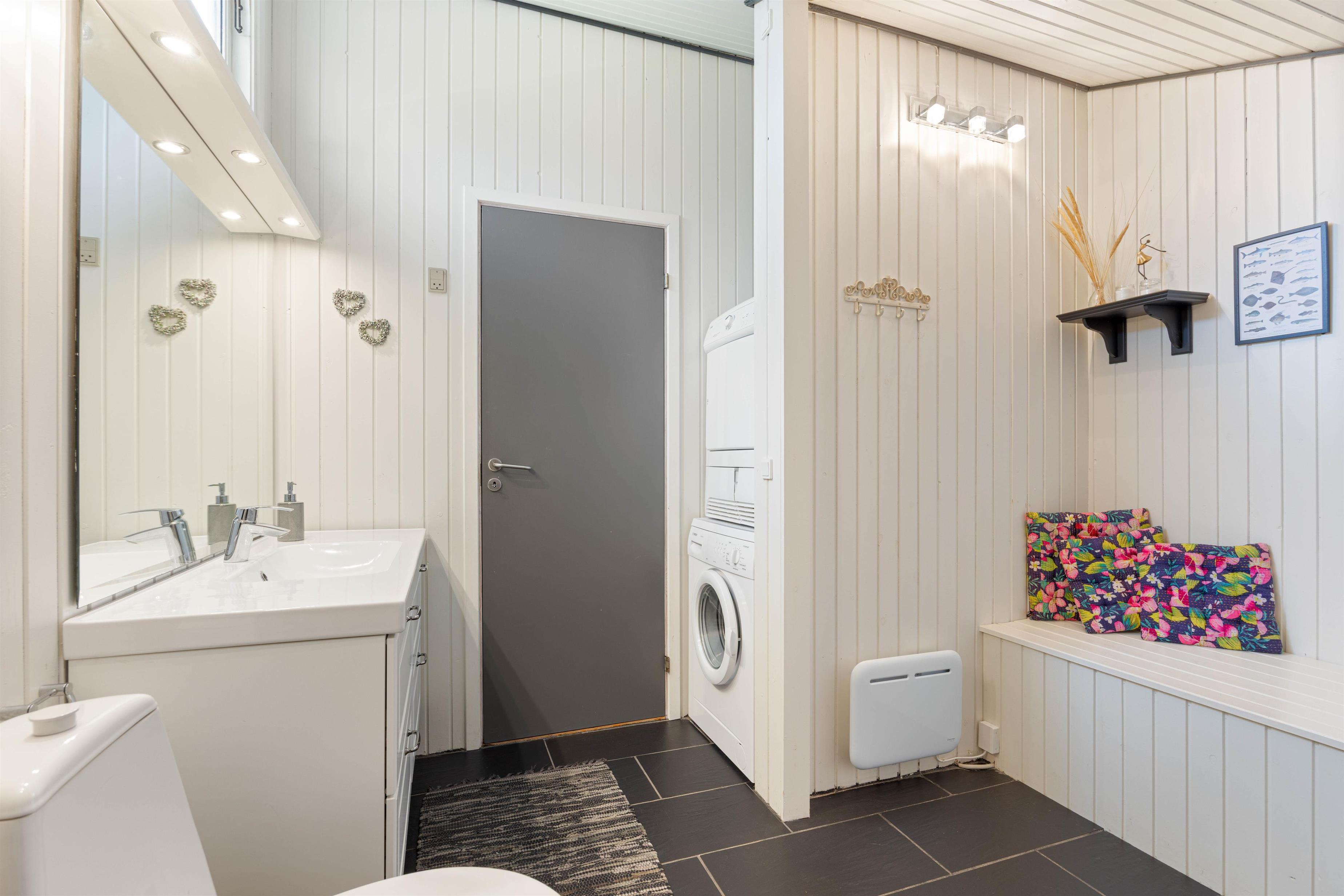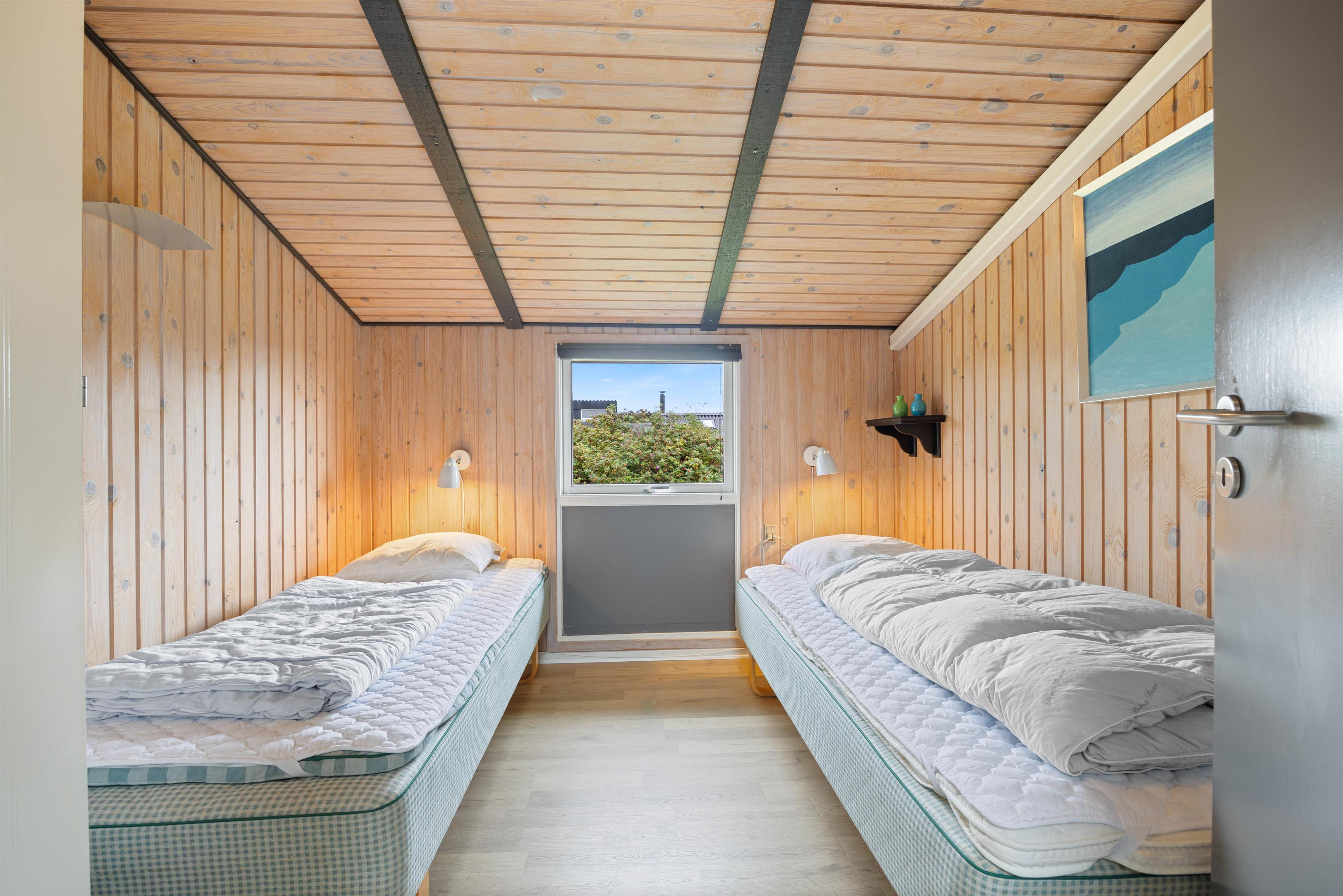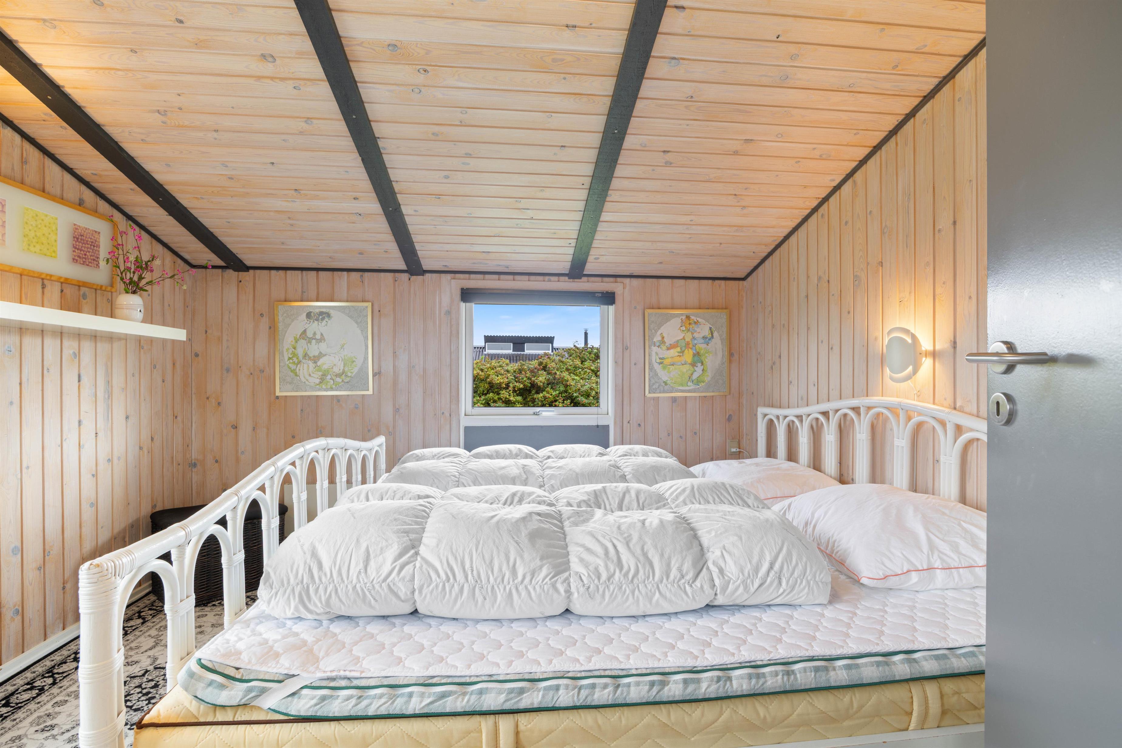 Dette velholdte sommerhus på 97 m2 har plads til seks personer, dog har huset fire værelser - to med dobbeltsenge og to værelser med to enkeltsenge, så er god plads til at I kan fordele jer og få jeres eget "safe space". Værelserne er hyggelige og fremstår lyse og indbydende. Badeværelset, der er nyrenoveret og malet helt i hvidt, har også både vaskemaskine og tørretumbler. Dette gør jeres pakning til ferien markant nemmere, og er især ideelt ved længere ophold. Der er naturligvis også gulvvarme en god bruseniche.