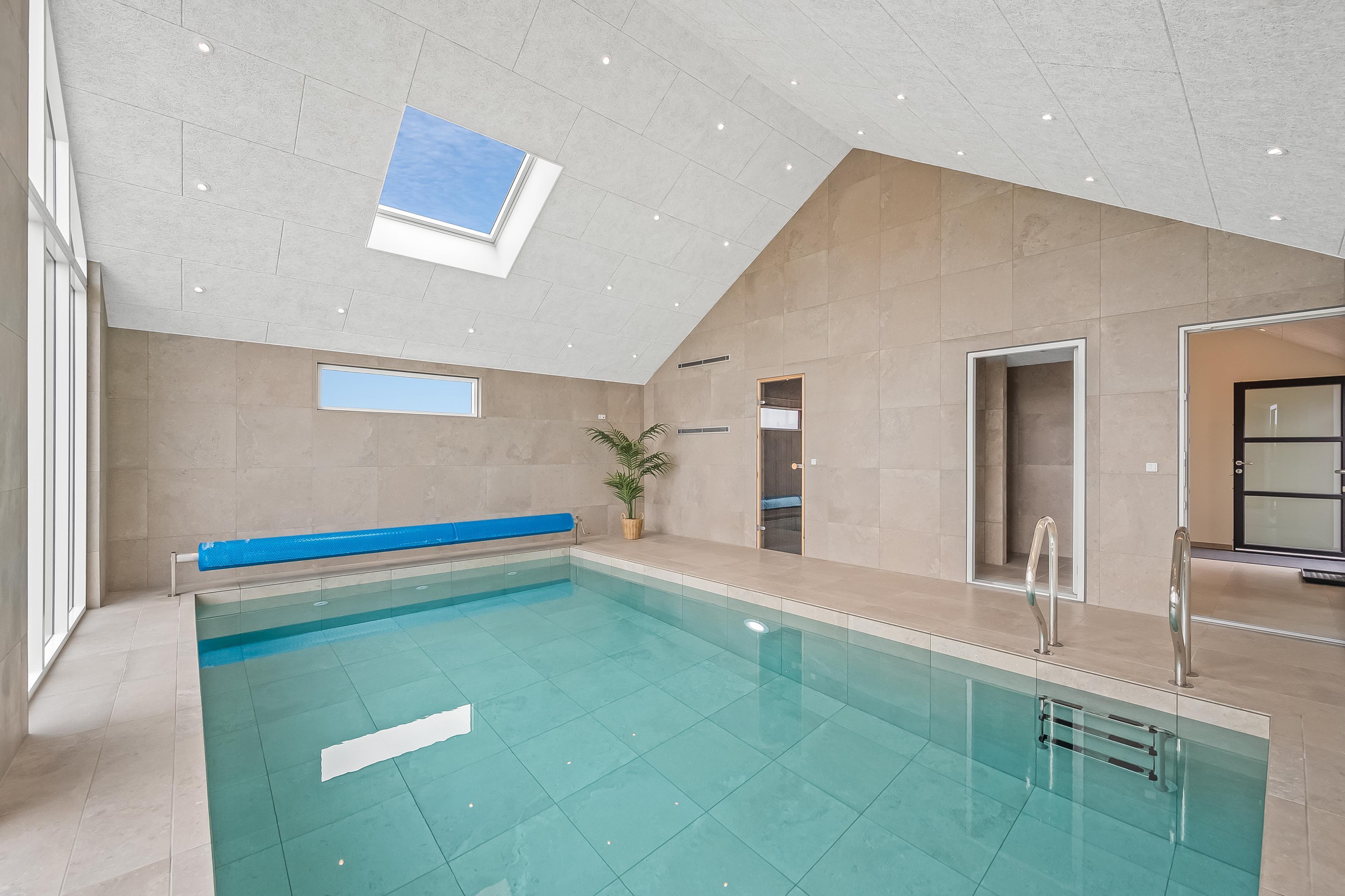 Det imponerende poolområde med sauna er hjertet af huset og indbyder til timevis af sjov og afslapning. De 3 lækre badeværelser sikrer, at der er rigeligt med plads til alle, og den energibesparende luft-til-vand varmepumpe sørger for behagelige temperaturer i hele huset.