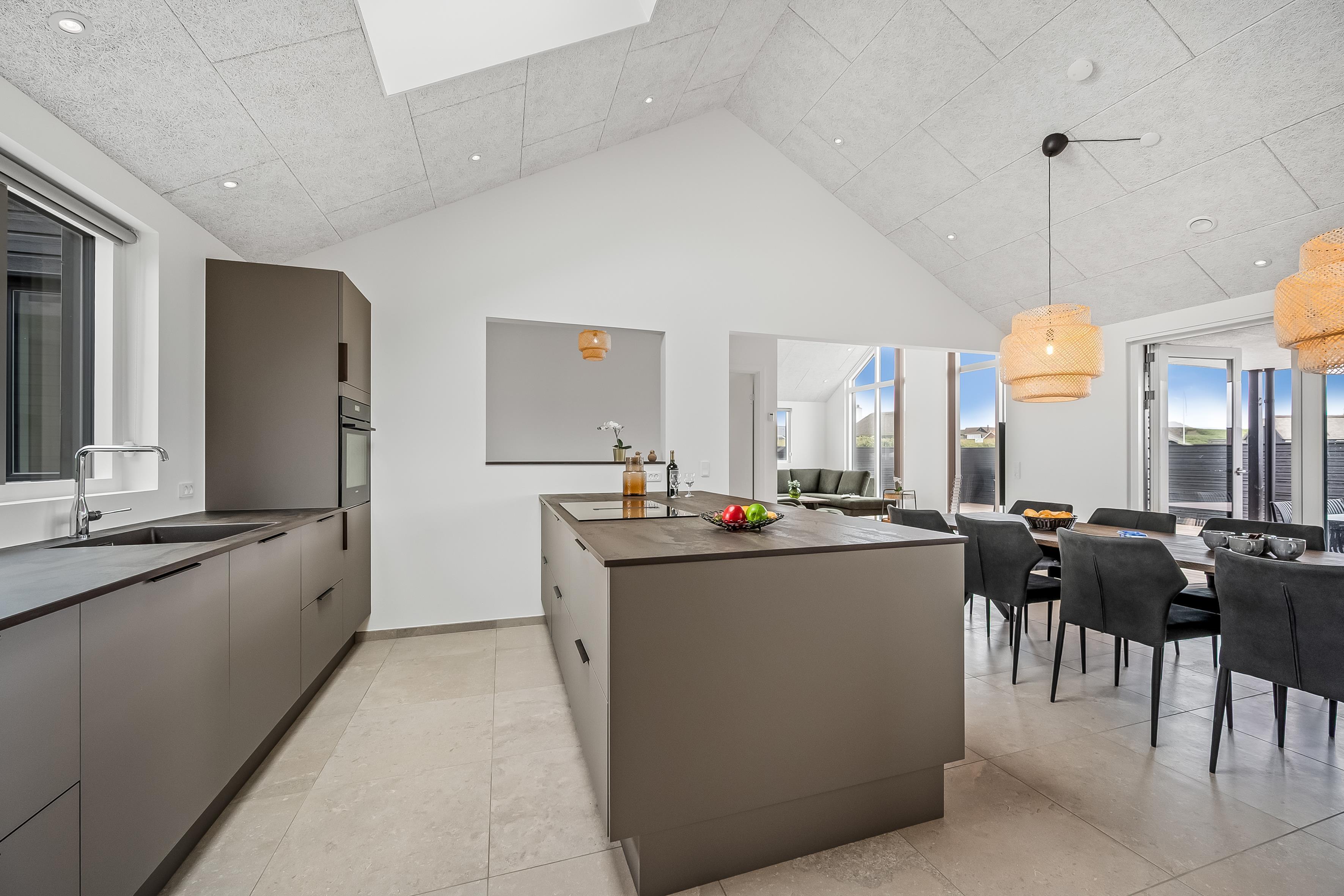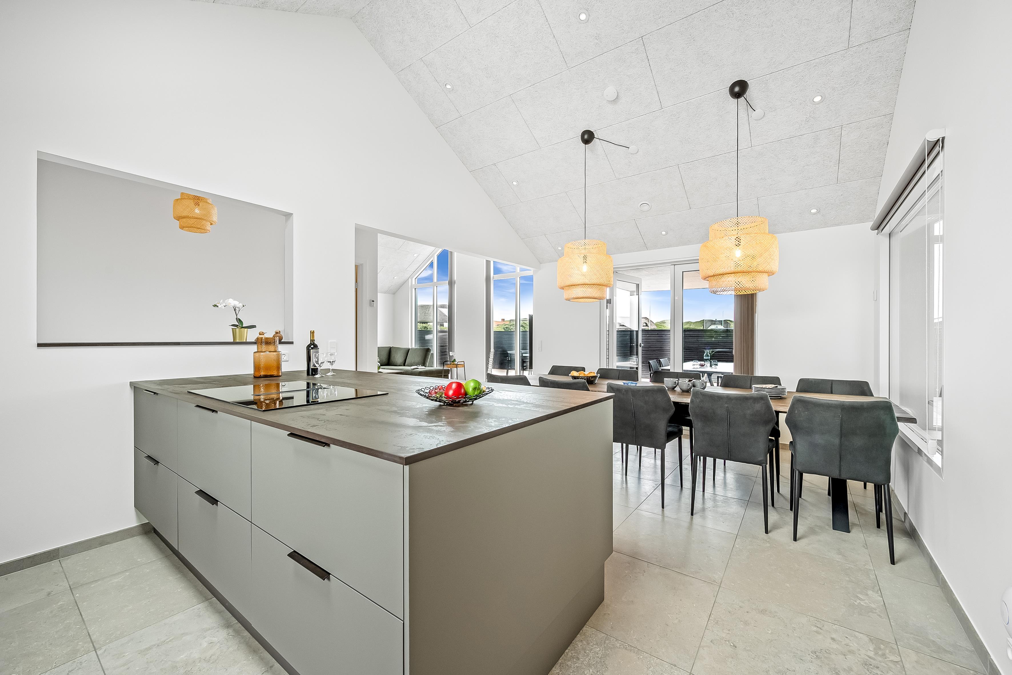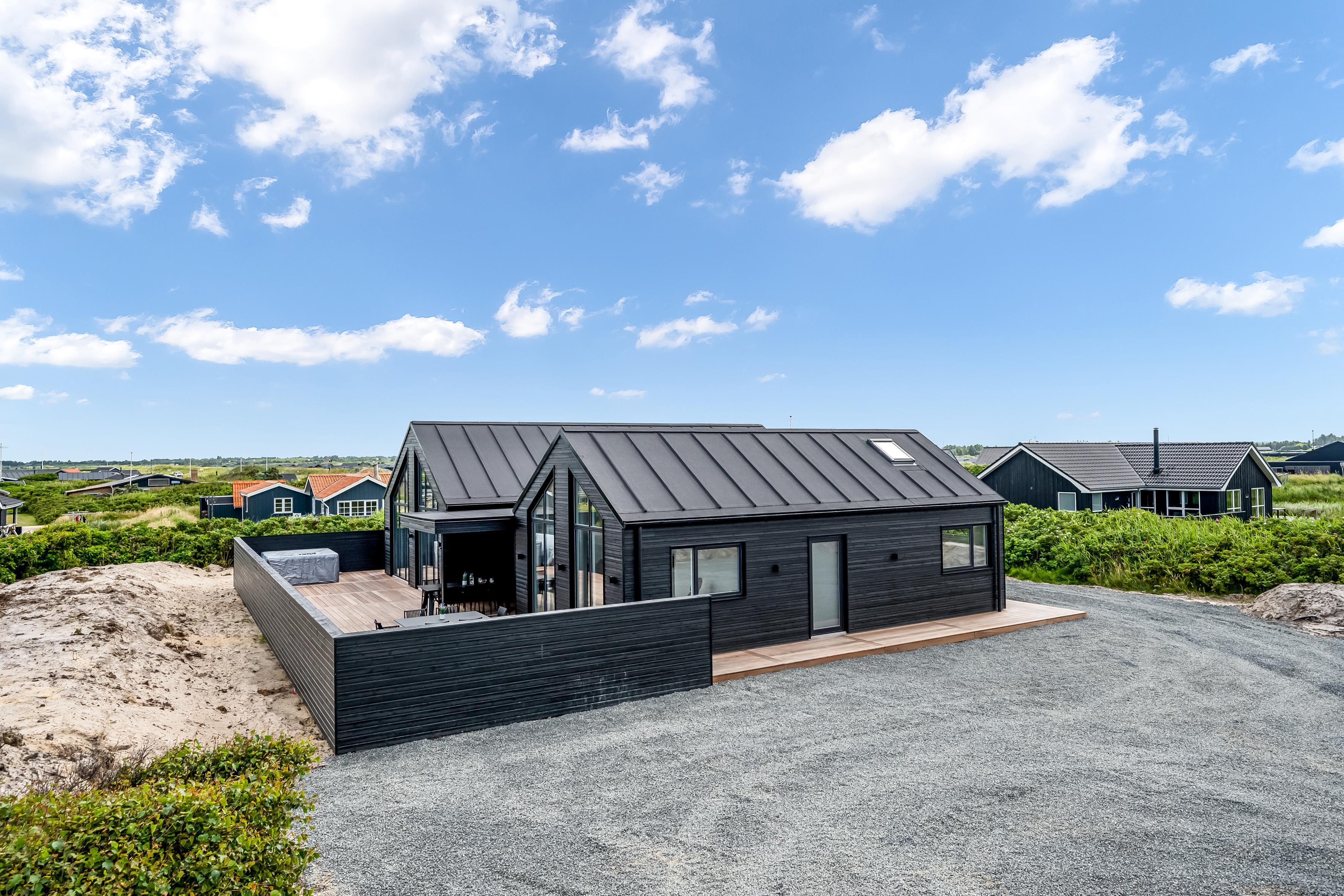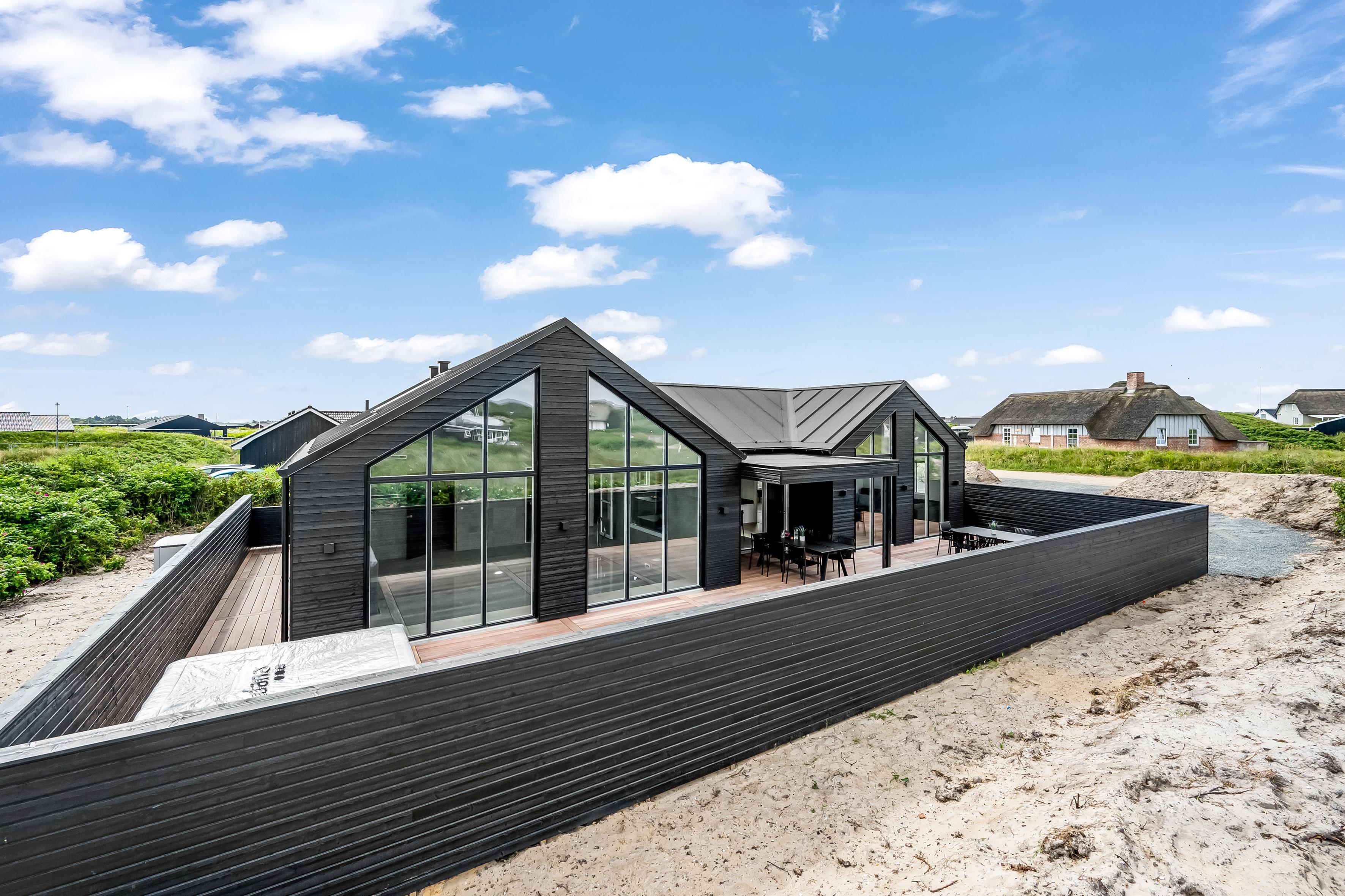 Bygget i 2024 og beliggende kun 300 meter fra det majestætiske Vesterhav og 500 meter fra centrum af Søndervig, tilbyder dette 180 kvadratmeter store poolhus den perfekte kombination af nærhed til naturen og bekvemmelighederne i en livlig ferieby.