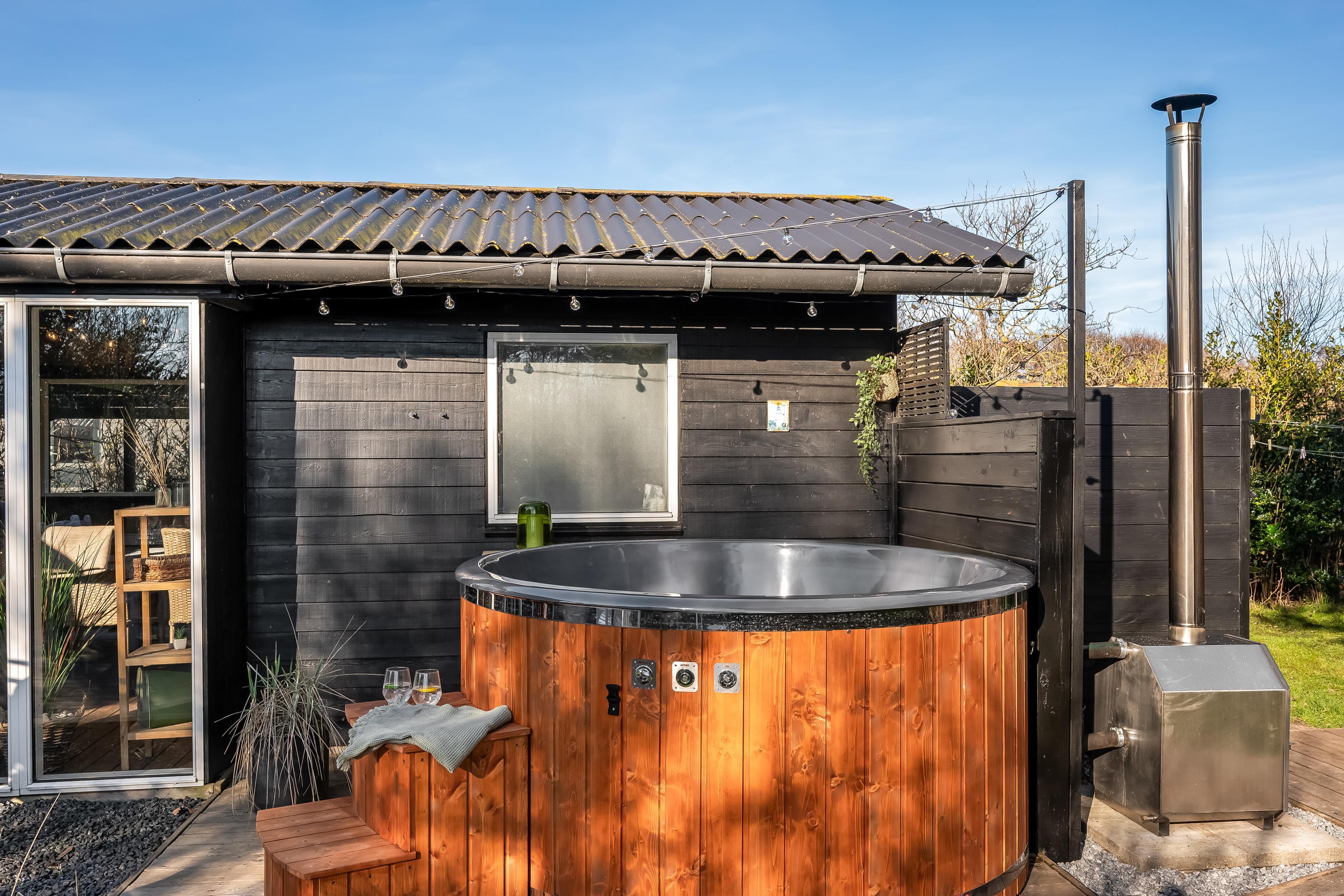 For dem, der ønsker at forkæle sig selv, er der et vildmarksbad med plads til op til 7 personer, som giver en unik mulighed for at slappe af under stjernerne. Skurets tilstedeværelse giver også plads til opbevaring af cykler eller strandudstyr. Husdyr er tilladt, så du kan tage din firbenede ven med på ferie.
