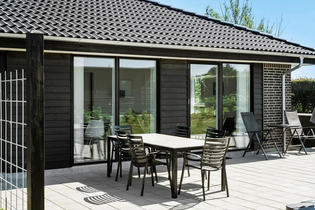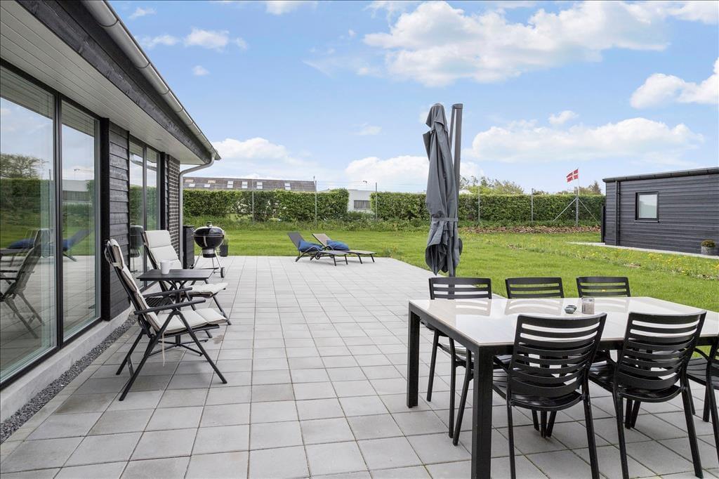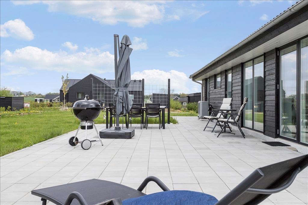 Der er flere fine havemøbler, positionsstole og liggestol, hvor i opholdet kan nydes sammen med familien. På husets kul grill kan aftensmaden tilberedes i mens der hygges og snakkes om dagens og morgenens oplevelser.