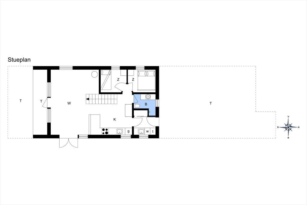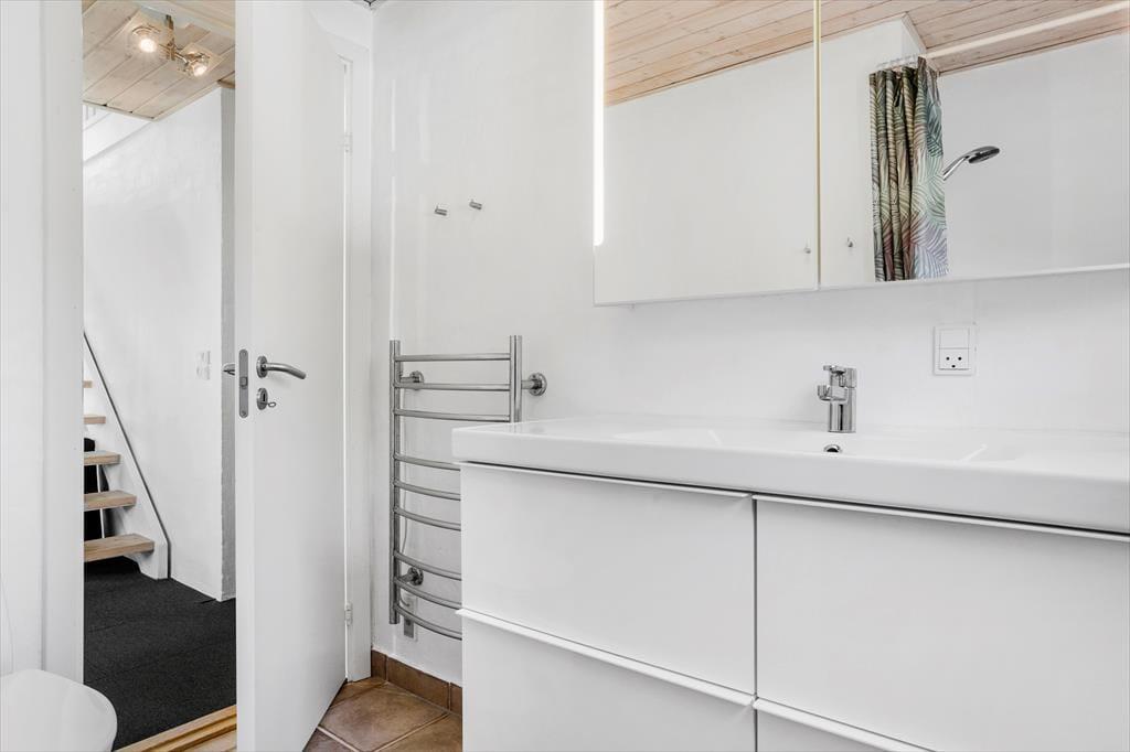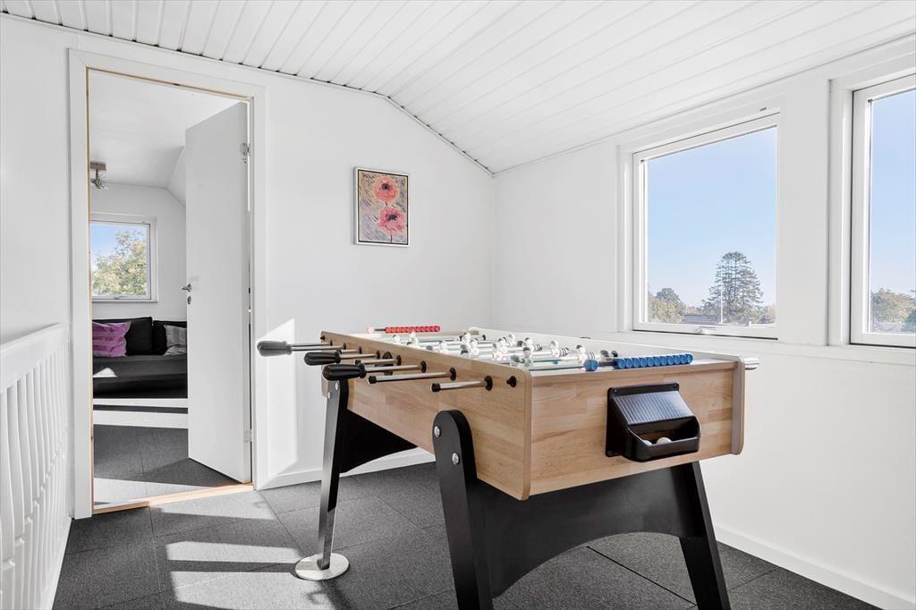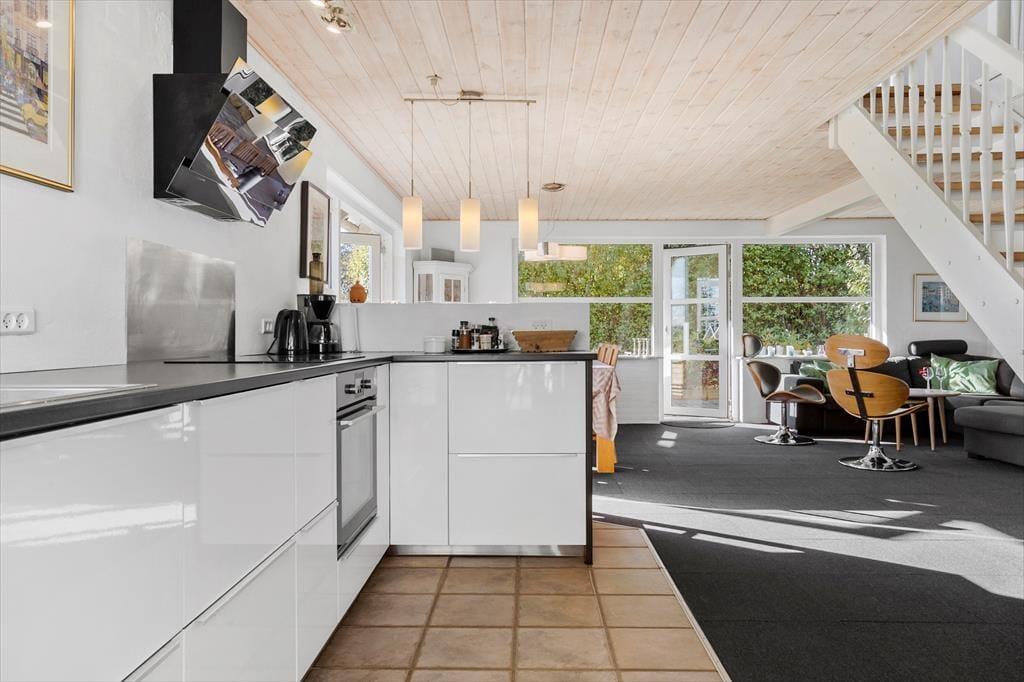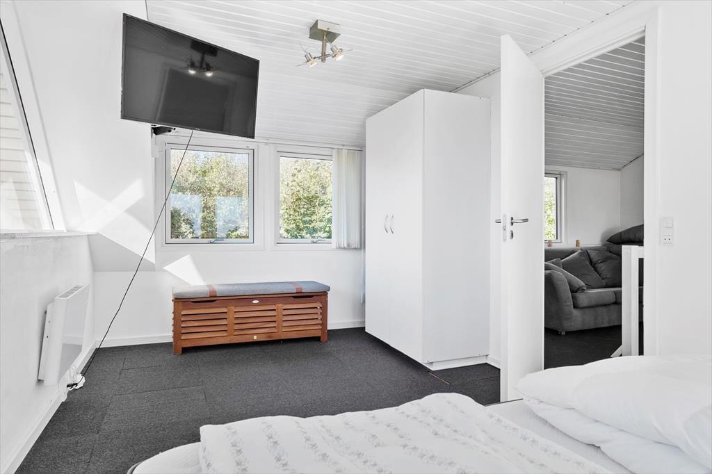 Dette sommerhus er nyrenoveret og i to plan. Rummene er lyse og rummelige på en hyggelig måde. Husets stueetage består af en stor stue i åben forbindelse til køkkenet, to værelser med henholdsvis en dobbeltseng og køjeseng, et badeværelse med brus og et bryggers. I bryggerset er der både vaskemaskine og tørretumbler. På husets førstesal er der to værelser, det ene er med dobbeltseng og det andet har to dobbelt sovesofaer. Fra soveværelset med dobbeltseng er der udgang til svalegang hvorfra der er havudsigt. Huset er særdeles børnevenligt med to børnesenge og en barnestol.