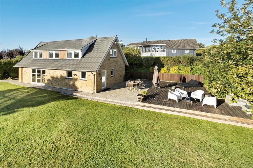 Sommerhuset har to skønne terrasser, hvor den ene er delvist overdækket, hertil er der både grill og liggestole. Til huset hører også en stor have, hvor der er mulighed for boldspil og andre udendørs aktiviteter. Haven er særdeles børnevenlig med en stor plæne med plads til leg.