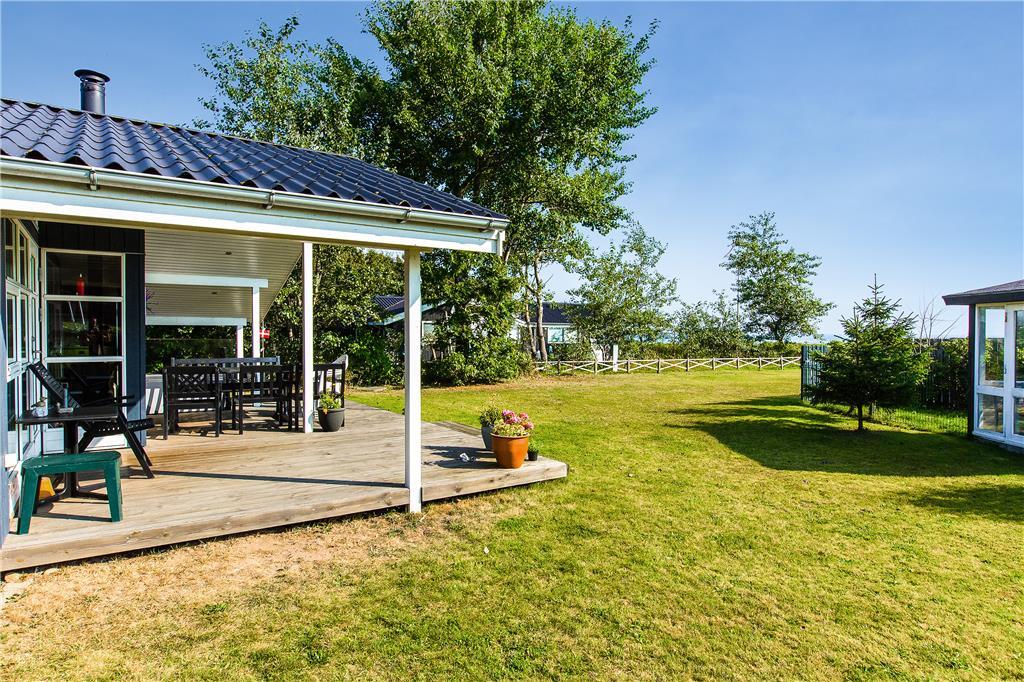 Huset har to skønne overdækkede terrasser, med havemøbler, liggestole og grill. Herudover er der en stor have. Fra terrassen kan man sidde og nyde udsigten over vandet. I haven er der to hundegårde, så tøv ikke med at tage Jeres firbenede ven med på ferie.