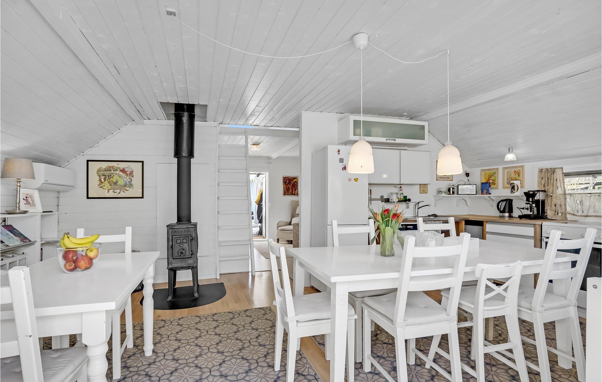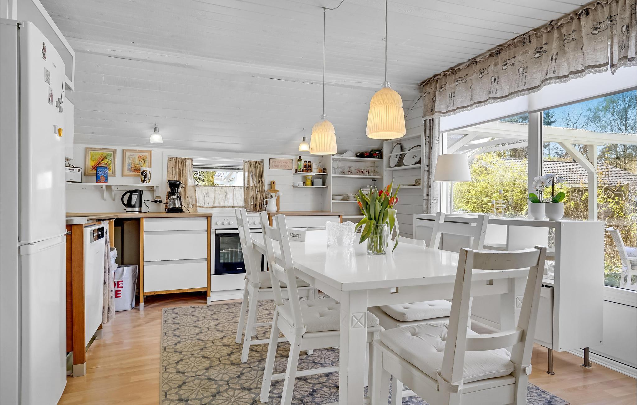 Her får I en dejlig base til en rolig og afslappende ferie med mange badeture. Huset har plads til en lille familie eller et par plus op til to hunde. Huset er utroligt lyst og elegant indrettet. I kan slappe dejligt af i TV-stuen og tilberede lækre feriemåltider i det veludstyrede køkken, som efterfølgende kan nydes ved spisebordet eller tages med ud på terrassen. Her kan I også sidde og sole jer eller læse en god bog gennem dagen. I finder også en skøn, overdækket soveplads herude - perfekt til en dejlig lur i den friske luft. I den private have kan børn og hunde lege.