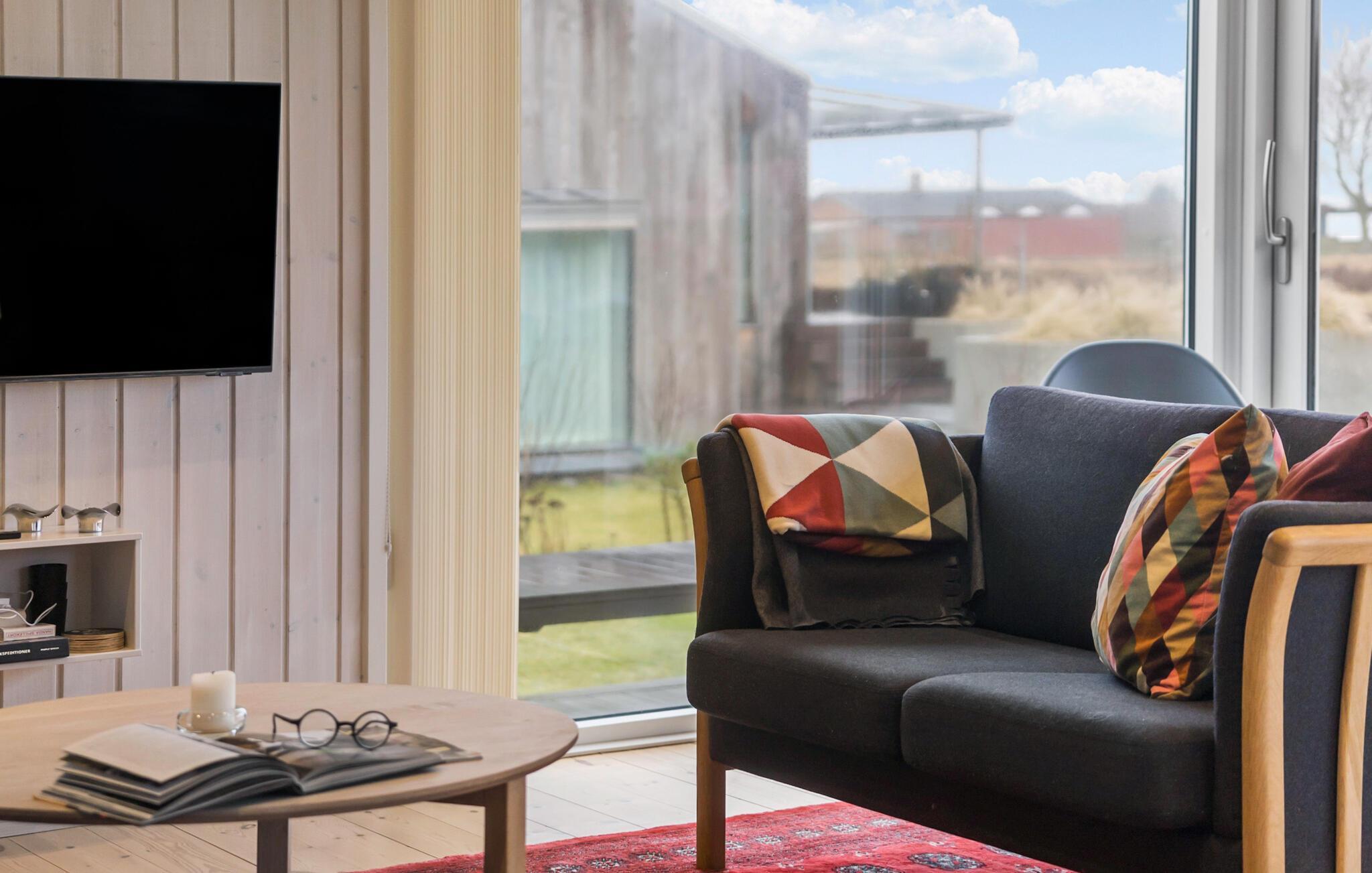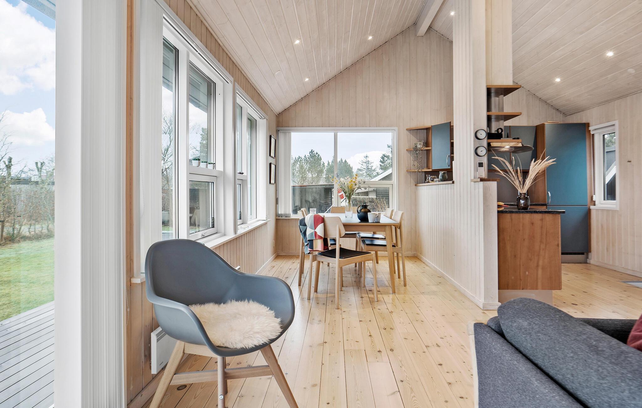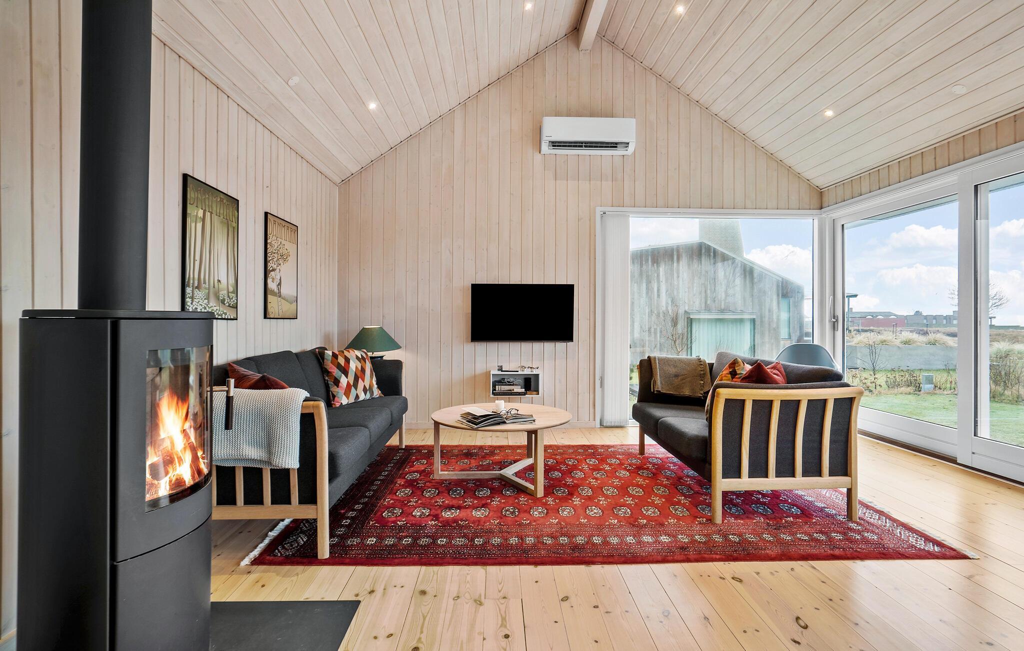 Tag familien med til Saksild, hvor der venter jer et vidunderligt ophold i dette hyggelige og indbydende træhus. Indretningen er både lys og luftig med loft til kip og træpaneler i varme farveskalaer. I det åbne opholdsrum får I et dejligt lysindfald gennem de store gulv-til-loft-vinduer, og med husets mange gode faciliteter kommer I ikke til at mangle noget her.