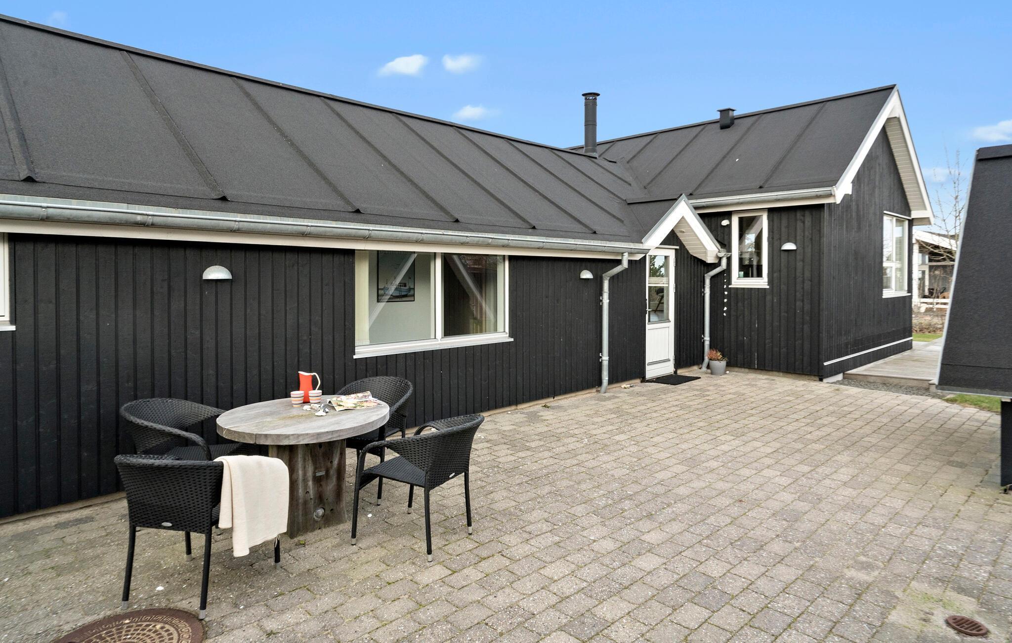 Hyggeligt træhus i Saksild med havudsigt og overdækket terrasse, perfekt til familieferie ved Kattegat.