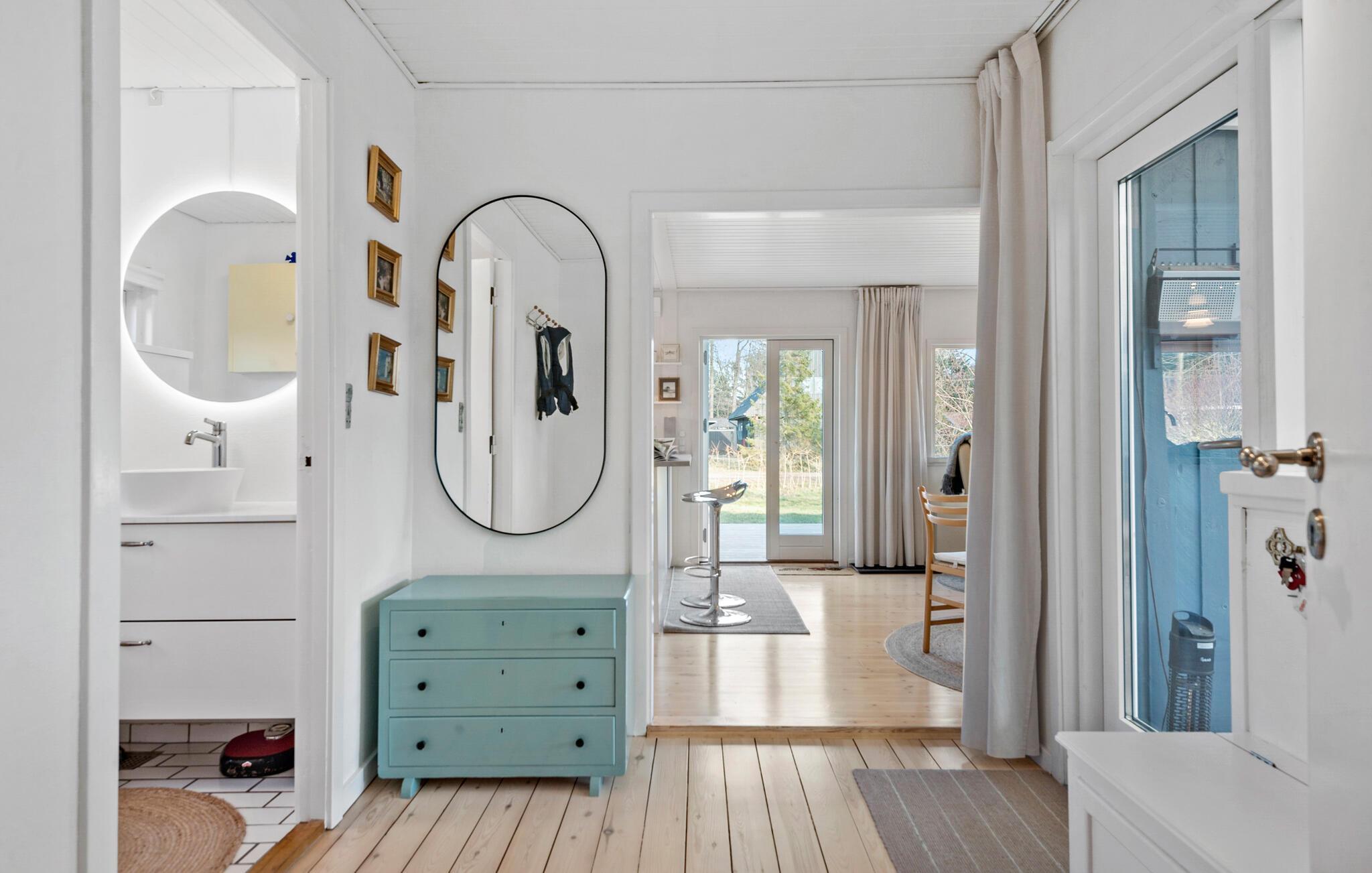 Velkommen til dette smagfulde sommerhus, hvor de store vinduespartier skaber en behagelig stemning. Her kan I glæde jer over udsigten til haven fra det lyse og moderne køkken og glæde jer til fælles måltider i den hyggelige opholdsstue. Efter en lang dag på farten er det skønt at synke ned i de komfortable møbler - slap af med en god bog i lænestolen eller tag plads i den bløde sofa og find et sjovt brætspil frem.