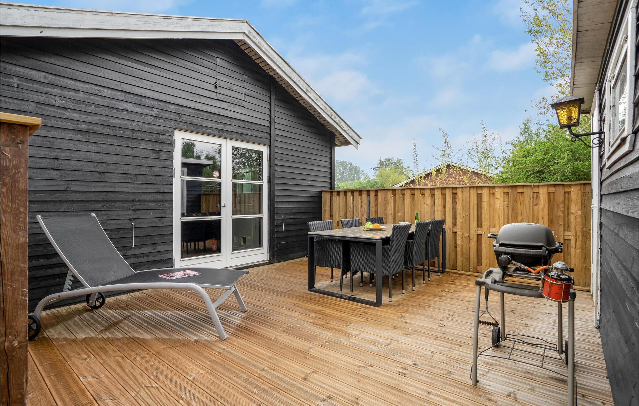 Flot sommerhus nær vandet med moderne faciliteter, terrasse og udendørs spabad.