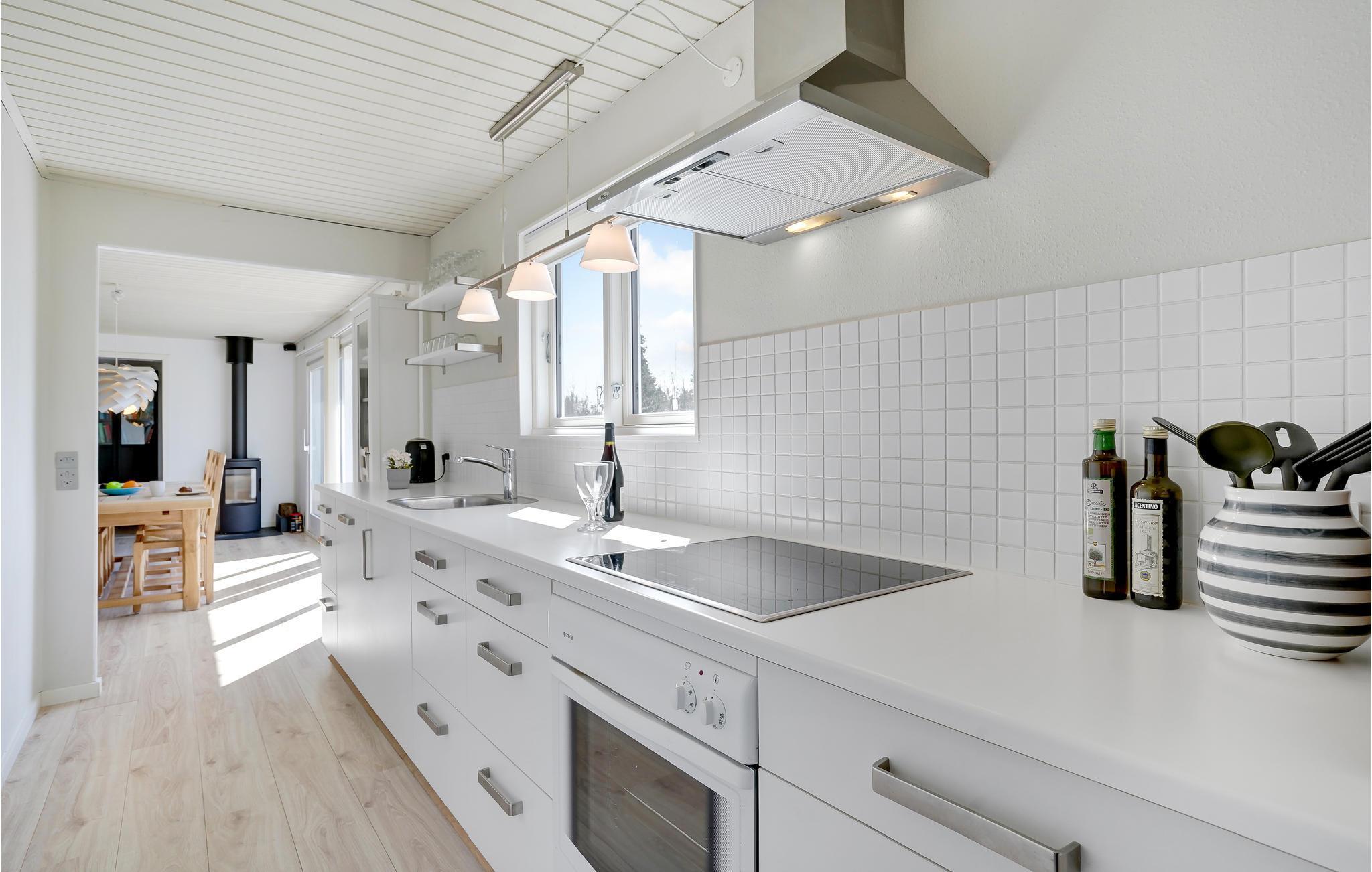 Velkommen til dette dejlige sommerhus, som tager sig indbydende ud med moderne faciliteter og en god indretning til en stor familie. Pladsen fordeler sig over tre soveværelser, et badeværelse samt stue og køkken. Fra det lange spisebord er der udsigt til haven, og i vinterhalvåret kan I nyde varmen fra brændeovnen. Det lækre køkken har gode faciliteter til at hygge sig med madlavningen.