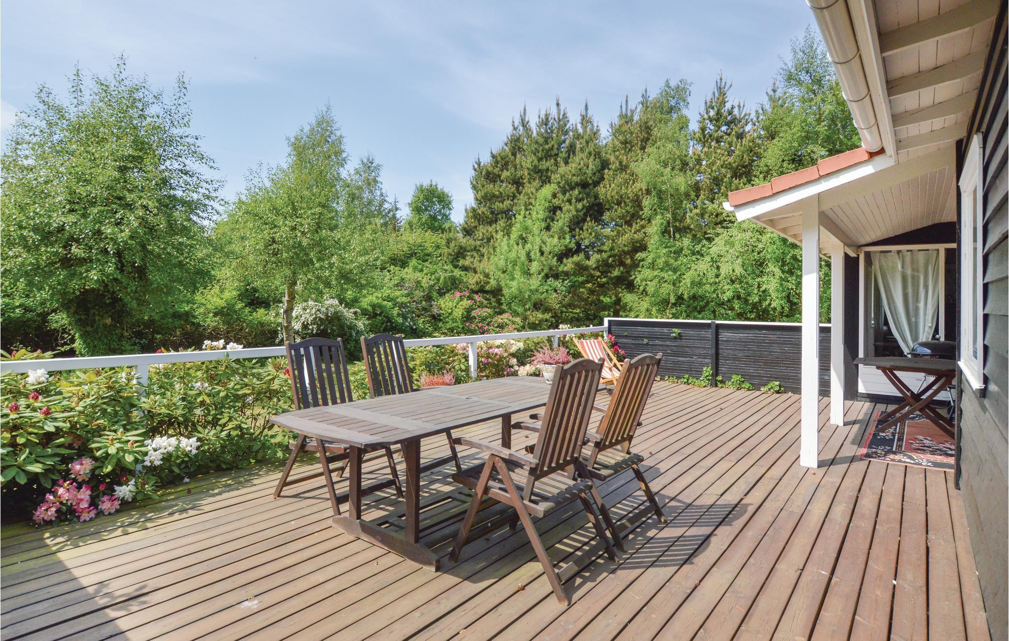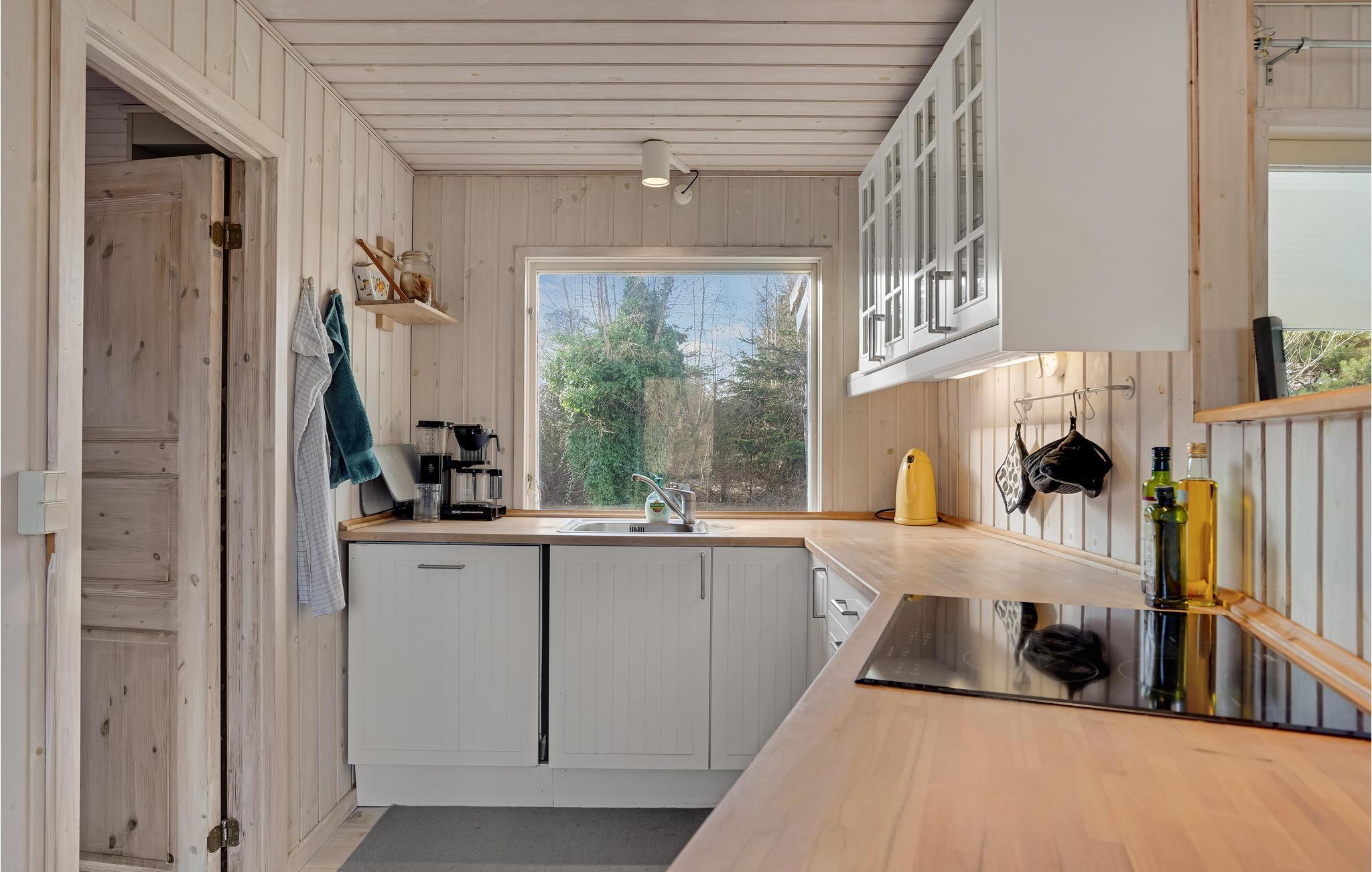 Charmerende feriehus med åbent køkken og to terrasser nær Saltbæk Vig i naturskønne omgivelser.