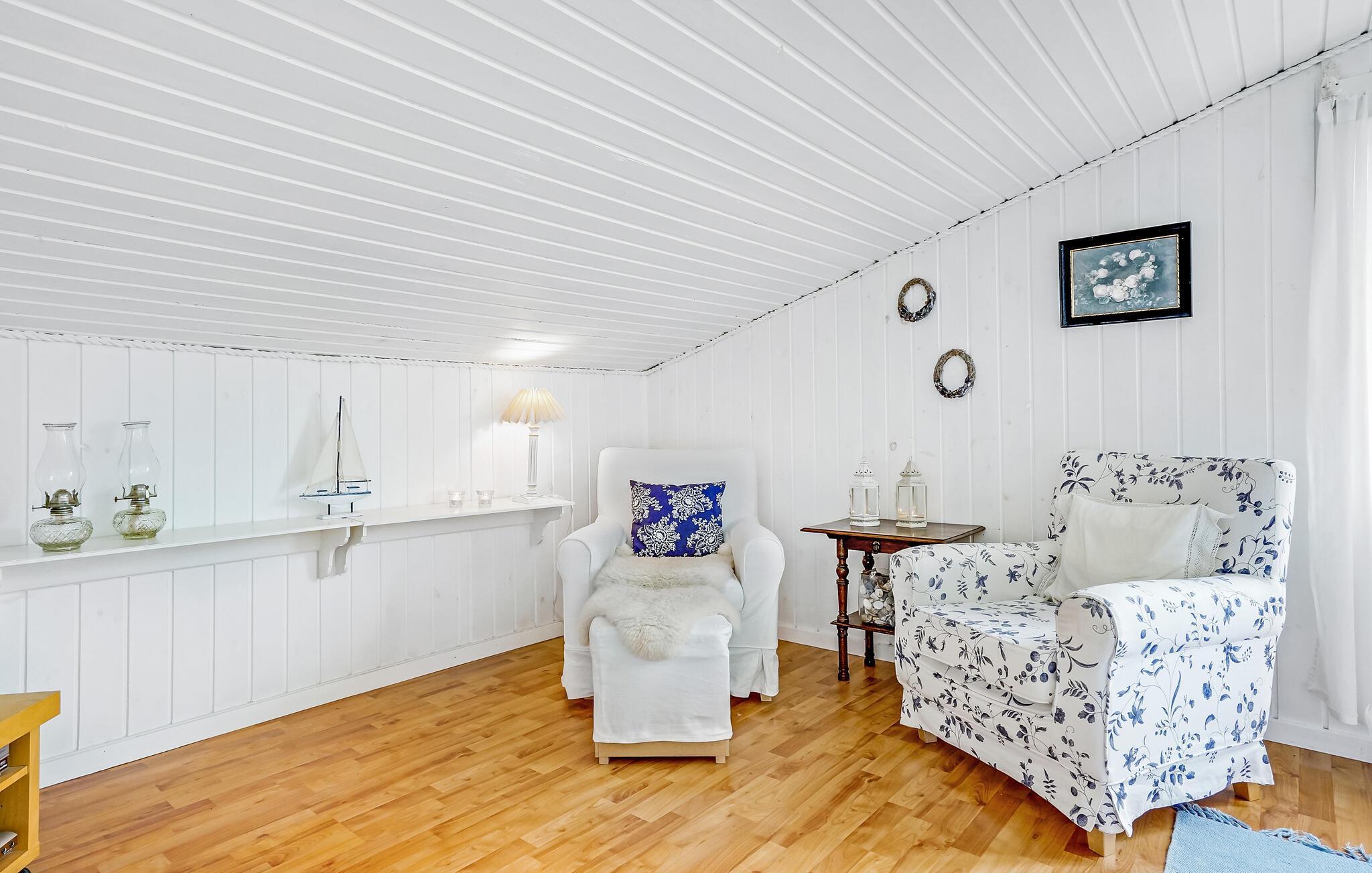 Huset er flot indrettet i moderne landstil, og der er en dejlig atmosfære overalt, hvilket sikrer den helt rette feriestemning. Det er inddelt i to soveværelser, et køkken, en stue og et badeværelse. Når dagen rinder ud, er det skønt at samles i stuen, hvor ilden buldrer i brændeovnen, mens I ser fjernsyn, drikker et glas vin eller spiller spil.