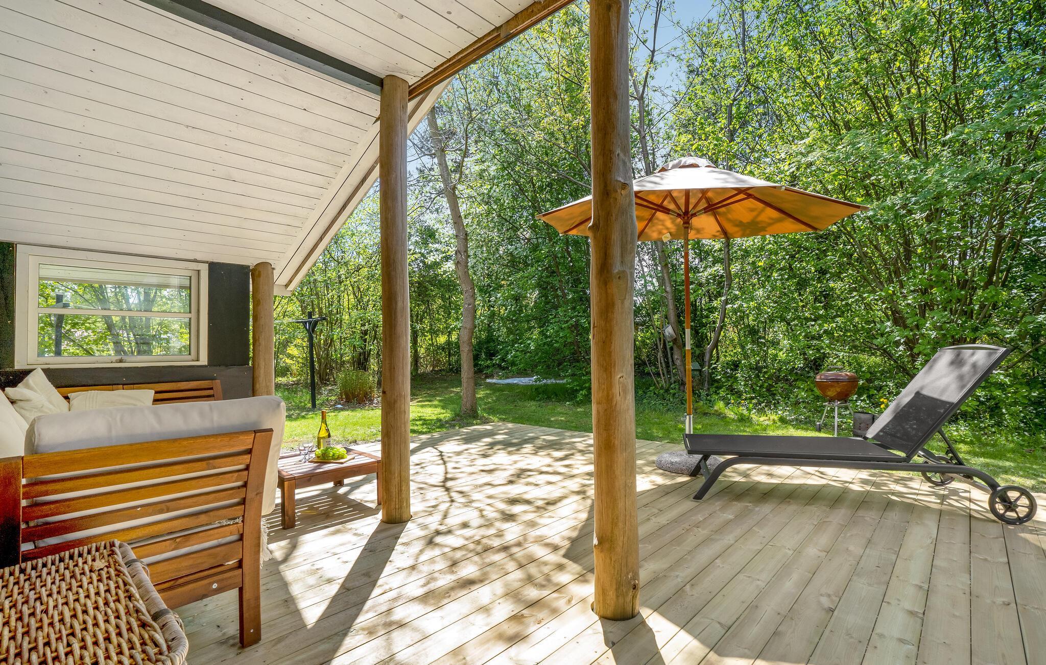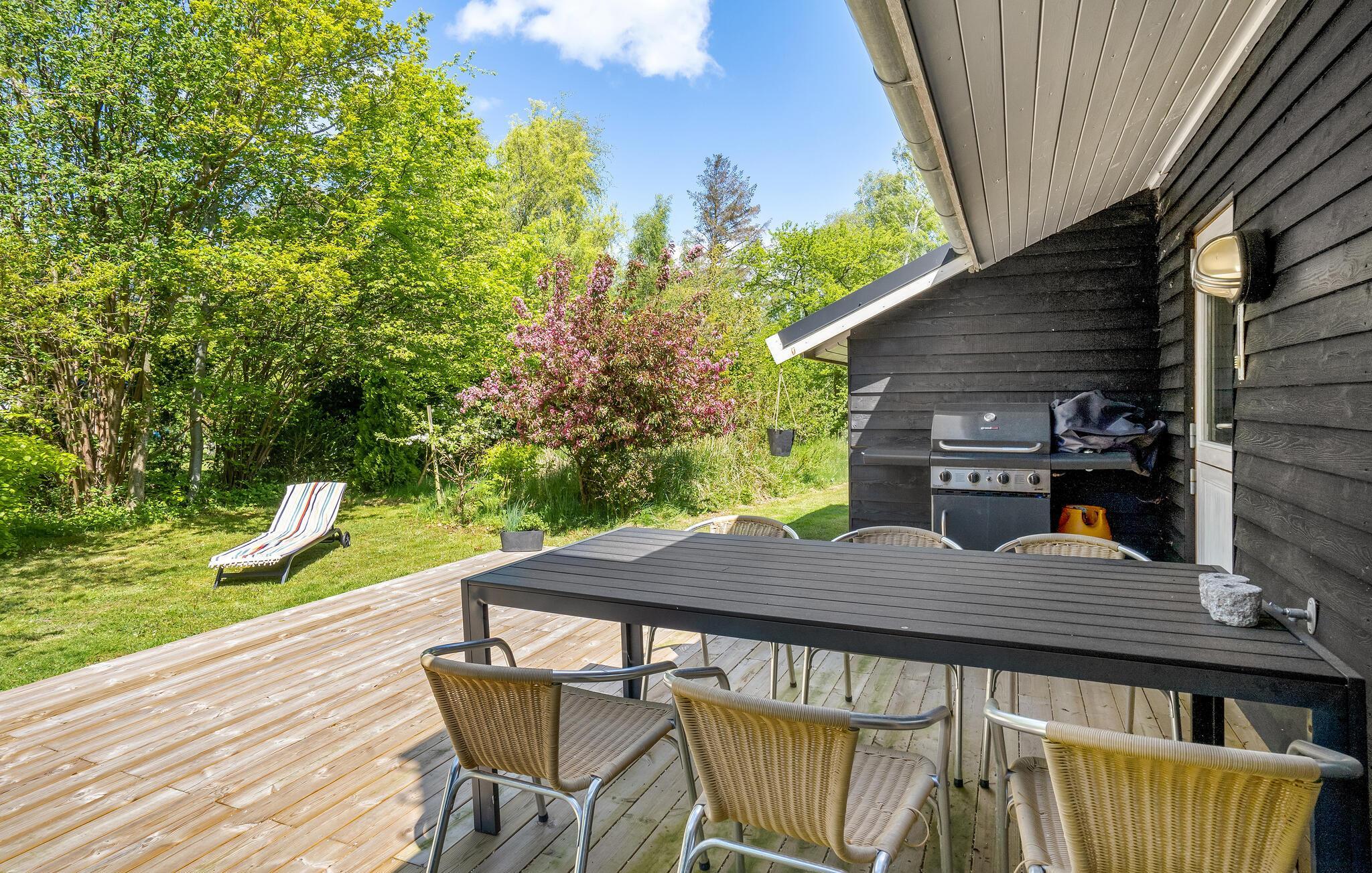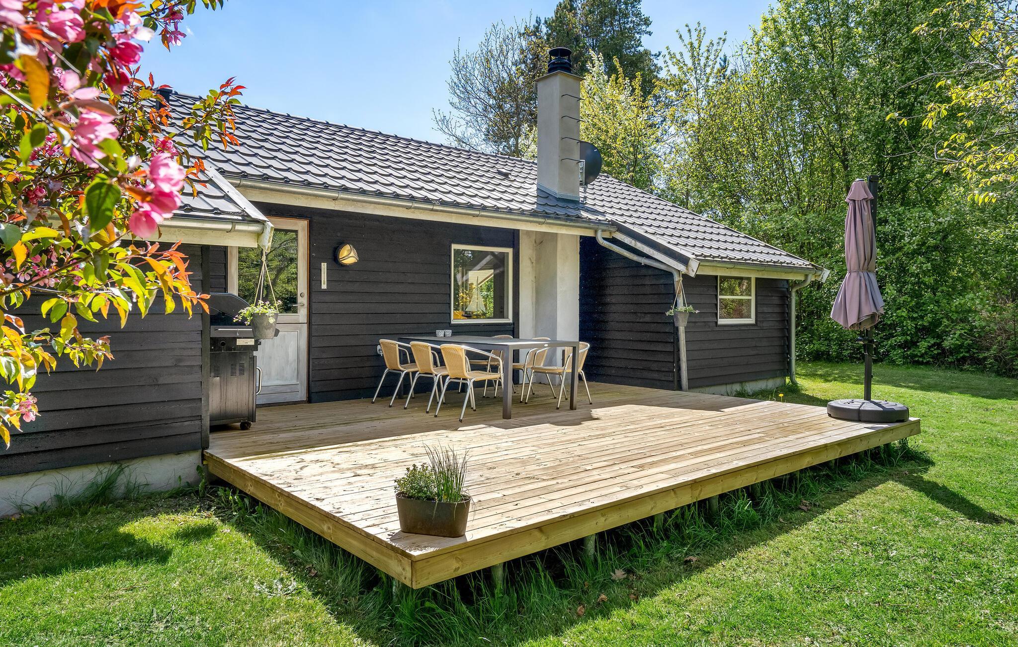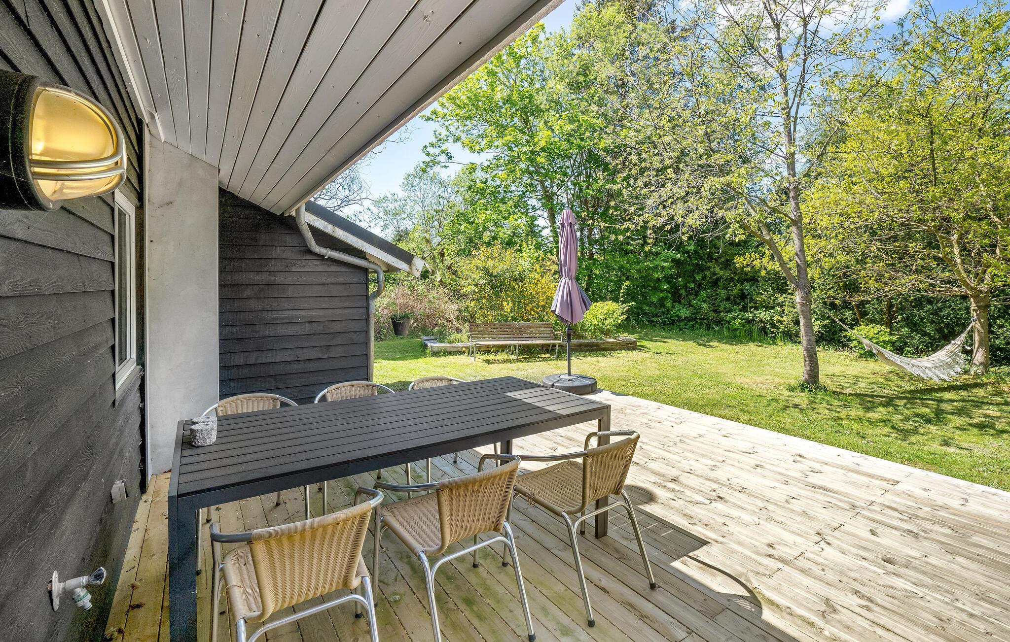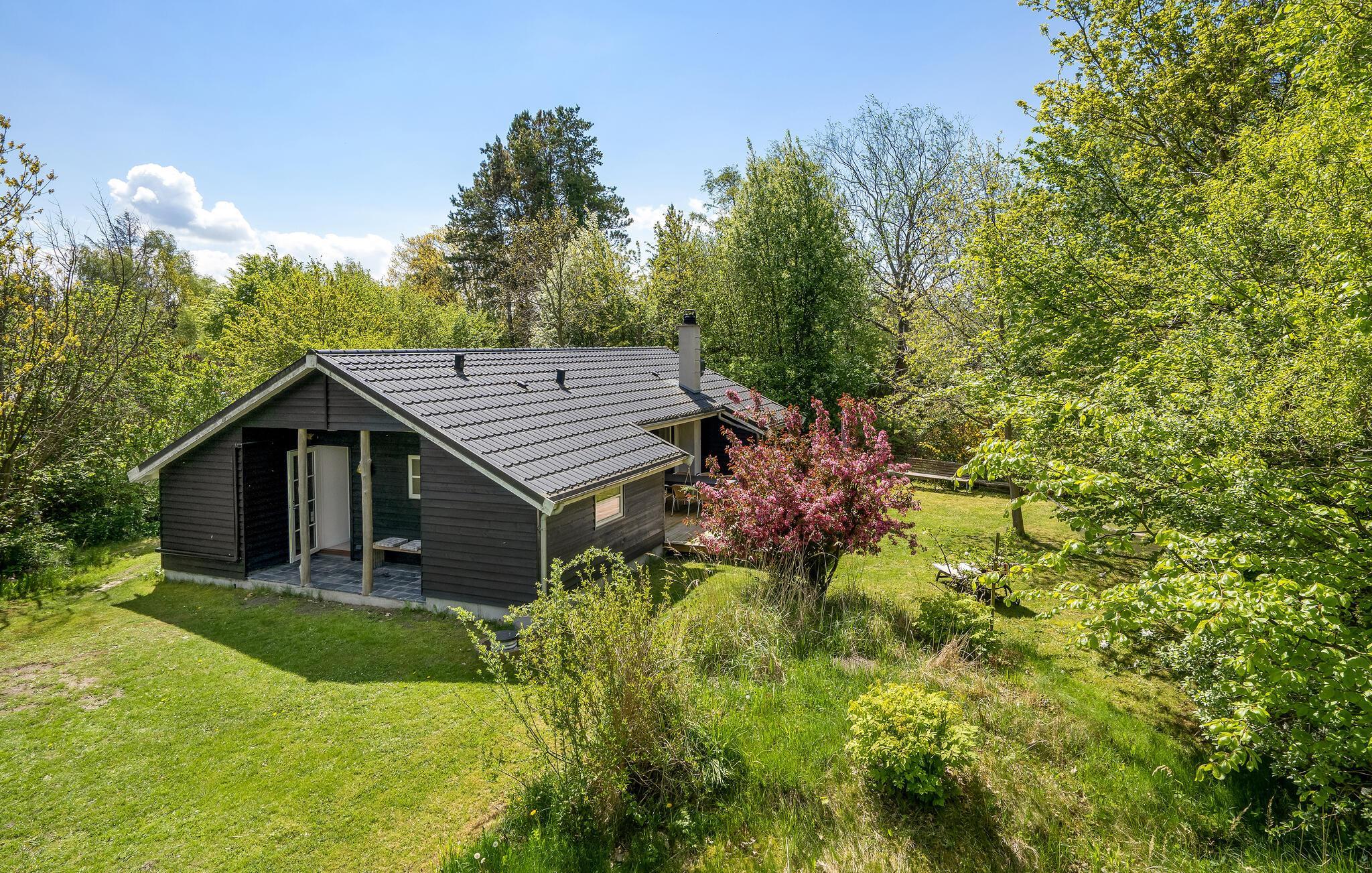 Dette smukke feriehus ligger på en stor, lukket, naturgrund, hvor der er plads til leg og komfort for hele familien.