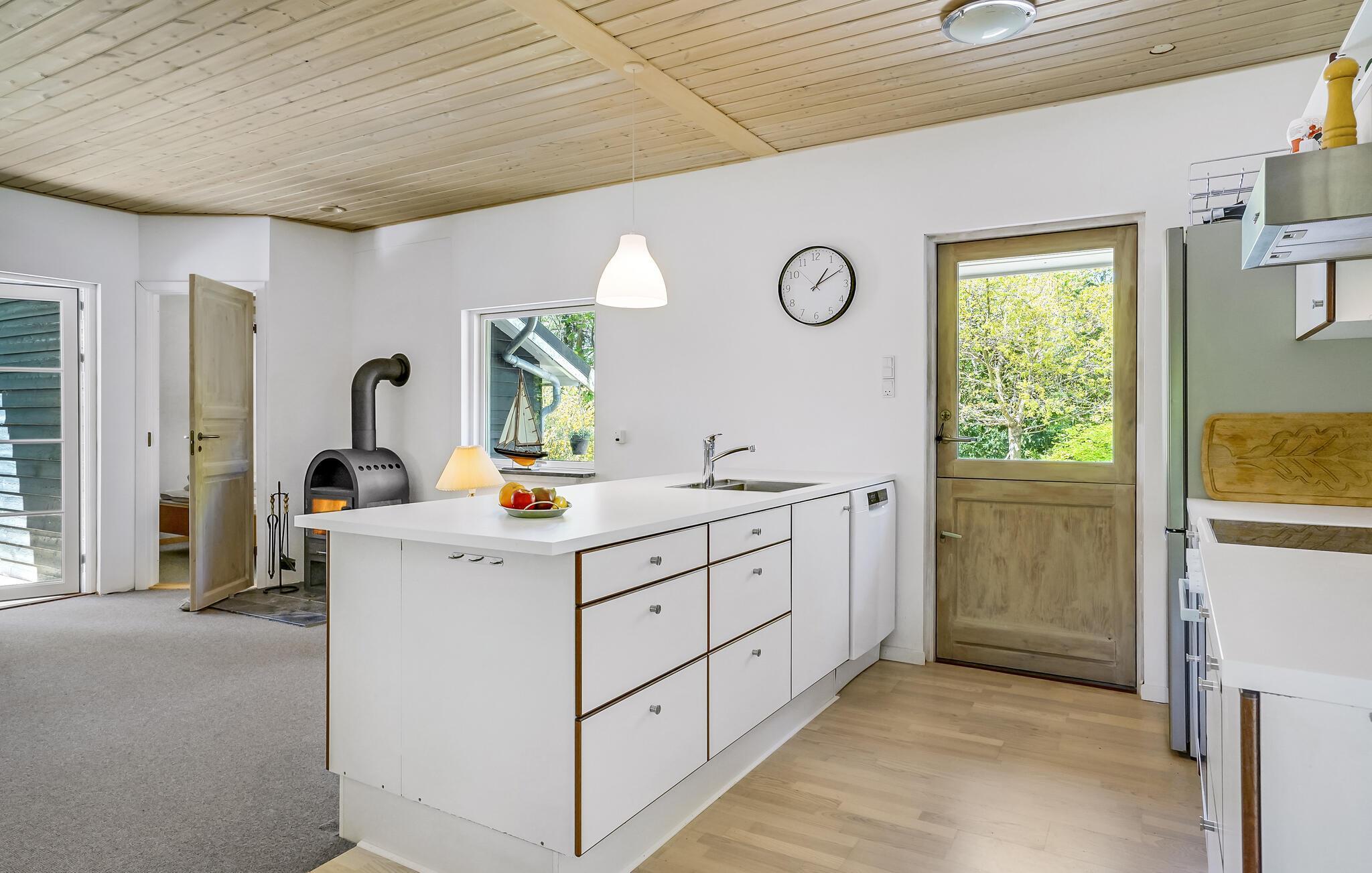 Inde i huset sikrer køkkenet med opholds- og spisepladsen gode rammer til samvær og hygge. Det lynhurtige fibernet og WiFi bidrager til aftenunderholdningen, og så kan I nyde aftenen med et godt glas vin på loungemøblerne udendørs og lade dagen forsvinde.