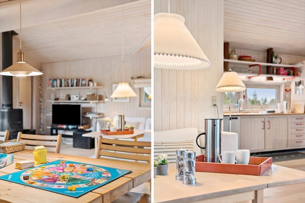 Når du træder indenfor i sommerhuset, mødes du af et lyst og indbydende rum med et fantastisk lysindfald. Stuen er perfekt til hyggelige stunder med familie eller venner, og de store vinduespartier giver dig mulighed for at nyde naturens skønhed selv fra indendørs. Huset byder på en rummelig opholdsstue, hvor I kan samles omkring brændeovnen på kølige aftener, eller måske tage en pause med et spil brætspil. Den åbne planløsning gør det nemt at være sammen, og det funktionelle køkken inviterer til fælles madlavning. Sommerhuset har en god opdeling med flere hyggelige soveværelser, så alle kan få et dejligt og afslappende ophold.