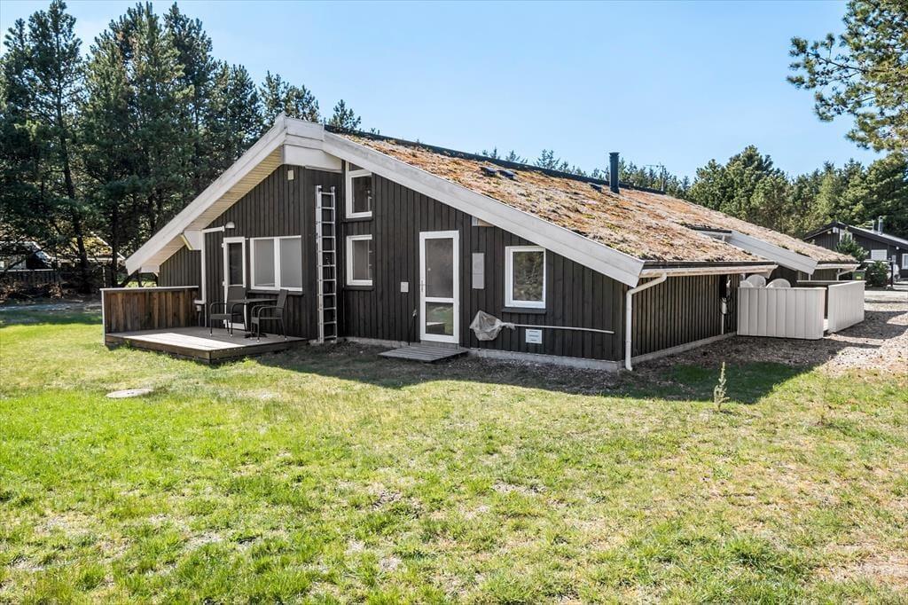 Sommerhuset ligger på en stor naturgrund med en dejlig plæne, hvor man nok kan få en fodboldkamp eller to i løbet af opholdet. Den sydvendte og delvist overdækkede terrasse har udgang fra stuen, og ved entreen er endnu en lille hyggelig terrasse, igen finder man en terrasse øst for huset. Til børnene er her gynge og sandkasse og til de voksne en petanquebane. Desuden er der gratis adgang til tennisbane og fodboldbane på grundejerforeningens fællesareal.