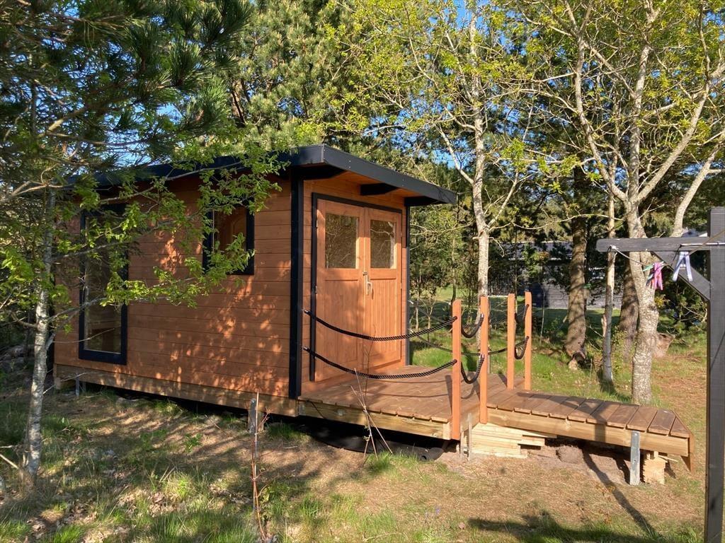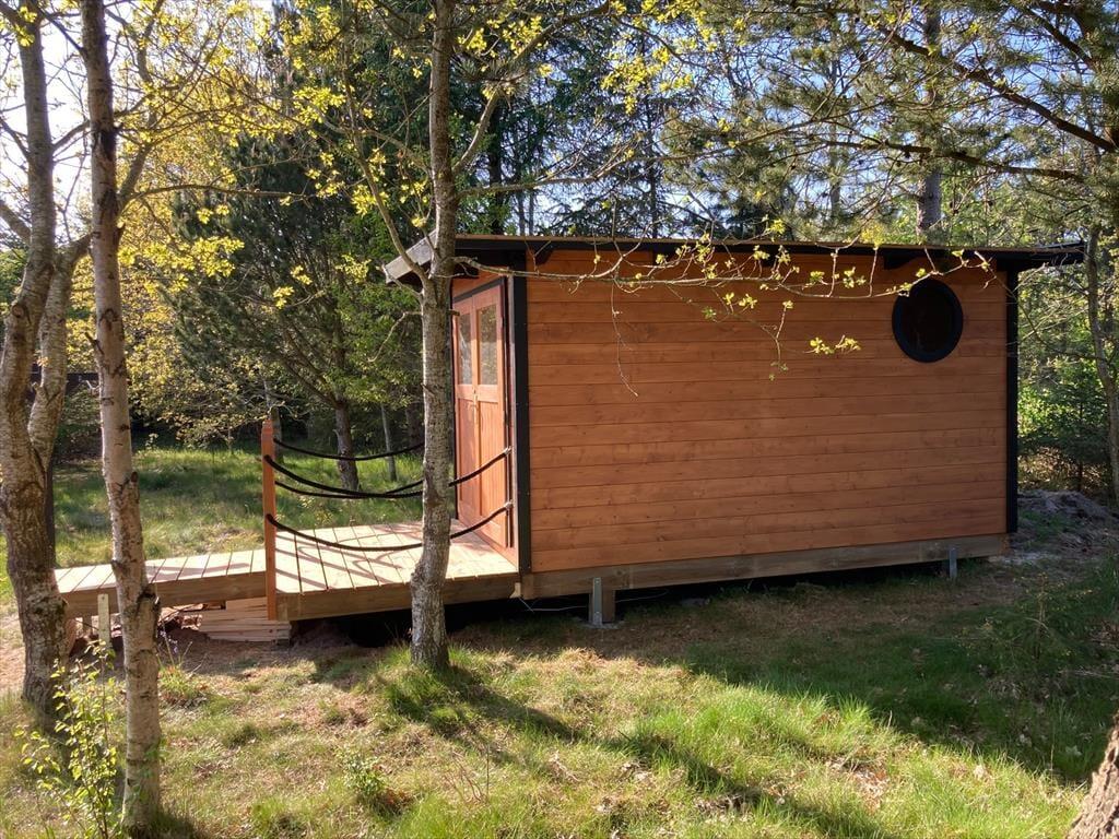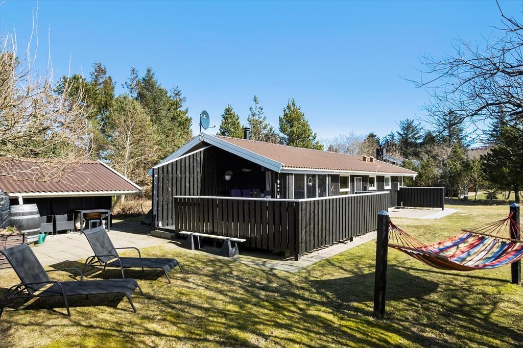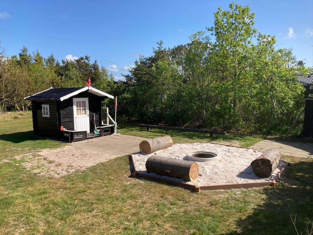 Sommerhuset ligger på en lukket grusvej i et grønt og familievenligt område. Kan I lide at spille minigolf, er det fedt at have kort gåafstand til Jambo Feriepark, der har en af Europas største minigolfbaner. Fårup Sommerlands sjove forlystelser kommer I også nemt frem til, og der er heller ikke langt til den skønne Saltum Strand og Vesterhavet. Trænger I til en aktiv ferie i naturen, kan I udforske vestkysten til fods eller på cykel – for eksempel kan en vandretur i det fredede område Lille Norge virkelig anbefales, og på vejen kan I bestige bronzealderhøjen Guldagerhøj for at beundre udsigten over det smukke lokalområde.