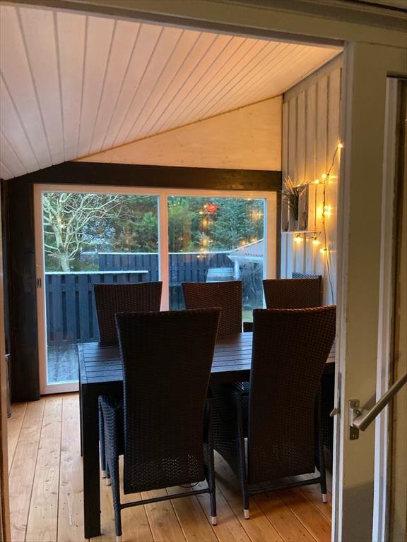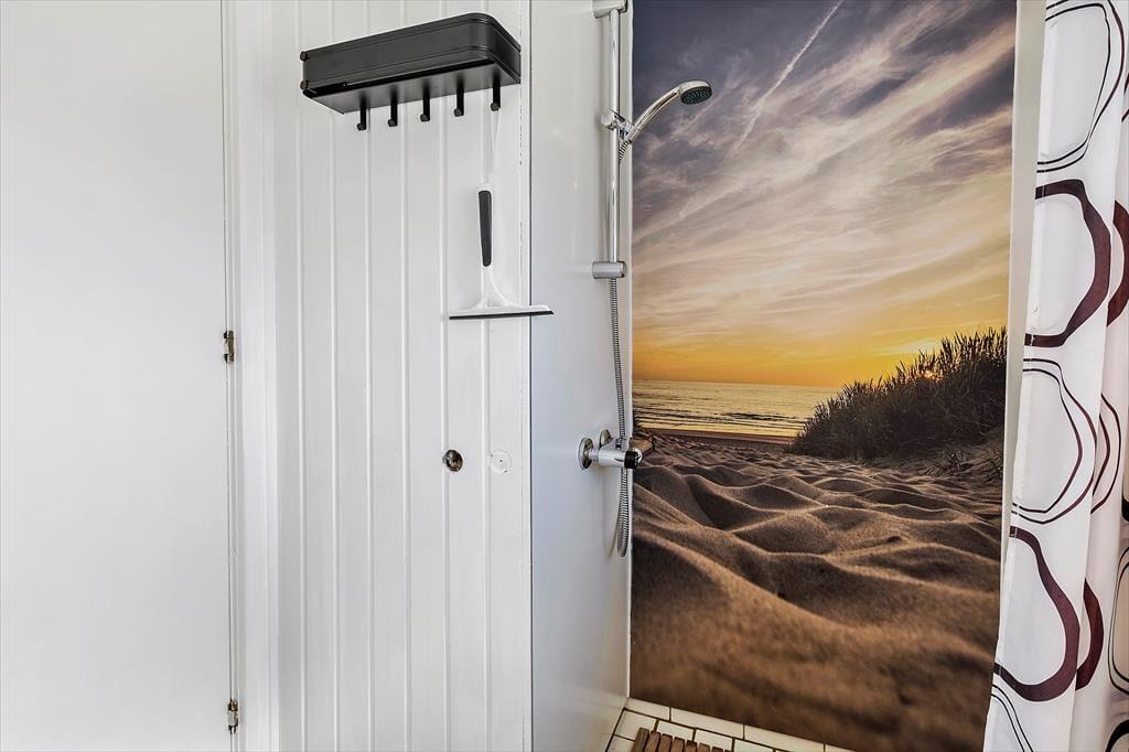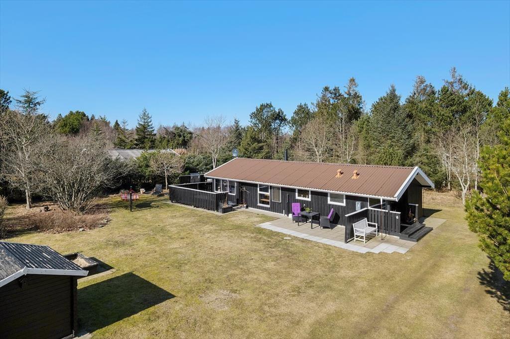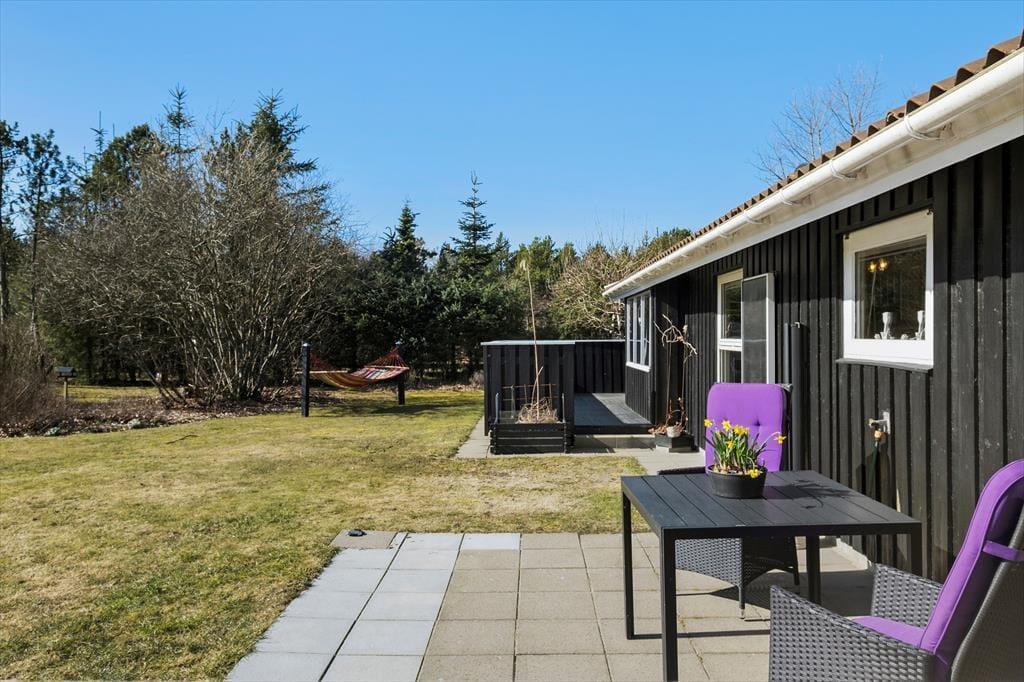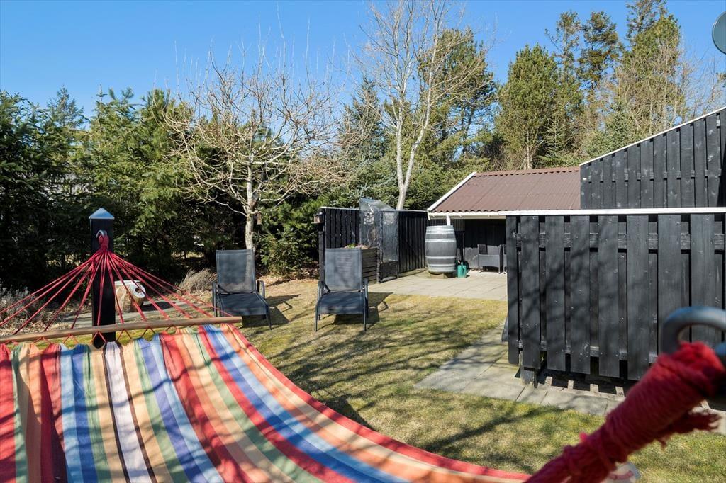 Sommerhuset ligger på en lukket grusvej i et grønt og familievenligt område. Kan I lide at spille minigolf, er det fedt at have kort gåafstand til Jambo Feriepark, der har en af Europas største minigolfbaner. Fårup Sommerlands sjove forlystelser kommer I også nemt frem til, og der er heller ikke langt til den skønne Saltum Strand og Vesterhavet. Trænger I til en aktiv ferie i naturen, kan I udforske vestkysten til fods eller på cykel – for eksempel kan en vandretur i det fredede område Lille Norge virkelig anbefales, og på vejen kan I bestige bronzealderhøjen Guldagerhøj for at beundre udsigten over det smukke lokalområde.