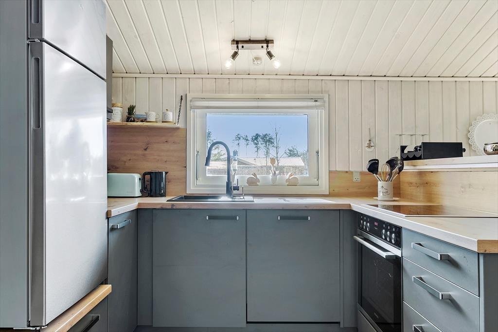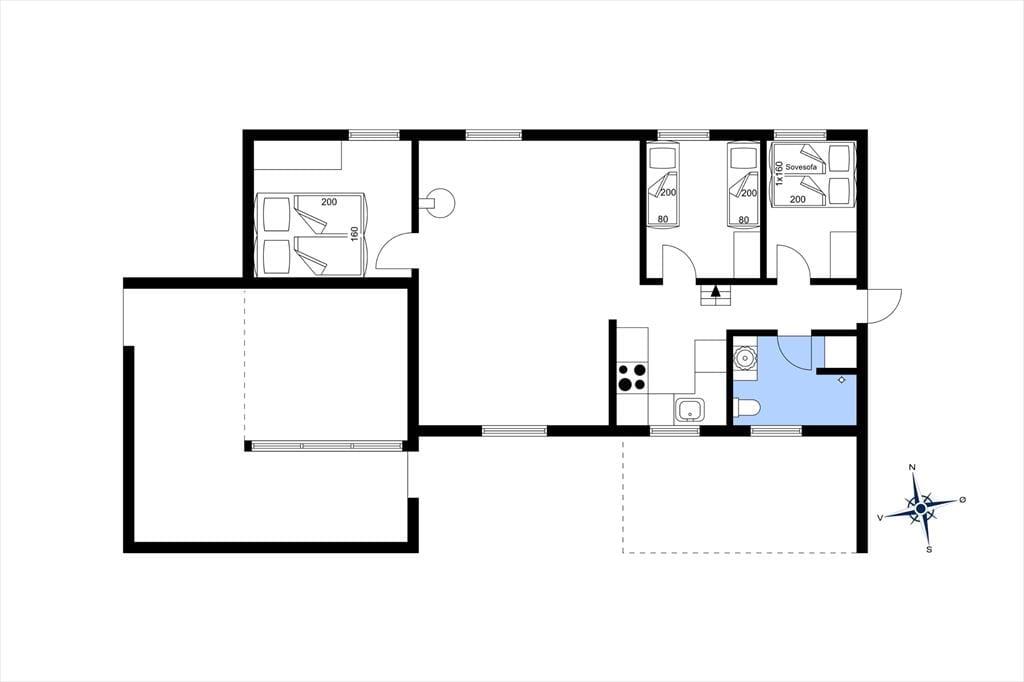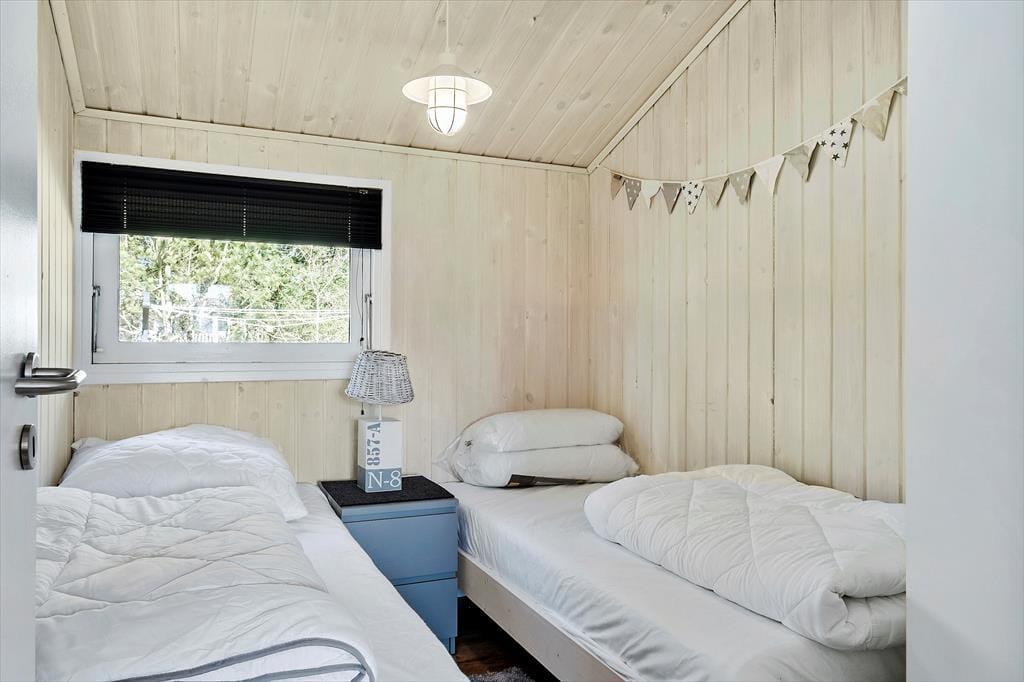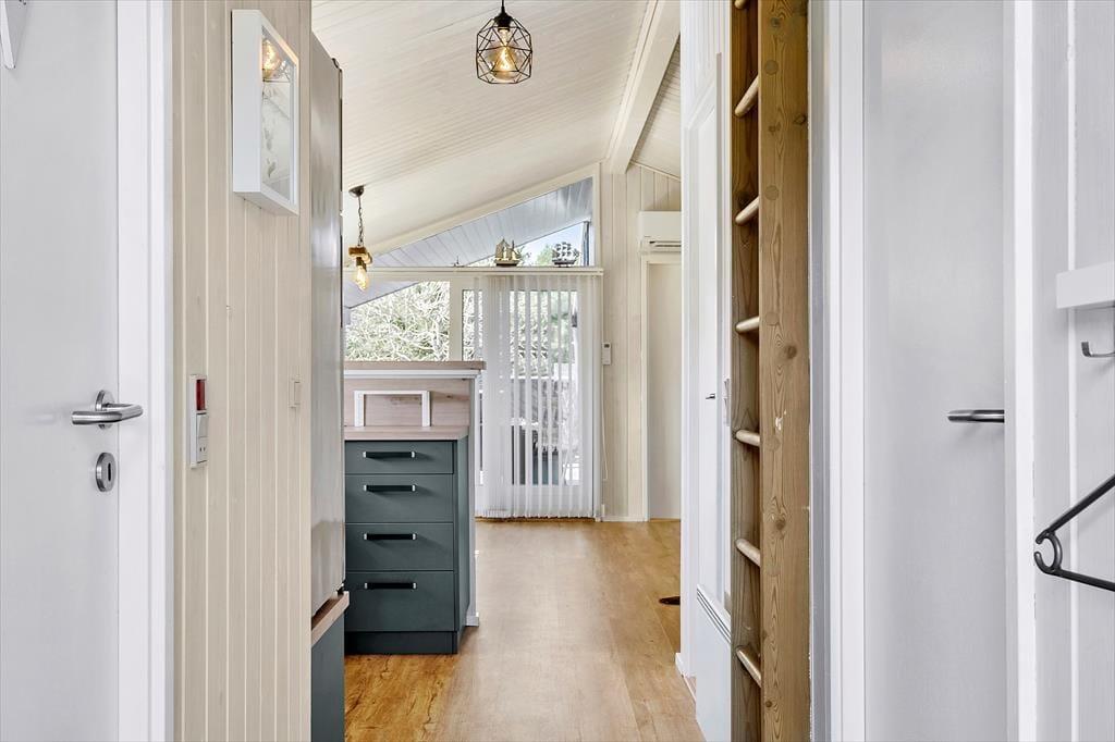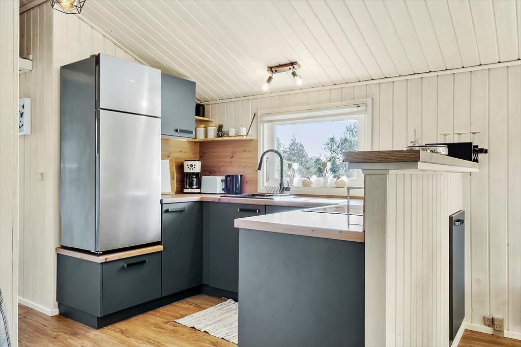 Da det 59 m2 store sommerhus blev renoveret, gik man grundigt til værks, for både køkken og badeværelse blev moderniseret, og der er kommet nye gulve og en frisk omgang maling. Derfor viser huset sig fra sin bedste side lige fra ankomsten, og takket være rummenes hyggelige atmosfære kan I straks føle jer hjemme. Det førnævnte køkken ligger i åben forbindelse med en dejlig stue, der har tv med Chromecast, brændeovn og direkte adgang til terrassen. Soveværelser er der tre af, og de er alle indrettet med garderobeskabe og komfortable senge.