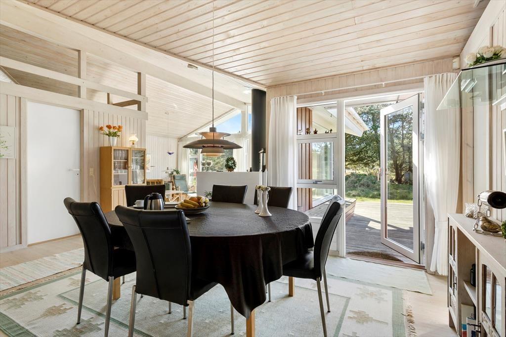 Dette meget velholdte feriehus er virkeligt smagfuldt og gedigent indrettet. Huset byder på al tænkelig komfort, bl.a. skal fremhæves det dejlige badeværelse med spabad og sauna. Huset er meget lyst og rummeligt og fra hele huset kan man nyde den sjældent smukke naturgrund som er en af de flotteste i hele Saltum. Rolig og ugeneret beliggenhed tæt på den populære Saltum Strand.