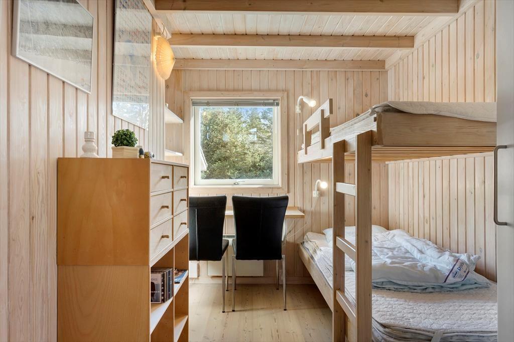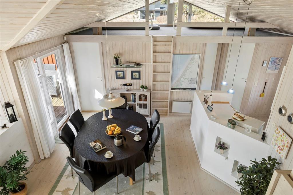Huset er fantastisk godt indrettet med stort køkken alrum med spiseplads. Via et trin er der adgang til den hyggelige stue. Her kan man holde en dejlig og afslappende ferie i smukke og yderst velfungerende omgivelser. Med ild i brændeovnen og udsigt til den omkringliggende grund. Køkkenet er indrettet med alt i hårde hvidevarer og der er naturligvis gratis internet i huset så tag endelig PC eller tablet med på ferien. Huset har hele 4 gode soverum. De to med dobbeltsenge, et med dobbeltseng med en køje over samt et soverum med køjer. Hele to badeværelser hvoraf især skal fremhæves det store badeværelse med både spa og sauna. Her er der mulighed for at varme sig efter en tur i Vesterhavets bølger eller efter en oplevelsesrig udflugtsdag i det nordjyske. Her er virkelig rammerne for den perfekte ferie for den store familie eller par der ønsker at holde en ferie sammen. Huset er en praktfuld kombination af funktionalitet, hyggelig stemning og god stil. Familiens 4 benene medlemmer er naturligvis også velkomne.
