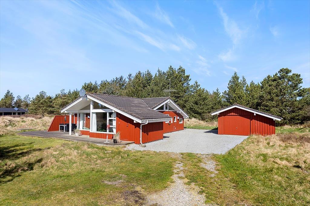 Huset er beliggende på en 2500 m2 stor naturgrund. Med en af de flotteste naturgrunde i området. Der løber en stor terrasse på tre sider af sommerhuset, så her er altid mulighed for at finde en plads i solen og en krog i læ for vinden. Her kan man nyde grillmad og et godt glas vin mens man nyder udsigten til naturgrunden og lytter til vinden i trætoppene. Grunden er omgivet af høje, træer og buske. Til børnene er her sandkasse og gynger. Huset ligger ugenert så er er ideelt til at solbade og slappe af i fred og ro. Havemøbler, liggestole og grill er naturligvis til rådighed.