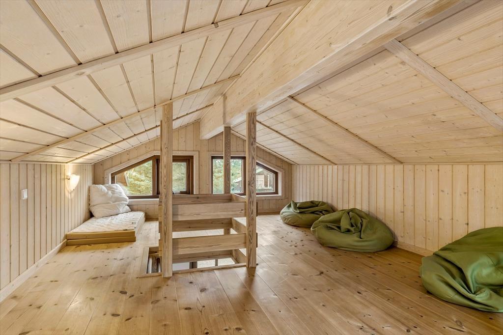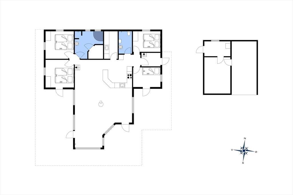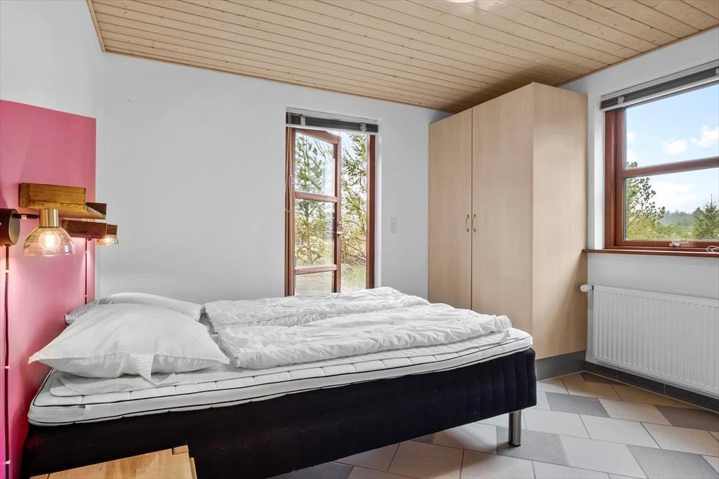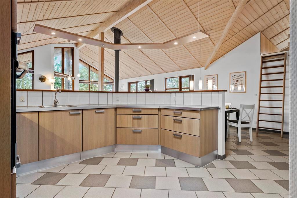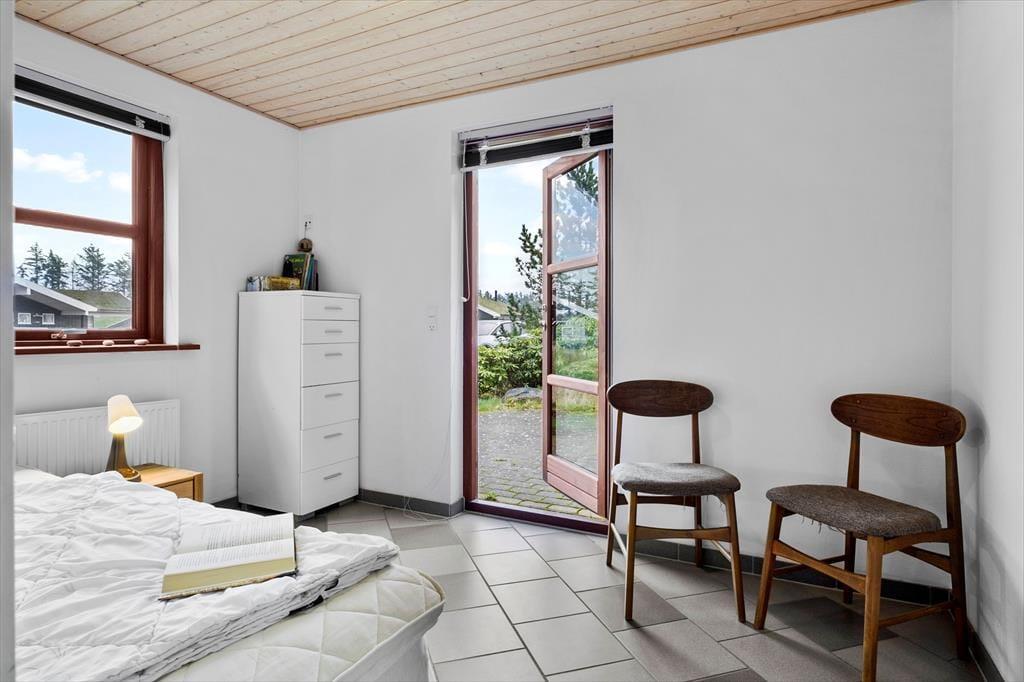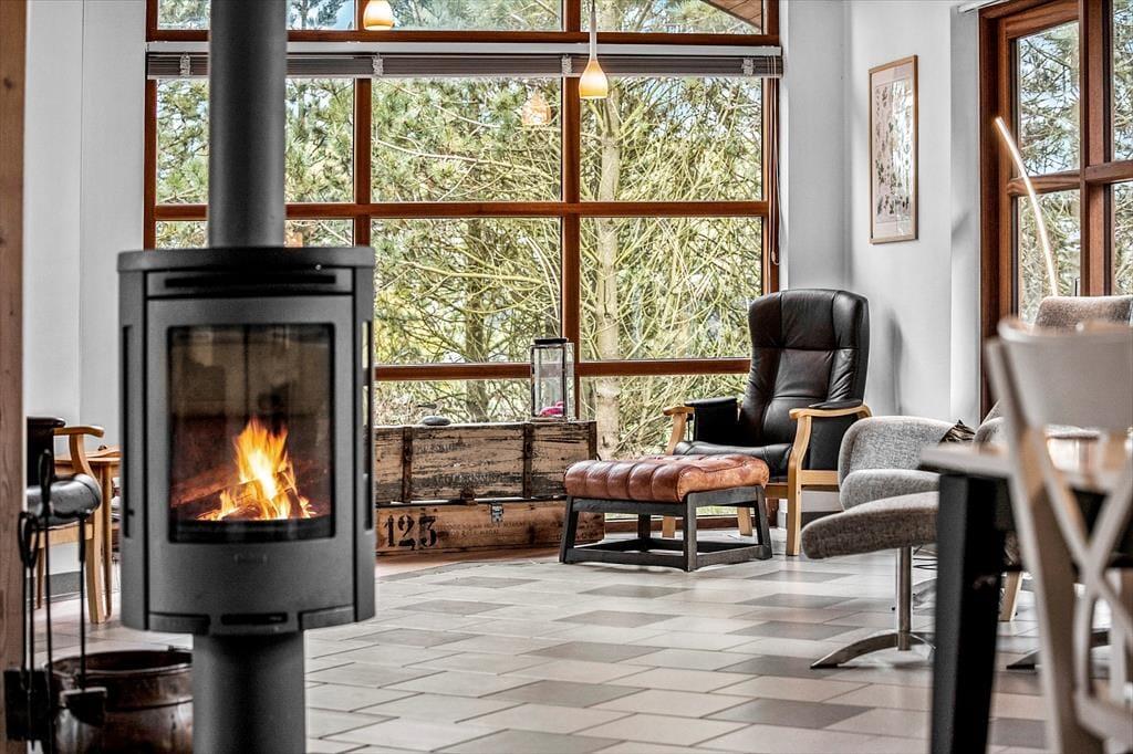 Det store opholdsrum danner rammen om det indendørs ferieliv – og her får du en dejlig fornemmelse af luft og rummelighed fra det øjeblik, du træder ind. Lyset strømmer ind ad de mange vinduer og rammer det åbne køkken, spiseområdet og sofahjørnet, hvor du kan flade ud med en god bog eller samles med familien til aftenhygge. Den gennemgående varme fra jordvarmeanlægget gør det ekstra komfortabelt at være her – uanset årstid – og de gode værelser giver dig mulighed for at finde netop den ro, du har brug for. Med flere afdelinger i huset er det også nemt at dele sig op i mindre grupper, hvis nogen vil tage et spil kort, mens andre nyder en stille stund.