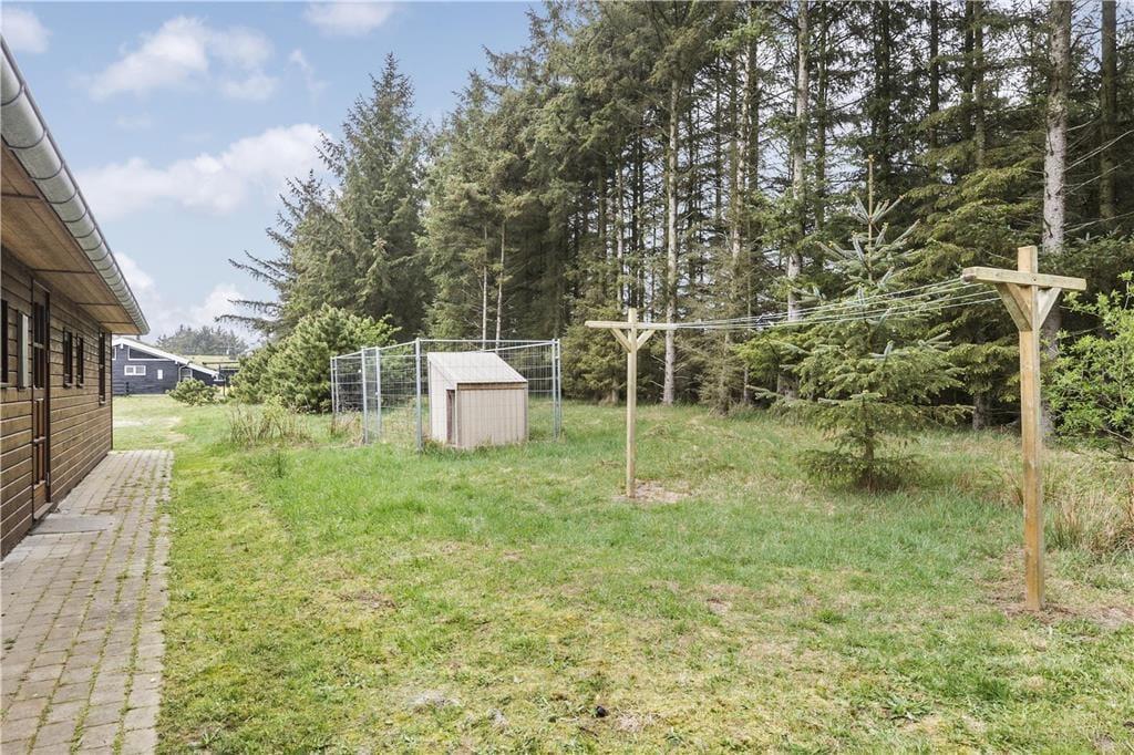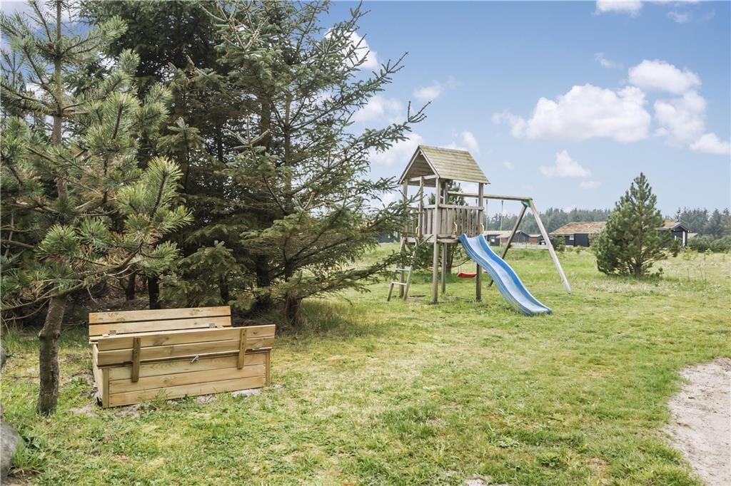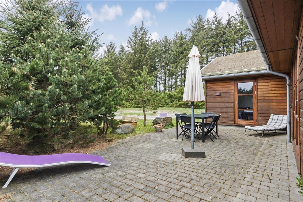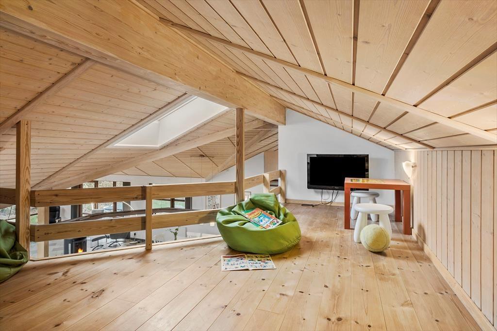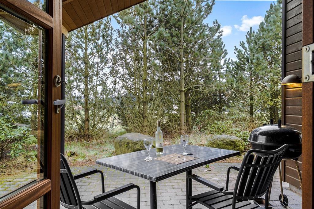 Omkring huset venter en stor naturgrund med høje træer, fuglekvidder og masser af plads at brede sig på. Terrassen vender perfekt mod solen, så du kan nyde både morgenkaffen og aftensmaden under åben himmel – og der er god læ i krogene, hvis vinden får fat i trætoppene. Her er roen nærmest til at tage og føle på, og børnene kan lege frit i det grønne uden at blive forstyrret af trafik eller nysgerrige blikke. Det er kort sagt en perfekt oase til en ferie, hvor tempoet gerne må være lidt lavere, og hvor du kan trække dig helt tilbage og bare nyde stilheden.